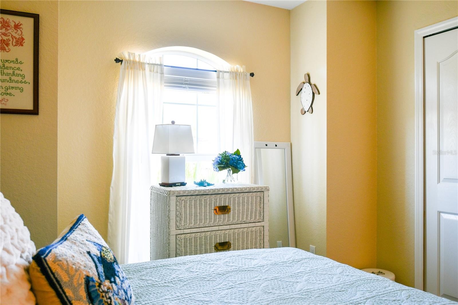Built in 2017 and meticulously maintained, this Windemere residence offers a thoughtfully designed layout with three bedrooms, two baths, and a two-car garage. Large ceramic tile flooring extends throughout the main living areas, while vaulted ceilings and an open floor plan create a bright, spacious atmosphere. The kitchen features granite countertops, stainless steel appliances, and seamless connection to the living and dining areas, ideal for both everyday living and entertaining. A split-bedroom floor plan provides privacy, and the primary suite includes a Roman walk-in shower, dual vanities, and a generous walk-in closet. Improvements include a water softener system and new hot water heater. The home is equipped with storm shutters and a newly installed security system, providing added protection and peace of mind. Outdoors, the fully fenced backyard offers space for pets or play, complemented by a screened 18' x 10' lanai and adjacent patio perfect for outdoor dining and relaxed gatherings. New landscaping and an updated irrigation system enhance curb appeal. Conveniently located near highly regarded schools, this move-in-ready home presents an excellent opportunity for buyers seeking comfort, quality, and modern construction.