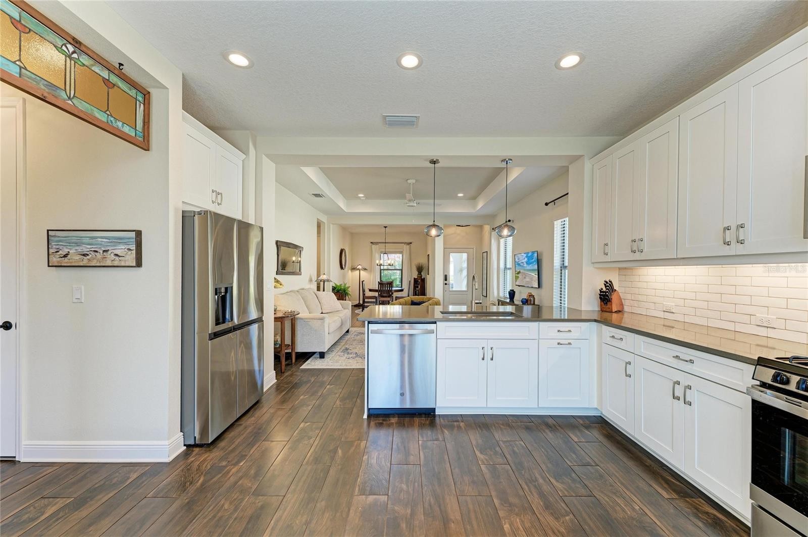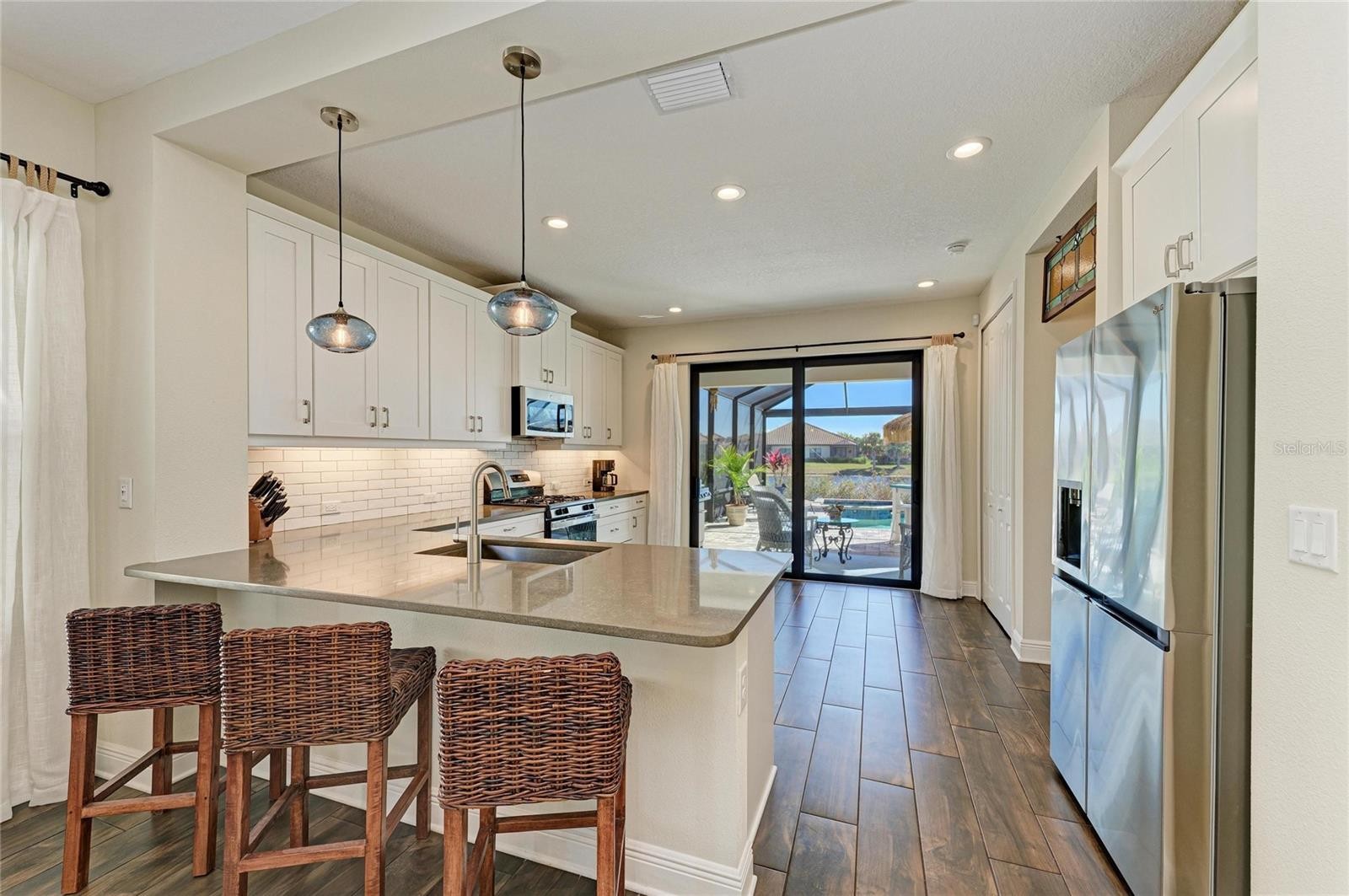 Homes with this level of quality and lifestyle features are truly rare at this price point. This beautifully finished 3-bedroom, 2-bath residence (offered partially furnished) lives like a private retreat, highlighted by a spacious screened lanai and a saltwater pool and spa overlooking breathtaking water views—capturing both sunrise and sunset for an unforgettable backdrop. Inside, the kitchen is a cook’s delight, showcasing soft close cabinetry, gas cooking, quartz countertops, and premium craftsmanship throughout. Wood inspired tile flooring flows through the main living areas, complemented by 8-foot doorways that enhance the home’s open, elegant feel. Practical upgrades—including hurricane rated impact windows and doors, upgraded foam insulation, full surround gutters, whole house surge protection, and a central vacuum system—ensure comfort, efficiency, and peace of mind. Set within the Northern Italian–inspired community of Vicenza, residents enjoy an amenity rich, resort-style lifestyle. The neighborhood features a stunning community pool and spa with cabanas, a vibrant clubhouse with social activities, pickleball and bocce courts, scenic walking trails, and a dedicated paw park for four-legged family members. Enjoy the best of Florida resort style living in this beautifully appointed home.