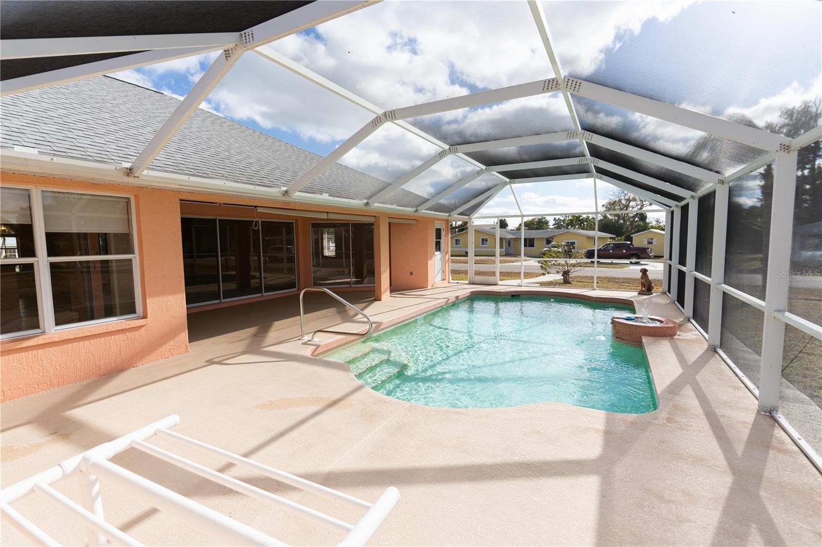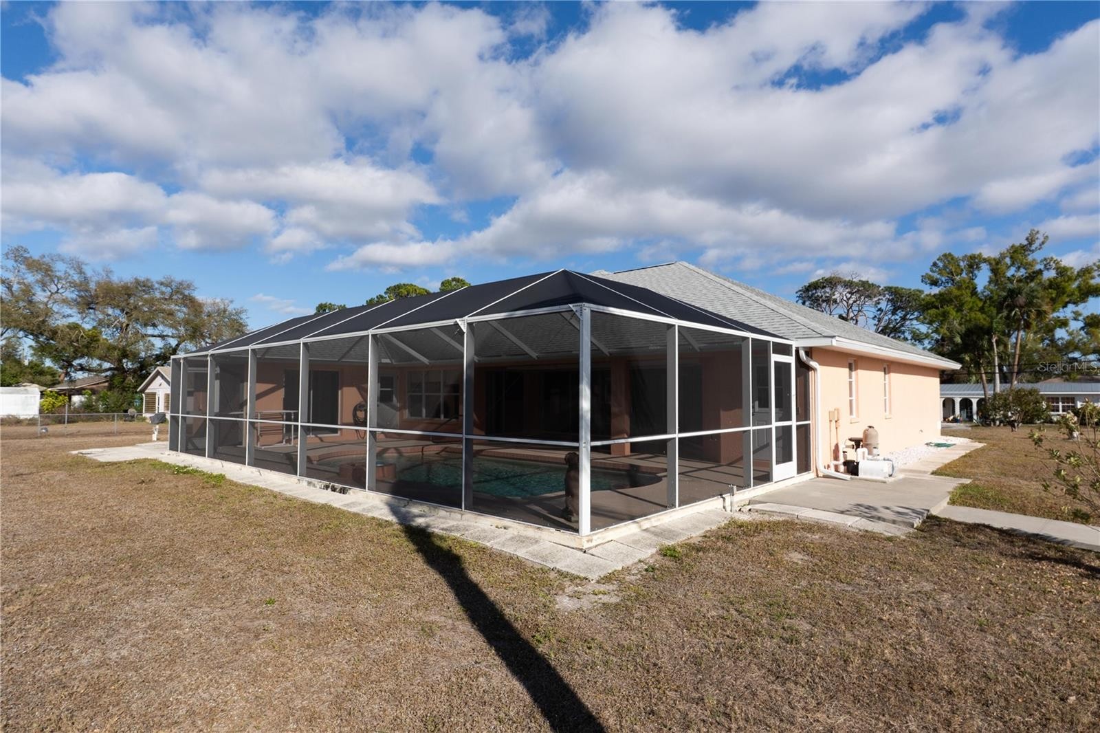 This South Venice 3 bedroom, 2 bathroom pool home sits on a large 0.5+ acre corner lot, creating a level of privacy, openness, and natural light that’s hard to find in the area. The home also features an inground pool, no HOA restrictions, and no flood zone designation. Set back on the spacious corner lot, the home provides a sense of separation and breathing room that carries through both the outdoor and interior living spaces. The inground pool is easily accessed from the main living areas and sits within a full screen enclosure that covers the pool, deck, and covered lanai, supporting comfortable outdoor living throughout the year. With a new roof (2023), a brand new energy-efficient Trane air conditioning system (April 2025), an updated electrical panel (April 2025), a new pool screen enclosure (2023), and no flood zone designation, the property addresses key risk and insurance considerations for Florida buyers. Inside, more than 2,000 square feet of living space is arranged in a bright, open layout, with a full wall of sliding glass doors that bring in natural light and open directly to the pool area. The split bedroom floor plan places the primary suite on one side of the home, with two additional bedrooms and a shared full bath on the opposite side, allowing for separation between sleeping spaces and greater flexibility for guests or daily routines. Full pool and lanai access is also available from this side of the home, making the outdoor living areas easy to enjoy from multiple parts of the layout. The primary suite includes direct pool access, two walk-in closets, and an en suite bathroom with dual vanities, a jetted soaking tub, and a separate walk-in shower. The kitchen overlooks the pool and patio and includes stainless steel appliances, a raised breakfast bar, a casual dining nook, and a separate dining room that supports both everyday meals and more formal gatherings. A generously sized laundry room with a built-in sink adds everyday practicality and supports the home’s indoor-outdoor lifestyle. Outside, the oversized corner lot offers space for gardens, pets, boat or RV storage, outdoor projects, or simply enjoying the privacy that comes with land, all without HOA restrictions. This home brings together space, privacy, and outdoor living on a scale that allows day-to-day life to feel open, settled, and unhurried.