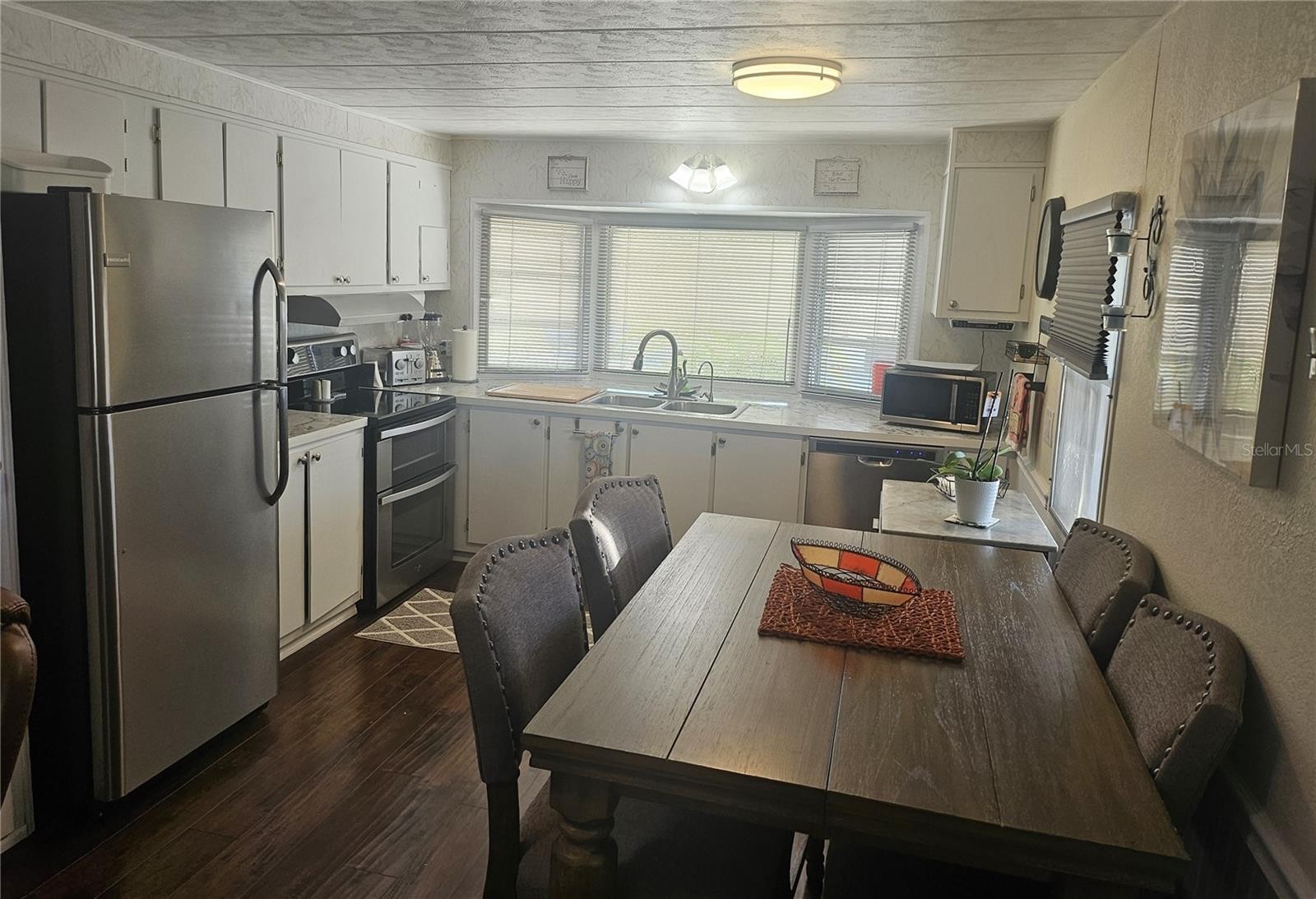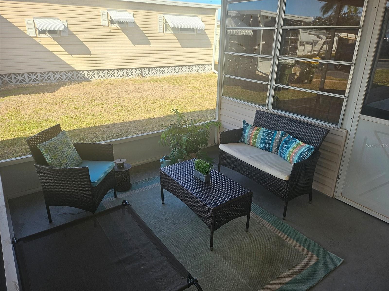 Discover the ease and comfort of Florida living in this thoughtfully maintained TURNKEY furnished home located in the ONLY gated 55+ Resident Owned Park in the City limits of Sarasota!! This 3 bedroom home has beautiful curb appeal with the pavers and palm trees landscaping. This home has been tastefully decorated and offers a peaceful, move-in-ready retreat— ideal for seasonal or full time residents seeking sunshine, simplicity, and comfort. Guest will appreciate the split plan feature with the 3rd bedroom conversion. Enter through the quaint French doors to a cottage style queen set, separate AC system, flat screen TV, and private wardrobe. There is plenty of space for up to 9 overnight guest with a king bed, queen bed, double bed and both the sofa and loveseat convert into a queen-size sleeper sofa with a new mattress and a single sleeper loveseat, ideal for visiting guests. The dining table stores extra leaves and there is seating for 6. Additionally, the coffee table rises to accommodate additional table space as well. The kitchen has great natural lighting has 2020 stainless steel appliances. The dishwasher, rolling island, CD radio player and water filter system were installed after 2021. The pantry provides plenty of room for storage needs. Begin your mornings enjoying your coffee or tea on the lanai, read, or visit with friends while embracing the relaxed Florida lifestyle. Whether you are arriving for the season or enjoying full-time living, immediately begin soaking in Florida’s warm weather, friendly community, and relaxed pace of life. Upgrades include: Vinyl Siding, extra large storage room that can be used as a Florida room as well, separate shed room, Washer/dryer and utility sink in the storage area, screen lanai added 2024, HVAC system installed 2020 professionally serviced yearly and enhanced by a whole-house duct enlargement for improved airflow throughout the home. Vapor Barrier replaced 2023, Interior upgrades include the stainless steel appliances, some drywall, updated entry door, all flooring updated, Water Heater 2025, all flooring has been updated. Hurricane Shutters and rain gutters. The utility room adds exceptional value, featuring an additional refrigerator along with a washer and dryer, offering convenience and extra storage—perfect for seasonal living or hosting guests. About Oakwood....This 55+ gated 90 acre community boasts a low maintenance fee of $210/month. Its vast amenities start with the spacious Clubhouse outfitted with a full commercial cook kitchen, event stage, audio/visual, dance floor, state of the art fitness room, activities hall, library with books/movies/puzzles and a pool table. Outside recreation includes an extra large heated pool with a handicap ramp, a spacious kidney shaped hot tub, ample umbrella tables and lounge chairs and updated shower rooms. Oak trees shade the beautiful park area, picnic tables and a community grill. Additional amenities to enjoy are the community putt putt course, bocce ball, ping pong and corn hole. Oakwood Manor is a vibrant community with numerous social events and activities. It is conveniently located adjacent to Legacy Trail and 12 newer pickle ball courts. Just a short drive to our crystal sand beaches, downtown area, the marina, fishing pier, local golf courses, shopping, variety of restaurants, the museum, SRQ airport, SMH and Doctors hospitals. Please note that Oakwood is a no pet, no motorcycle Park.