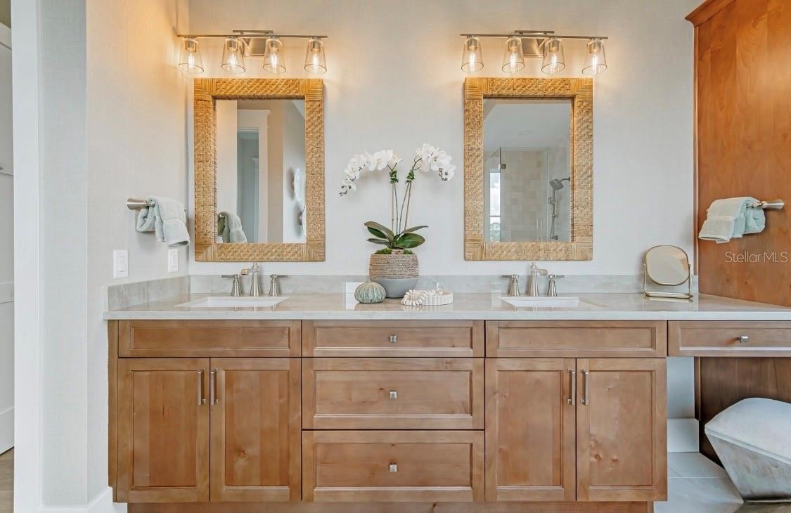 RARE LUXURY WATERFRONT OPPORTUNITY IN HARBOUR ISLE! Enjoy unobstructed, panoramic views of Anna Maria Island and Tampa Bay from this recently completed (2024) luxury waterfront home. Perfectly positioned within the master-planned community of Harbour Isle, this three-level coastal retreat blends modern elegance with breathtaking scenery—offering a front-row seat to spectacular sunsets and frequent dolphin sightings. An elevated pool and outdoor kitchen overlook the tranquil waters of Anna Maria Sound, delivering an exceptional indoor-outdoor living experience. Every detail reflects superior craftsmanship, from architectural precision and custom millwork to designer finishes, premium appliances, and bespoke cabinetry. A spacious multi-car garage offers room for three vehicles plus a golf cart, enhanced by a converted storage area to a third-car garage, overhead storage, air conditioning in both the garage and gym area, and a fenced and turfed space behind the garage with added access door (in process). The extended paver driveway accommodates up to three vehicles with ease. The home is further upgraded with a whole-home generator, remote-controlled window shades, mounted TVs with in-wall electrical, and thoughtful modern conveniences throughout. The main living area is easily accessed via a private elevator or a sunlit staircase with scenic views. The expansive great room and chef’s kitchen are designed to maximize sweeping water views, while the primary suite offers a serene retreat with a spa-inspired bath, soaking tub, and generous walk-in closet. Open-concept living and dining areas flow seamlessly to a large outdoor entertaining space overlooking the water. The upper level includes a luxurious junior suite and two additional guest bedrooms, each with ensuite baths and abundant closet space. A versatile bonus area provides flexibility for a media room, office, or wellness space. Located within the highly sought-after Harbour Isle community, residents enjoy exclusive access to a private clubhouse featuring a resort-style pool, state-of-the-art fitness center, Sky Bar & Restaurant, jacuzzi, private beach, and outdoor pavilion. Additional amenities include miles of walking and biking trails, kayak launches, multiple pools, and scenic gathering spaces. Just minutes from Anna Maria Island’s renowned beaches and a short ride to Robinson Preserve’s nature trails, this home offers both tranquility and convenience. Nearby airports in Sarasota and Tampa/St. Petersburg provide easy access for travel. This is a rare opportunity to own a truly exceptional coastal residence in one of Florida’s most desirable waterfront settings.