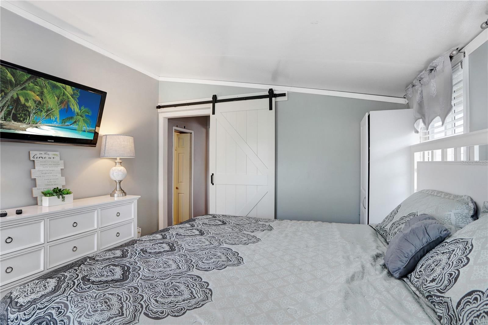LOW HOA with NO LOT RENT! Fully Furnished Home with Golf Cart in Vibrant 55+ Community! This unique and charming 2-bedroom, 2-bath home with a versatile sleeping loft is being sold fully furnished—including a golf cart, all appliances, and even a grill—making it truly move-in ready! Relax on the screened front porch, the perfect spot for morning coffee or chatting with friends. Inside, enjoy the open feel created by vaulted ceilings, pendant lighting over the breakfast bar, and a spacious dining area. The living room features oversized, comfy chairs and a mounted TV. A sliding barn door leads to the primary suite, complete with two armoires, a second TV, and its own exterior door. Both bathrooms offer walk-in showers (no tubs), and the layout features multiple levels for added privacy and interest. The second bedroom, a few steps down, includes extra storage and a stacked washer/dryer unit. Upstairs, two loft areas with built-in storage provide additional sleeping or hobby space. Additional features include a carport, central A/C, concrete pads on both sides of the unit, and easy access to the crawl space for bonus storage. Located in the desirable Sugar Creek Country Club, where low quarterly HOA fees of just $525 cover internet, cable, water, sewer, trash, and lawn care. Don't miss out on this fully furnished gem in an active and welcoming 55+ community!
