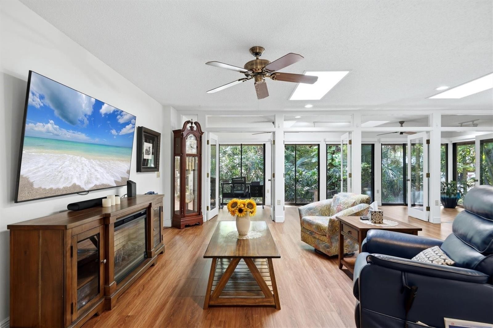 Hey… have you heard about this little hidden gem called Crooked Creek? Tucked away alongside the natural beauty of Red Bug Slough, this community is one of Sarasota’s best-kept secrets—and this rarely available end-unit villa might just be the one you’ve been waiting for. Offering 3 bedrooms, 3 bathrooms, and a 2-car garage, this spacious residence just under 1,700 sq ft lives large with a flexible layout that’s hard to find. Two of the bedrooms are generous ensuites, perfect for guests or multi-generational living, while the third bedroom offers versatility as a home office or den with its own patio. Inside, you’ll love the no-carpet lifestyle with stylish vinyl plank and tile flooring throughout, complemented by two skylights that fill the home with natural light. Enjoy the large enclosed sunroom as well as an open outdoor private patio, ideal for morning coffee or unwinding in the peaceful, lush surroundings of mature Florida landscaping. This amazing community was Designed by renowned Sarasota School of Architecture architect Tim Seibert, and this villa blends timeless design with a serene, nature-inspired setting. The lifestyle? It’s just as impressive. Residents enjoy a heated pool, pergolas, large Gazebo, wooden footbridge, scenic walking paths, and the tranquility of nearby Red Bug Slough Preserve—all while being minutes from shopping, dining, and Siesta Key beaches. The HOA offers exceptional value, covering roof maintenance, exterior building care, ground maintenance, private roads, cable, and WIFI, Pest control, and trash, making for truly low-maintenance living. Plus, no age restrictions—this is NOT a 55+ community. Opportunities like this don’t come around often… especially in Crooked Creek. Come take a look—you may just fall in love.