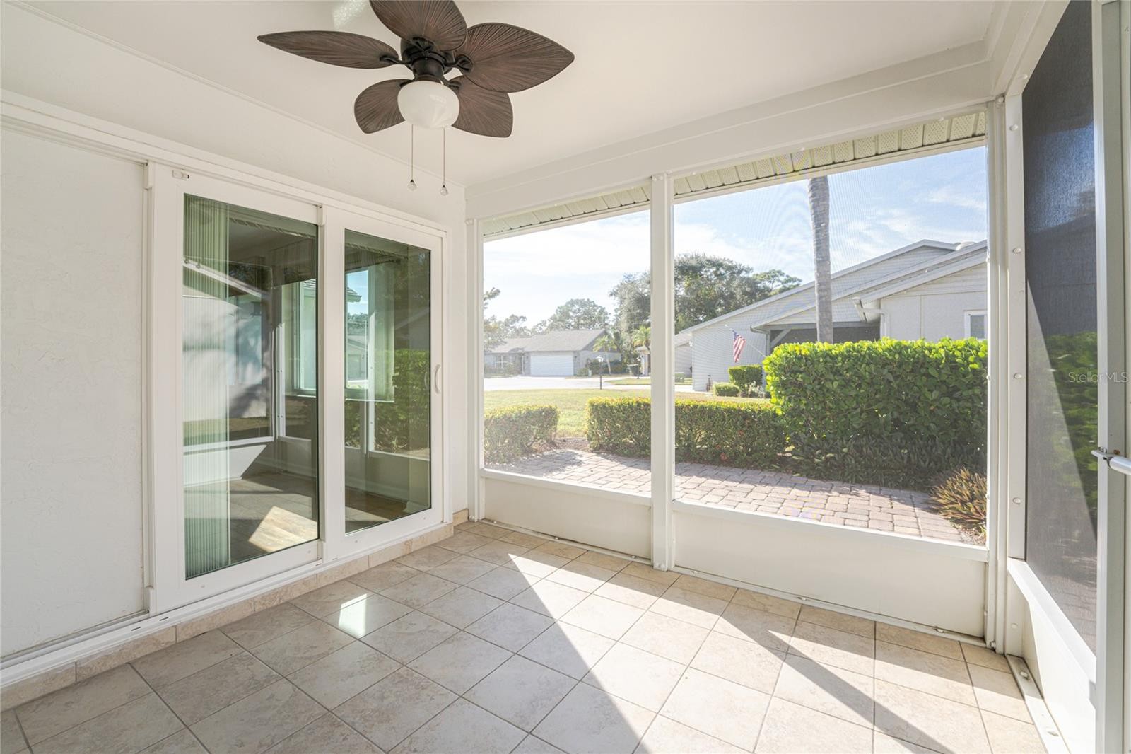 Make an appointment today to see this COMPLETELY UPDATED home in the ever popular "over 55" community of Park Forest! This beautiful villa is situated on a corner lot, surrounded by lush tropical landscaping. Impact-resistant windows and doors will keep you feeling safe in any kind of weather! The screened entry welcomes you into the wonderfully open floor plan, with a spacious main living area and adjacent area that can either be incorporated into the main area or used as a separate TV room. The laminate flooring makes for easy maintenance and the vaulted ceiling with ceiling fan create a light and bright atmosphere. The kitchen will be a chef's dream, and is large enough for two people to work on a meal together. With wood (i think maple) cabinetry, soft close doors/drawers w/ lazy susan and granite countertops and granite backsplash, you will actually like to cook! Updated Stainless appliances include: French door refrigerator, smooth top stove, dishwasher (all Samsung) and Bosch dishwasher. Recessed lighting and tiled flooring add the finishing touches! The adjacent dining area has plenty of room for a nicely sized dining table, and has sliding glass doors opening onto the lanai, making this a perfect spot for entertaining dinner guests! Just off the kitchen in the front of the home, you'll find the den, complete with custom built-in cabinetry, which can easily be converted into a more formal dining area, or a great home office, with all of it's built in storage space with its ample drawers and glass front cabinets. The sizeable Primary bedroom has newer carpeted flooring (great for those cool mornings!), ceiling fan, and a sizable walk-in closet with custom built-ins. The Primary bath features an updated dual vanity with granite countertops, additional built in storage closet, and a beautifully tiled walk-in shower with a frameless glass shower door. The Guest Bedroom has carpeted flooring, a ceiling fan and built ins in the wall closet. Guest bath has a tub/shower combo, and an updated wood vanity and granite countertop. The screened lanai is the perfect place to unwind and relax with a good book or enjoy your morning coffee. the two car garage houses the washer/dryer, an extra refrigerator, two electric panels with a direct hookup for a generator, a 2022 water heater, an epoxy floor, and more GREAT STORAGE CABINETS THAN YOU CAN IMAGINE! You'll also be thrilled to know that this home is packed with upgrades, including a newer roof, repainted exterior, impact garage door with remote-controlled roll-down screen, whole house filtration system, & gutters. Join in on the many social activities offered by the active community, including the community pool, shuffleboard courts, tennis courts, bocce ball, and much more. Your fees cover exterior paint and roof, lawn care, and the irrigation system, making this home truly move-in ready. Don't wait - schedule a showing today and move in before the snow flies up North!