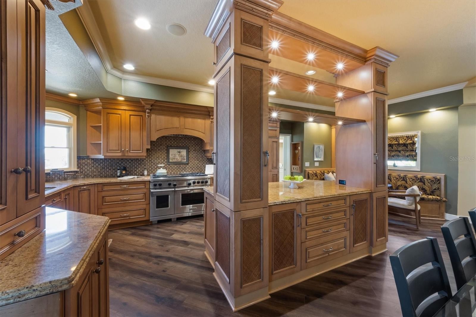 ONE OF A KIND Waterfront Estate on the Manatee River on over an ACRE of land! This PENINSULA property is the pinnacle of Florida waterfront living! This property is zoned for MULTI-FAMILY and is already setup for MULTI-GENERTIONAL living!!! This home sits on over an acre and boasts it’s own peninsula with 644+ feet of river frontage with direct access to the Gulf of Mexico. This custom-built home is truly a one-of-a-kind property, offering unparalleled luxury and space for both relaxation and entertainment! In the main house there is just under 5,000 square feet of living space, thoughtfully designed for modern comfort and luxury plus detached mother-in-law suite with a separate entrance! Chef’s kitchen featuring custom cabinetry, granite countertops, top-of-the-line Wolf and Sub-Zero appliances, a double oven, 6-burner gas stove with built in griddle, warming drawers, and more – perfect for cooking and entertaining. An open concept living room seamlessly connects to a beautiful Florida room, offering abundant natural light and stunning panoramic views of the river. The spacious family room is adorned with custom built wall unit for a TV, art and storage. Enjoy family nights with the gas fireplace and beautiful marble mantel. An unparalleled game room with a full size custom pool table with a step up into the bar complete with granite countertops, an ice maker, refrigerated drawers, dual-zone wine coolers, and all the essentials for entertaining for you and your guests! The secluded Primary suite features panoramic river views, a custom walk-in closet, and a spa-like en suite with dual vanities and a walk-in shower with a rainhead—your private retreat. Outdoor living area includes an incredible outdoor kitchen with a gas 36” grill, sink, refrigeration, and more—ideal for alfresco dining with you watch the dolphins play in the river as you dine! A detached guest house allows for extra privacy for guests or live-in family members, offering 2 additional bedrooms, a bathroom, and a fully equipped kitchen—perfect for visitors or as a private retreat for guests. Some additional features of the home are, ample storage space with a 2-car garage and an additional unique built-in storage area behind the garage. A dock with a 9,000 lb lift, providing easy access to the Gulf and perfect for boating enthusiasts. This house has OPEN WATER access at the river with the opportunity to put a 300’ dock & lift, the canal side of the property has a dock & 9,000lb lift. This estate is truly an exceptional property—perfectly located on the Manatee River, providing unparalleled access to the Gulf and all of Florida's natural beauty, boating, and outdoor adventures. Don’t miss the chance to own this ONE OF A KIND property!