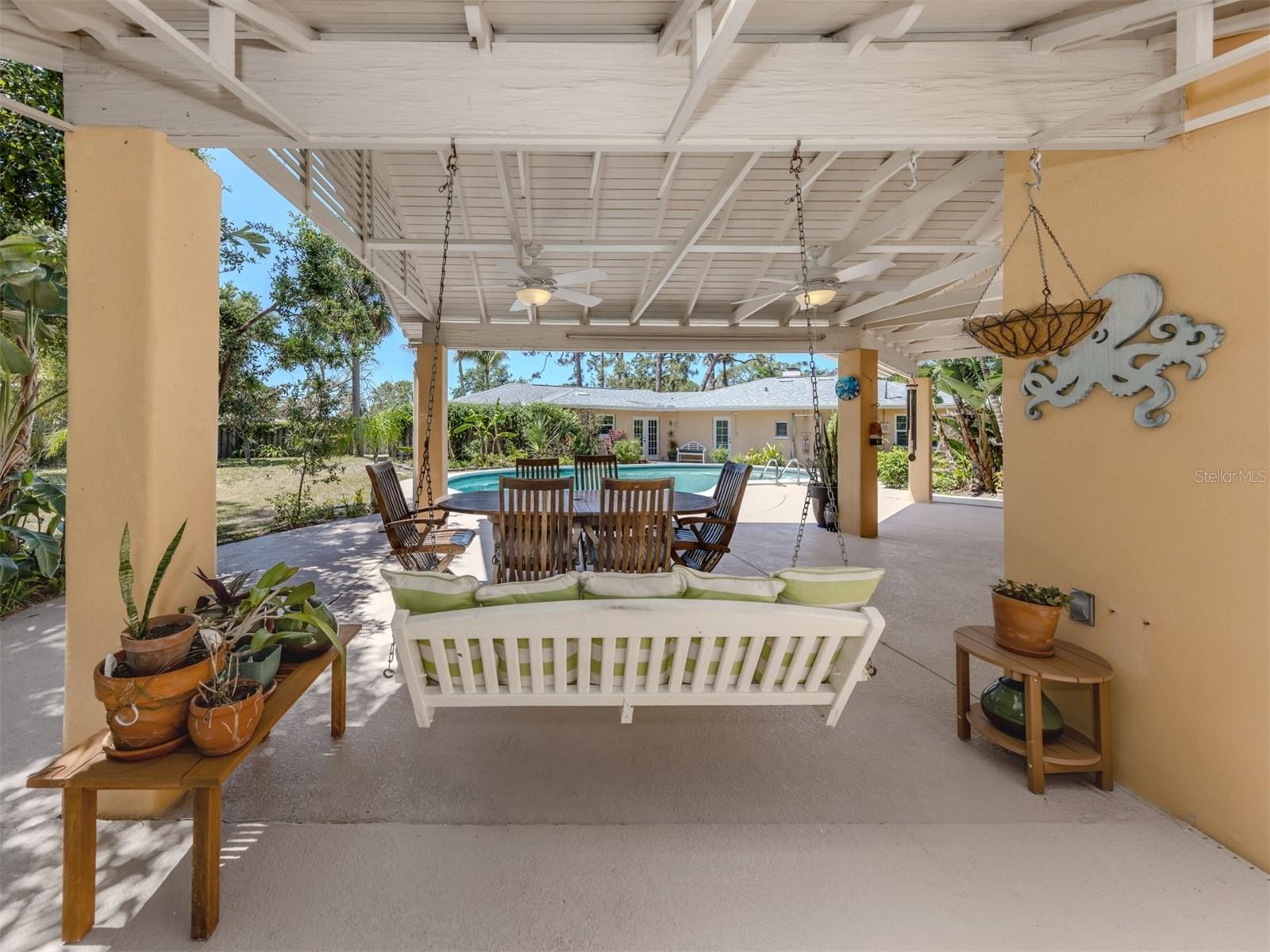 One or more photo(s) has been virtually staged. One or more photo(s) has been virtually staged. This incredible and truly unique home is perhaps the most ideal location on the Island of Venice. This exceptional 2220 sq. ft. home features: 3 bedrooms, 3 baths, plus office, art studio, workshop and huge parklike backyard with an extra large, deep pool. Originally built in 1952 but has been extensively remodeled over nearly 4 decades and major additions added including a large guest bedroom with a nursery or another office with its own private entrance as well as a pool cabana with a large art studio and a large workshop. Almost the entire interior including ceilings was repainted in August 2025 and over $15,000 of updated landscaping in the summer of 2025 was completed. Located in the original Venezia Park neighborhood, you are surrounded by many almost 100 year old homes with their Northern Italian architectural design. What you will probably love most is this amazing location; Only 1/2 block to West Blaylock Park and Arboretum and only 1/2 block to Venezia Park and playground both with picnic areas and walking trail. Just about 3 blocks away is the Venice Cultural Campus with a new Venice Library, the Venice Art Center, The Venice Community Center and the Historic 100 year old Triangle Inn now the Venice History Center. Its an easy stroll of about 4 blocks to historic downtown Venice with its shops, excellent restaurants, galleries and Venice Theatre. Venice Beach is just about 4-5 blocks away. If you want to take a bike ride you are only about 6 blocks to the beautiful Venetian Waterway Trail that connects to the popular Legacy Trail in downtown Venice at the historic train station. The kitchen is all newer as are most of the household appliances. All closets are cedar-lined wood. There is crown molding in almost every room. There are original wood ceilings in some of the main living areas and all copper water lines have been re-piped with PEX pipe. The roof is 9 years old. The air conditioner is less than 2 years old. The pool pump and filter are about 2 years old. And most importantly the many windows and doors are all hurricane impact rated. The attic is extremely large with abundant storage space too with heart of yellow pine roof decking. This property is nearly one half acre plus a large front lot line easement with sidewalks and sits on TWO Island lots with a large circular drive. The back yard is extremely large and private with ample room for possible detached garage with guest quarters and/or an accessory dwelling unit which are permitted in the City of Venice. You could make this a large family compound with this extra large and premium 2 lots Island location. Come and take a look today. You will be enchanted by all of the light that fills every room and the many windows and French doors letting in the beautiful sunlight, the Florida native greenery, mature trees, amazing colorful flowers, plants and spectacular sunsets into the home. There is just a very special feeling in this impressive home along with its beautiful location. So come and see for yourself. You will certainly be glad you did. Thank You.