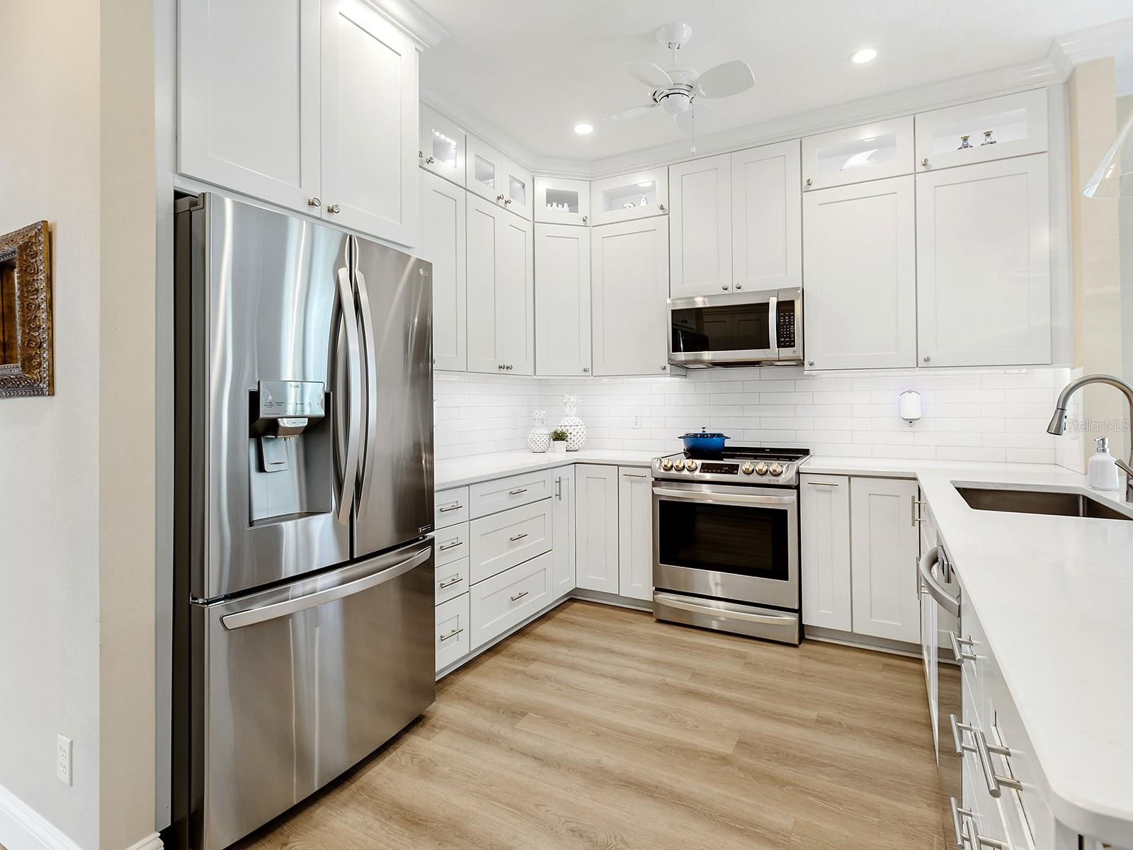 Some homes just make sense, like this one! Tucked away on a corner lot, this detached villa-style pool home delivers the best of both worlds, the freedom and privacy of a single-family home, with the ease of condominium-style living. No roof worries. No exterior maintenance. No lawn care. Just lock-and-leave simplicity without giving anything up. And here’s the mic-drop feature, it’s one of the only homes in all of Waterside Village with its own private pool (recently resurfaced and with new patio pavers). Inside, the home was thoughtfully renovated in 2020, starting with a kitchen that was opened up (wall removed) to create a brighter, more spacious feel. Quartz countertops, gorgeous crown molding throughout the home, crisp white cabinetry, some with glass-front doors, and a clean, timeless design that feels fresh today. Luxury vinyl flooring runs throughout the main living areas, impact-rated windows and doors add peace of mind, and plantation shutters finish every room with polish. The layout is smart and flexible with two bedrooms plus a den, two baths and a two-car garage with new epoxy flooring, workshop and a hurricane-rated door. Hosting friends? The hurricane screen turns the garage into a breezy, bug-free hangout space, ideal for Florida summers. The pool has been recently resurfaced, with new paver tiles on the patio, a remote-controlled hurricane screen on the lanai, a new pool cage, newer roof, newer pool heater and a new water heater. In other words, the big-ticket items are handled. The den features custom built-in shelving, and both walk-in closets for the bedrooms were upgraded with built-ins as well because storage should work as hard as the home does. All this sits in Waterside Village, one of Venice’s social and welcoming communities. Three pools. A main clubhouse. Pickleball, tennis, bocce, mahjong, poker, cards, crafts, fitness classes, ukulele, happy hour, watercolor painting, ping pong and gas grills near each pool. It’s the kind of place where making friends happens naturally. Centrally located, close to shopping, dining, medical facilities and less than 15 minutes to Venice’s beautiful beaches, this home checks boxes most buyers didn’t think they could have all at once. Detached. Private. Low maintenance. Renovated. And rarely available. This isn’t just a home, it’s an easy yes.