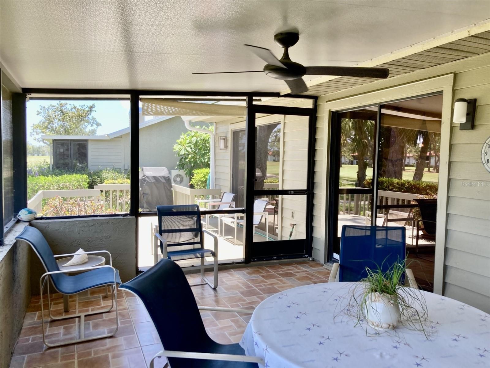 This three bedroom - two bath villa is located on the 4th fairway at the IMG Country Club. It is very spacious with an open floor plan. The kitchen has been remodeled with new cabinets, Corian countertops and stainless steel appliances. It also includes extra cabinets, including a wine cooler and a breakfast bar that seats two. There are sliding glass doors to a screened porch with tile floors and leads to an outside deck - perfect for sunning and grilling. The living room is completed with sliding doors to the deck and features a fireplace. Off the formal dining room is a pretty landscaped atrium. The master bedroom has sliding doors to a patio area and has it's own bathroom which has a walk-in shower, tub and dual sinks. There is a walk-in closet plus another closet. There are vaulted ceilings in the living room, dining room, kitchen and master bedroom. Seller is giving a $5000 credit for new carpet. Across the street from the villa is the heated pool. The villa is in the IMG Country Club area which has an 18 hole regulation golf course and a beautiful clubhouse with grill room and dining room overlooking Sarasota Bay. The course is semi-private, open to the public along with the clubhouse. On El Conquistador parkway is also a tennis club. It is approximately 8 miles to the beach. The community is close to IMG Academy, State College of Florida and other schools. Shopping is close by and Sarasota is about 15 minutes away. It is a perfect location!