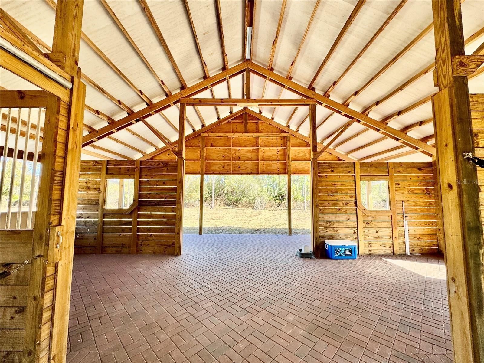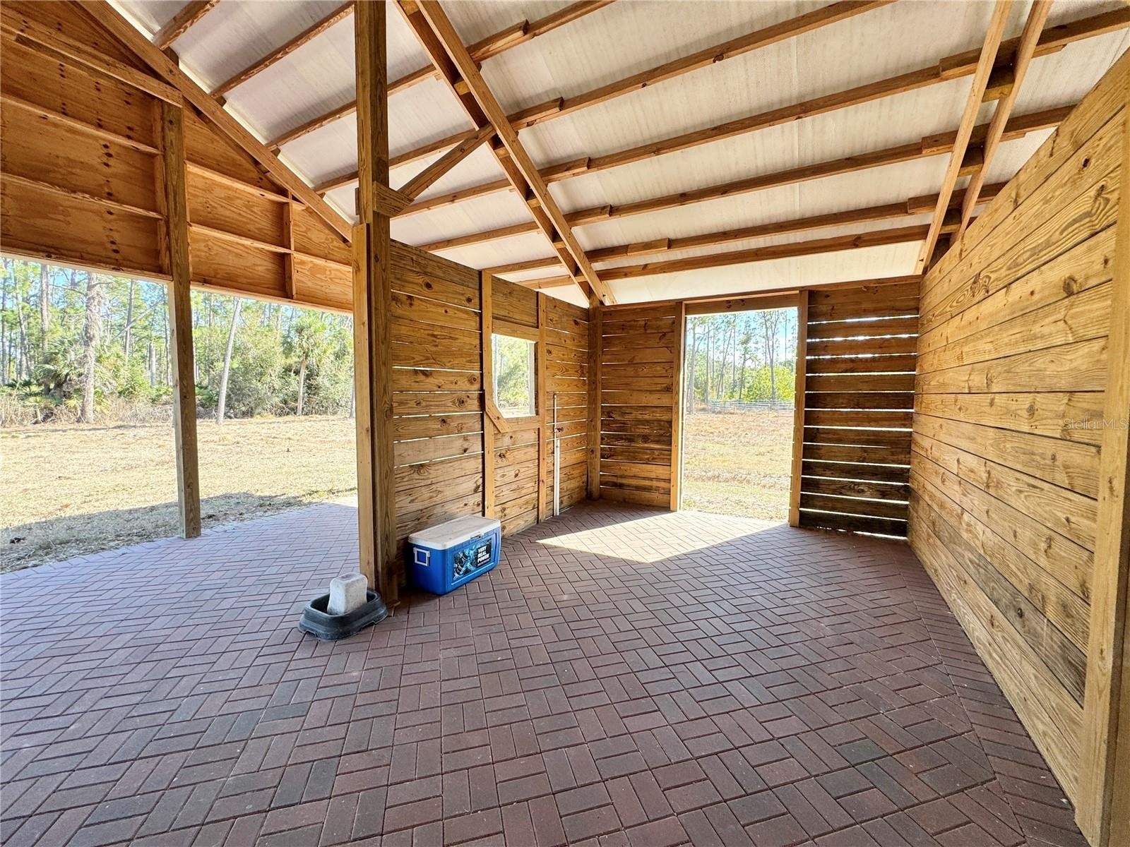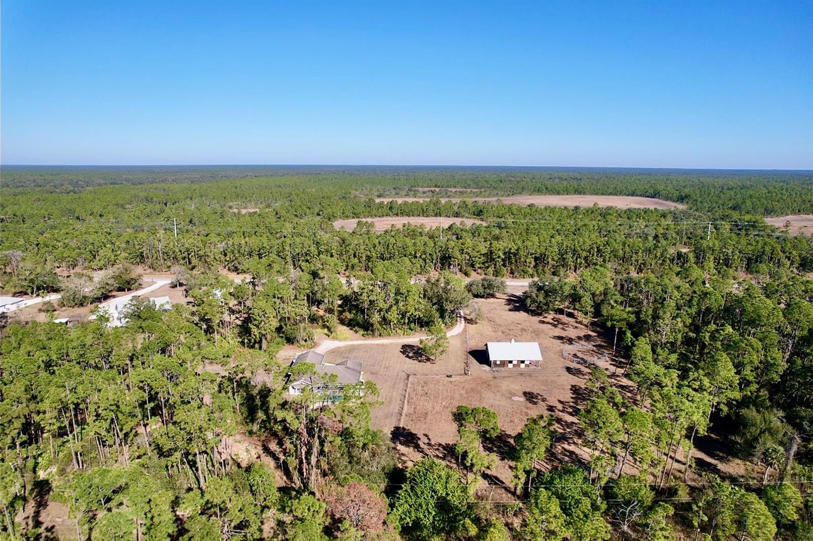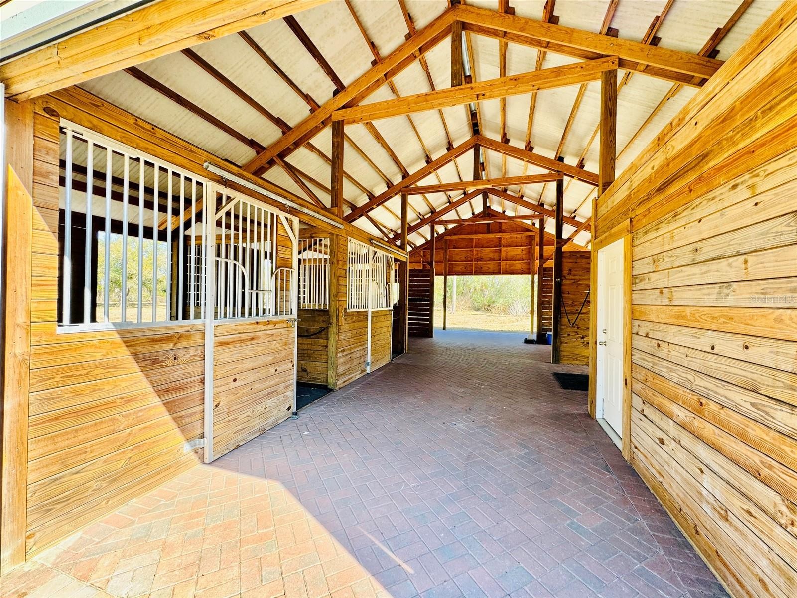 Set on 6.02 acres, partially fenced in North Port Estates, this private, high-and-dry equestrian estate is truly a horse lover’s paradise. Tucked far back from the road with a private entrance, the property offers unmatched peace, privacy, and natural beauty—complete with visiting deer and turkeys. The five-stall barn (NEW 2020) is thoughtfully designed with a wash area, sitting back porch, 12x12 tack and feed room, automatic waterers in each stall, and expensive specialty mats to keep stalls exceptionally clean. Elevated construction, cross-ventilation, and a high-pitched roof keep the barn 10° cooler in summer! The 3-acre horse pasture provides plenty of room to roam with riding trails nearby. The 4-bedroom, 2-bath home (2,258 sq. ft under air) features rich Brazilian mahogany wood floors, fluffy carpet in three bedrooms and a beautifully remodeled kitchen with all-wood soft-close cabinetry, pull-out shelves, a large center island, farm sink, quartz countertops, reverse osmosis under kitchen sink and stainless steel appliances. Entertain effortlessly in the formal living and dining rooms or the spacious family room with a bay window and three pocketing sliders that open fully to the outdoor living space. Outside, enjoy a 15x30 heated saltwater pool, 5-person spa added in 2020 with color-changing LED lights, expansive pool deck, and a pavered lanai—perfect for relaxing while watching your horses graze. Additional highlights include a two-car garage with epoxy flooring, PEX plumbing throughout, updated and maintained well equipment, excellent insulation, and an ADT security system with outdoor cameras and monitor. Not in a flood zone and surrounded by serene nature. This exceptional property blends luxury living with premier equestrian amenities.