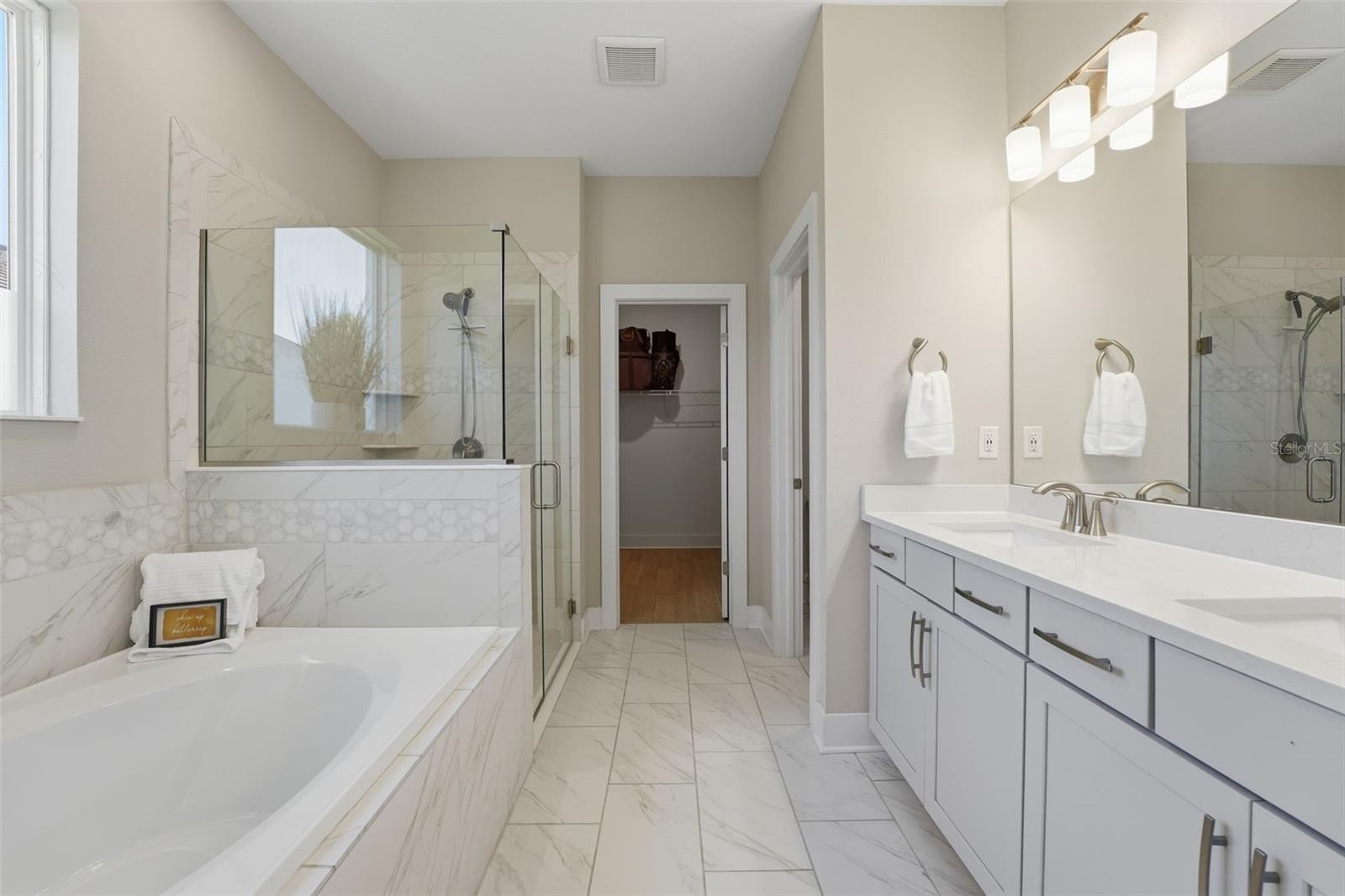 This is the 4-bedroom + flex room, 3 full bath pool/spa home you picture when you think of living in Florida. Thoughtfully designed and beautifully executed, this home blends modern style with a sense of harmony and balance, creating a space that feels both sophisticated and serene. Step inside to discover a sleek, contemporary interior with clean lines, natural light, and an effortless connection to the outdoors. The calming and private backyard offers peaceful views of a lush preserve and even a peek of a sparkling pond, setting the perfect backdrop for relaxation or entertaining. Your outdoor oasis awaits on the 1,000+ sq. ft. screened, partially covered, pavered lanai, complete with a heated PebbleTec pool featuring a sundeck and programmable LED lighting for custom color shows. The attached spa with 4 therapy jets creates three gentle waterfalls into the pool—a tranquil soundtrack to your evenings at home. When it’s time to unwind, retreat to the primary suite, where you can enjoy preserve views and quiet solitude. The spa-like bath includes dual vanities, a soaking tub, a luxurious shower, an enclosed water closet, and a spacious walk-in closet—your personal sanctuary of comfort and style. Built in 2022 by Meritage Homes, this property delivers all the benefits of a new home—without the wait, hassle, or extra cost. Meritage is known for its energy-efficient construction, including advanced insulation for better air quality, sound control, and year-round comfort, along with a multi-speed HVAC system for optimal efficiency. Located in the sought-after Venice Woodlands community, you’ll enjoy resort-style amenities including a community pool, clubhouse, pickleball courts, bocce, and fitness center—all with one of the lowest HOA fees around and no CDD. With ARC approval, fences are allowed. Best of all, there's an EV charging port in the garage to take you the 6.5 miles to Downtown Venice or about 7 miles to Venice or Nokomis Beach, with shopping and dining even closer. This home truly captures the Florida lifestyle—modern, relaxed, and perfectly balanced.