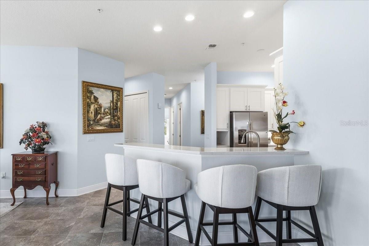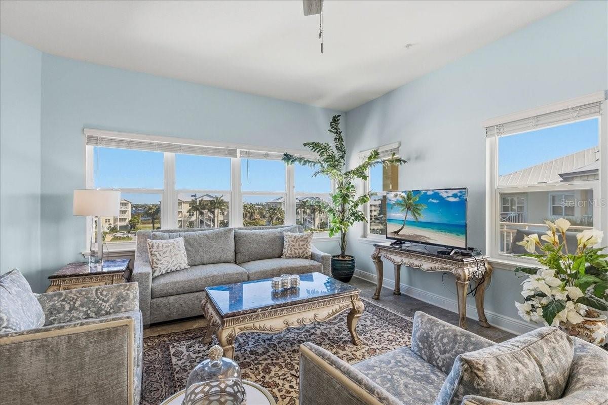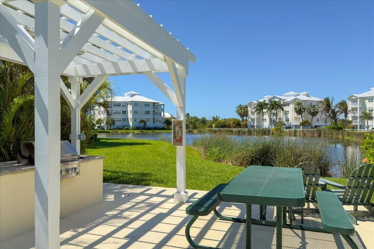 Welcome to paradise at The Preserve at Palma Sola Bay Club, where coastal elegance meets effortless resort-style living. Built in 2021, this stunning penthouse condo offers the perfect blend of modern construction and timeless Key West charm—just minutes from the world-famous beaches of Anna Maria Island. This spacious 3-bedroom, 2.5 bath residence features an open-concept design filled with natural light, enhanced by abundant windows and multiple private patios. Enjoy serene lake views with a tranquil fountain, along with glimpses of Palma Sola Bay—creating the perfect backdrop for breathtaking Florida sunsets. The versatile third bedroom can easily function as a den or home office, adding flexibility to your lifestyle. The beautifully appointed kitchen boasts wood cabinetry, light granite countertops, under-cabinet lighting, and ample storage—ideal for both everyday living and entertaining. Tile flooring runs throughout (no carpet), and a large interior laundry room provides additional storage and convenience. This home is partially furnished and move-in ready. Built for peace of mind, the property includes hurricane impact windows and durable metal roofing. Two covered parking spaces add extra value and convenience. Step outside and immerse yourself in a true tropical oasis, surrounded by lush landscaping, swaying palm trees, and meticulously maintained grounds. Elevator access along with private stairs to access the 3rd floor. The community is rich with amenities, including a stunning clubhouse, heated resort-style pool with multiple lounging areas, outdoor bar and kitchen, fitness center, billiards room, putting greens, grilling stations, and a vibrant social calendar filled with community events. Pet lovers will appreciate the extremely dog-friendly atmosphere, complete with its own dedicated dog park. Whether you're searching for a full-time residence, vacation getaway, or investment opportunity, this exceptional penthouse offers the ultimate Florida lifestyle—just moments from the beach, yet tucked away in a peaceful bayfront setting. Experience island living at its finest—your slice of paradise awaits.
