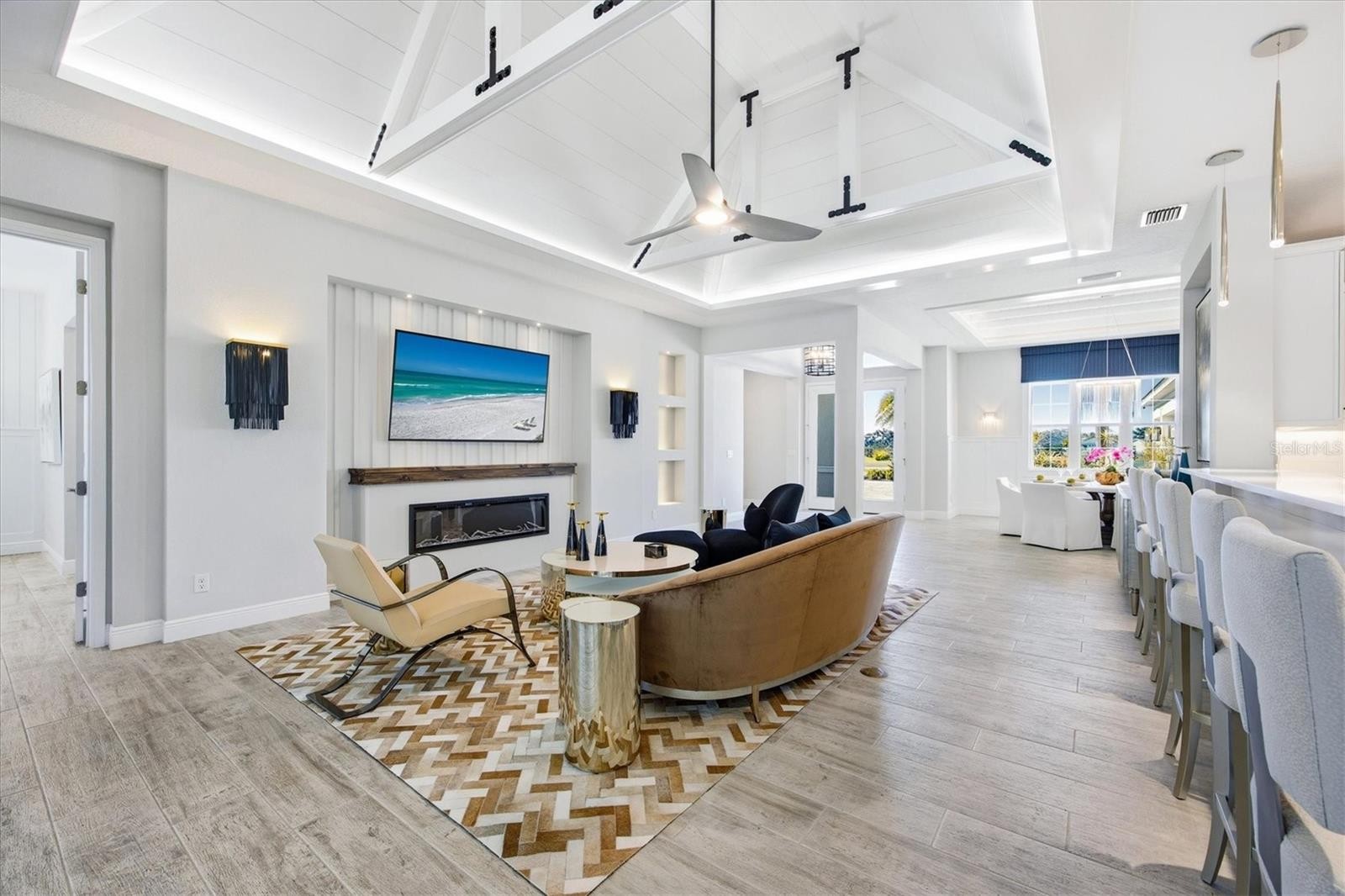 An Irreplaceable Estate Offering Unmatched Value and Distinction...A truly rare opportunity, this exceptional coastal-inspired estate—complete with a substantial detached shop—cannot be replicated at this price point. Built by Medallion Home in 2019 and set within the desirable Hampton Lakes subdivision, the residence is a masterful expression of refined luxury, craftsmanship, and serene country elegance. Spanning more than 3,400 square feet, the main residence is gracefully positioned on just over 3.5 acres, surrounded by sweeping pastoral views that create a sense of privacy and tranquility rarely found so close to modern conveniences. From the moment you arrive, the pavered drive and striking double glass-door entry set the tone for the sophistication within. The interior is rich in architectural detail, featuring custom ceilings, bespoke woodwork, coffered and tray ceilings, and wide-plank blonde beachwood-style tile flooring throughout. Sunlight pours into the home, illuminating thoughtfully designed spaces where modern elegance meets relaxed coastal charm. The chef’s kitchen is both stunning and functional, offering a generous island, expansive breakfast bar, stainless steel appliances, double ovens, and a vented hood, all designed for effortless entertaining. Adjacent to the kitchen, the dining nook is framed by an aquarium-style glass window overlooking the screened pool, crowned by a striking beachgrass chandelier that adds warmth and character. Multiple living and dining areas provide versatility for both intimate gatherings and grand entertaining. A spacious bonus room with tray ceilings and corner sliding glass doors opens directly to the pool, seamlessly blending indoor and outdoor living. The formal dining room is enhanced with refined coastal detailing, ideal for elegant evenings at home. The primary suite is a private retreat, highlighted by wood beam accents, shiplap, and board-and-batten design elements. The spa-inspired ensuite features dual vanities, a luxurious walk-in shower, and premium finishes, while the custom walk-in closet offers exceptional storage and organization. Two additional guest bedrooms, a butler’s pantry, and a show-stopping oversized laundry room—with abundant cabinetry, folding space, and a dedicated work desk—further elevate the home’s functionality. Outdoors, the screened swimming pool is surrounded by lush tropical landscaping, offering a secluded oasis complete with a sun shelf, water features, and LED lighting. Covered lounging and expansive entertaining areas provide the perfect backdrop for alfresco dining and relaxed coastal living. Completing this extraordinary property is a 2,400-square-foot detached garage and shop, featuring decorative epoxy flooring, six electric garage doors with 10-foot openings, and generous space for vehicles, hobbies, or storage. Just minutes from Lakewood Ranch Main Street, downtown Sarasota, and world-renowned Gulf Coast beaches, this remarkable estate delivers an unparalleled blend of privacy, luxury, and convenience. An offering of this caliber is truly exceptional—schedule your private showing and experience the lifestyle that awaits.