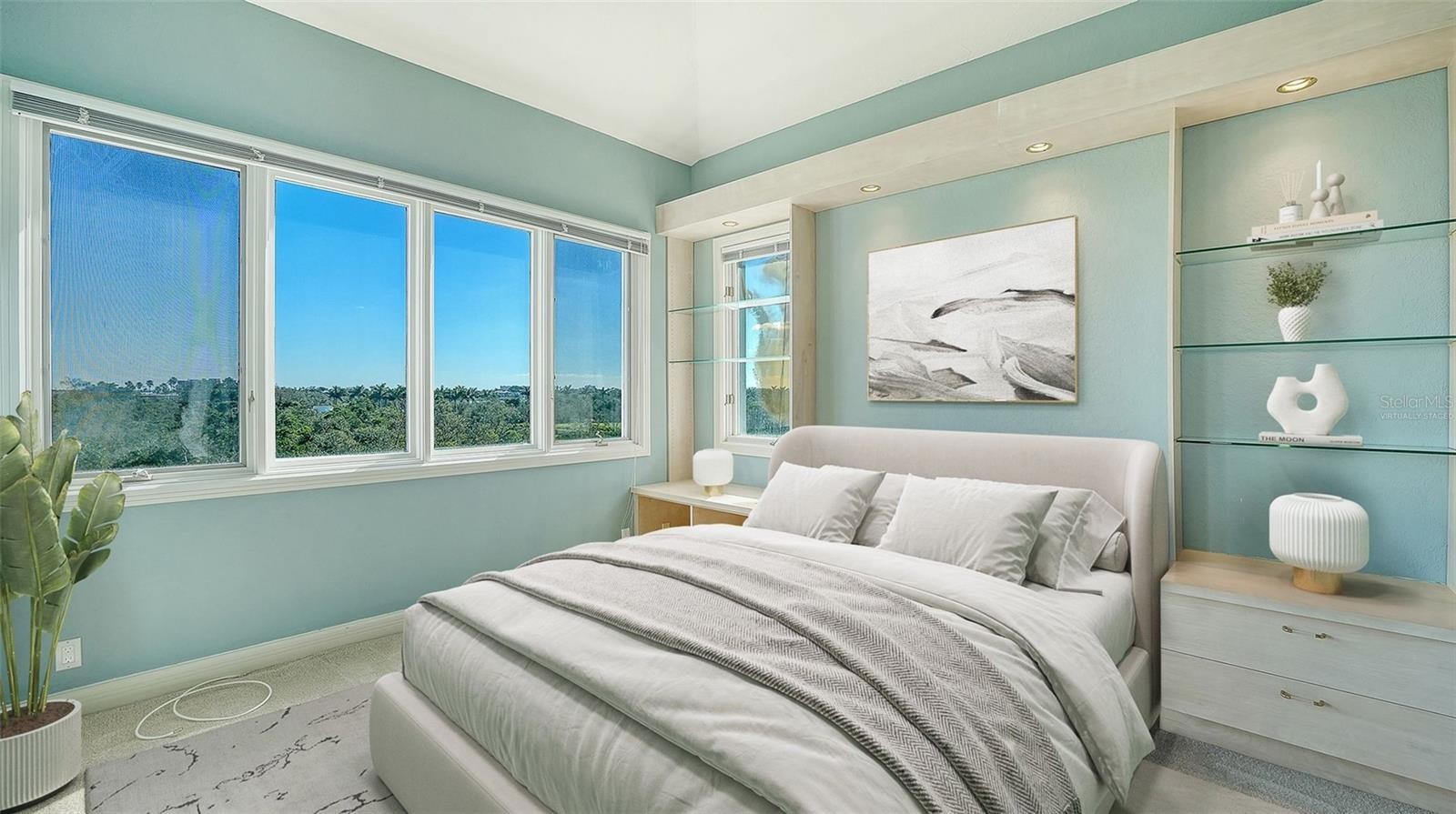 One or more photo(s) has been virtually staged. Set amid the lush, manicured grounds of Tangerine Bay, this exceptional two-story penthouse residence offers a rare blend of architectural volume, natural light, and water views. Mature tropical landscaping, tranquil lagoons, and resort-style amenities create a serene, park-like environment that feels both private and welcoming. Two terraces highlight scenic views and offer the option of installing a gas grill. Inside, soaring two-story ceilings define the main living area, creating an airy, light-filled atmosphere enhanced by expansive windows that frame picturesque views of the lagoon, resort-style pool w/ waterfall features, tropical plantings and the waters of Sarasota Bay and distant city skyline. The open living and dining spaces are ideal for both relaxed everyday living and entertaining, anchored by a fireplace and generous wall space for art. From the entry patio, unexpected Bay and city views provide a striking first impression and a unique urban-meets-coastal backdrop. The residence features three full bedrooms and three and a half baths. The upper-level retreat with its full bath has a terrace with elevated views across the natural preserve toward the city. This home presents a true blank canvas, thoughtfully priced to allow the new owner to reimagine and transform it into their own vision of refined coastal living. A deeded, private two-car garage adds exceptional convenience and value—an uncommon and highly desirable feature. Located on the coveted south end of Longboat Key, Tangerine Bay Club is a gated, pet-friendly community close to Lido Beach, dining and boutique shopping on St. Armands Circle, and the cultural, dining, and arts scene of downtown Sarasota. Optional Bay Isles Beach Club membership is available, providing exclusive access to a private, gated four-acre Gulf of Mexico beach facility, reserved for a select group of members—ideal for beach gatherings, sunset celebrations, and effortless days by the sea. An outstanding opportunity to embrace the Florida lifestyle in one of Longboat Key’s most desirable bayfront communities.