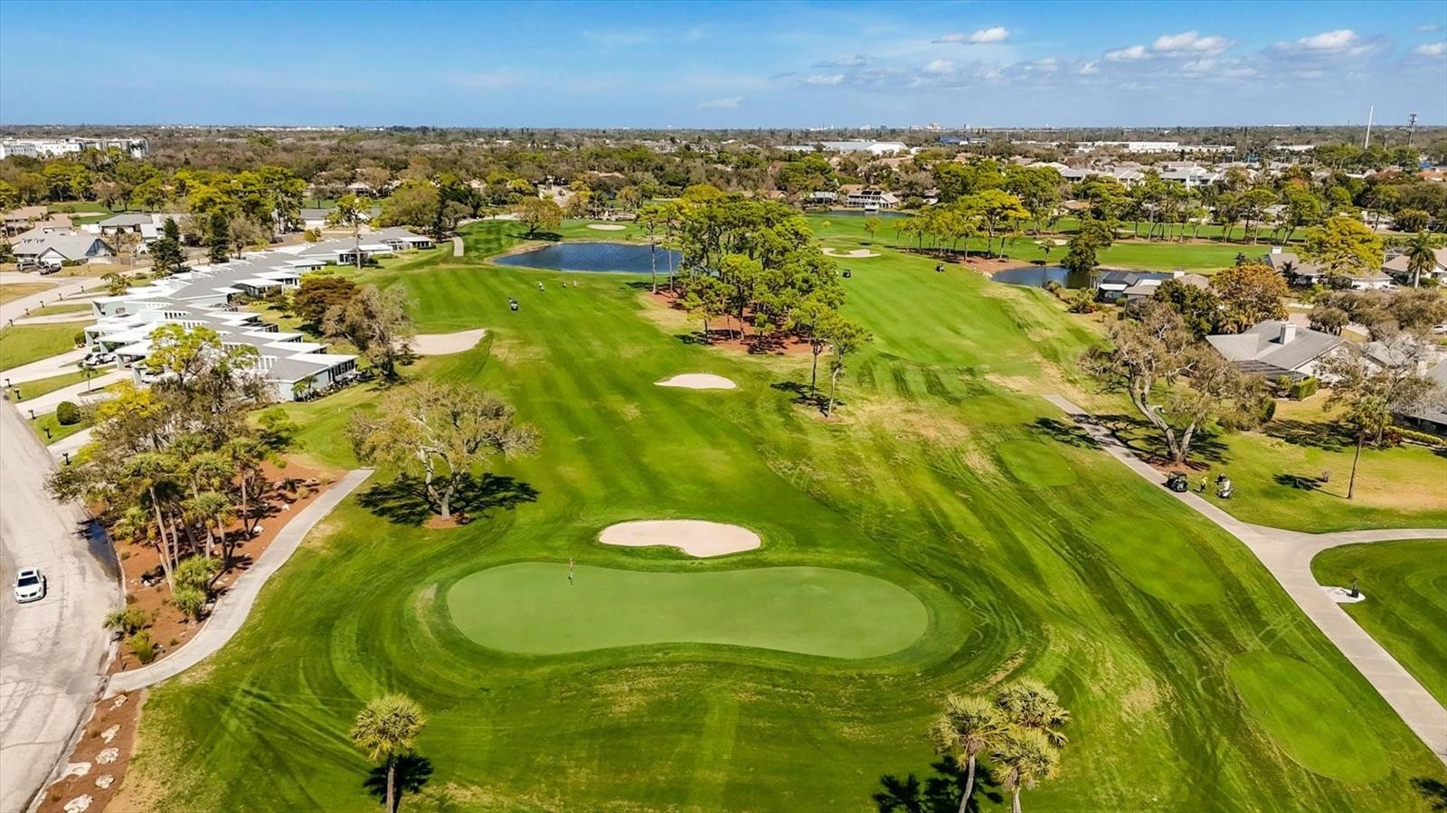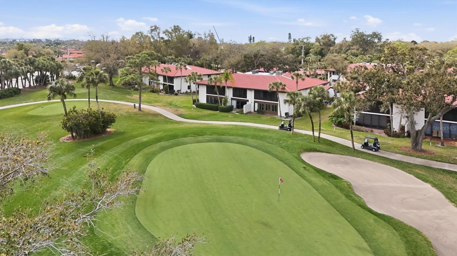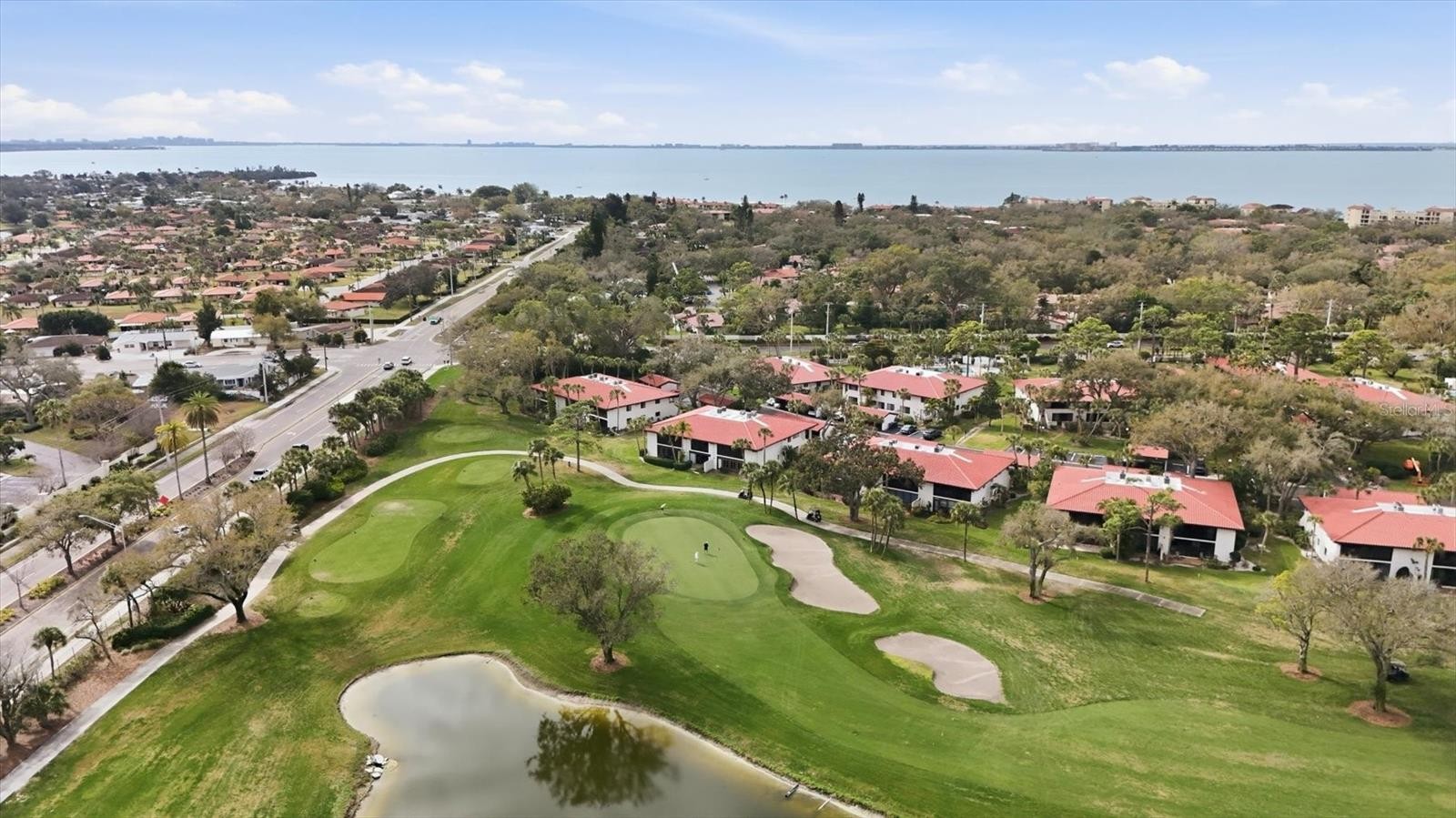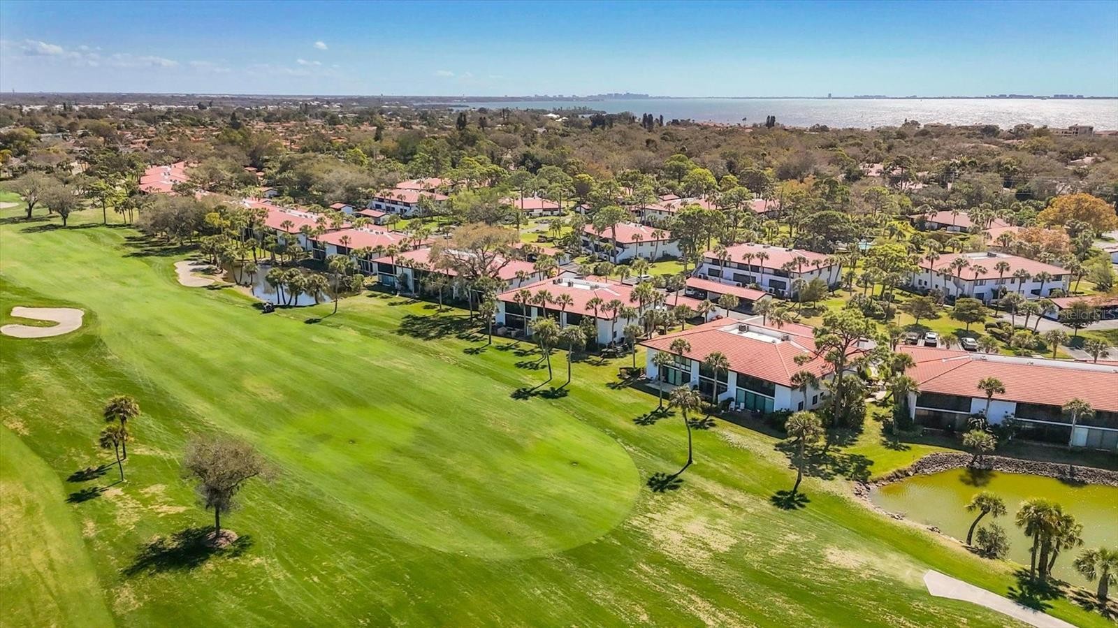 You will not find a nicer 3 BEDROOM UPSTAIRS END UNIT than this beauty! Enjoy the awesome setting overlooking IMG Golf hole #2 green, surrounded by trees, landscaping and water. The kitchen offers stone counters, stainless steel appliances, breakfast bar, and open to the family room. Bathroom 2 is convenient for guests and services both secondary bedrooms, with updated vanity, flood and shower tile. Laminate flooring thru master bedroom, family room and dining space, while ceramic tile covers the sunroom overlooking the back and the two bathrooms. Master bedroom has a walk-in closet, bathroom with walk-in shower, double vanity and large linen closet. Designated carport spot as well as guest parking, owners also enjoy a community pool, and condo dues that include ground maint., cable and internet, water and trash, etc. Located close proximity to IMG Academy, IMG Golf, Detwiler Farm Market, Publix, Target. Short drive to Bradenton beaches and downtown Sarasota.