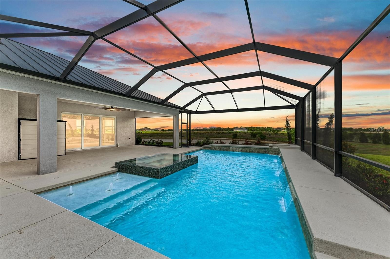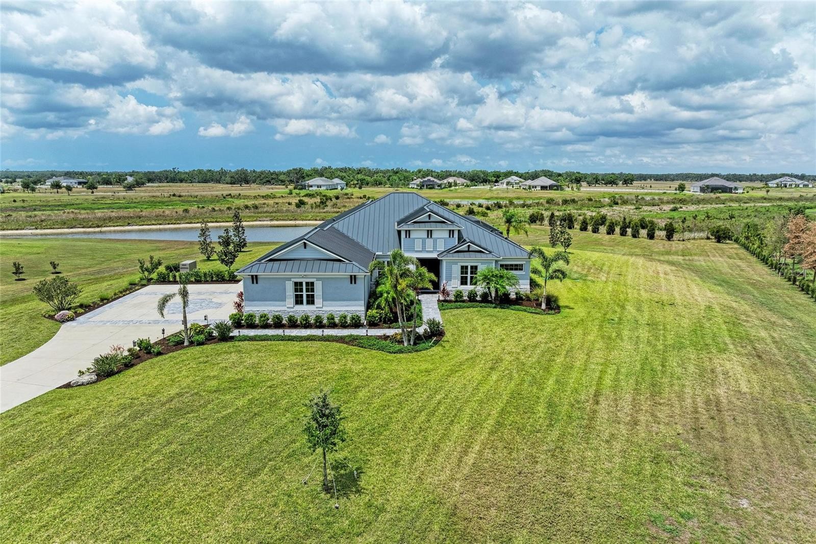 Welcome to your dream retreat! This stunning 3-bedroom, 3-bathroom custom-built home seamlessly blends refined indoor living with breathtaking outdoor tranquility. Perfectly positioned on 5 pristine acres, the property offers privacy, modern luxury, and an abundance of natural beauty, including two picturesque ponds and a private walking trail. Designed with both comfort and sophistication in mind, this home includes a dedicated office, a spacious bonus/media room, and a three-car garage. Inside, the open-concept layout is filled with natural light and thoughtfully accented by elegant details throughout. The formal dining room is illuminated by high-end Hubbardton Forge lighting and connects conveniently to a butler’s pantry, ideal for entertaining. The living room offers a serene space to relax, featuring a tray ceiling, electric fireplace, and oversized sliding glass doors that open directly to the pool area. The gourmet kitchen is a true showstopper, complete with upgraded appliances, a chef’s hood, quartz countertops, a stylish backsplash, and an eat-in bar. A standout feature is the aquarium-style window with built-in seating, bringing the outdoors in and creating a cozy breakfast nook with peaceful views. The adjoining family room continues the theme of spaciousness and comfort, also overlooking the pool. The private office is outfitted with built-in shelving and a desk, making it a functional and stylish workspace. A massive bonus/media room offers flexibility for a home theater, game room, or creative studio and is filled with natural light thanks to ample windows and sliding doors. The primary suite is a true retreat, boasting tray ceilings, two walk-in closets, and a luxurious spa-style bathroom with double vanities, a soaking tub, and a walk-in shower. An oversized second bedroom provides the ideal setup for an in-law suite, guest room, or hobby space. The spacious laundry and mudroom connects to both the driveway and the garage and includes a walk-in pantry for added storage and convenience. Outdoor living is just as impressive. The saltwater pool and spa feature soothing water elements and a six-foot deep end, surrounded by a covered patio that has been plumbed for an outdoor kitchen—perfect for hosting or relaxing in the Florida sunshine. The expansive backyard offers endless opportunities for entertaining or peaceful reflection, with two serene ponds and a nature trail that winds through your own private haven. This home is equipped with state-of-the-art smart technology, including WiFi-controlled appliances, lighting, thermostat, pool, garage doors, and security cameras. Additional features include a 30 kW liquid-cooled Kohler whole-house generator, a 1,000-gallon owned propane tank, and a 2023-installed metal roof with integrated pest protection. All windows are impact-rated, with aquarium hurricane shutters and electric zebra blinds, including light-blocking shades in the primary bedroom. The home has also been expanded to enlarge the master suite, second bedroom, laundry room, and bonus room for added comfort and livability. Located in FEMA flood zone X, 56 feet above sea level—offering the lowest flood risk—this exceptional property is the perfect balance of luxury, function, and nature. Schedule your private tour today and experience the unmatched lifestyle this home provides.