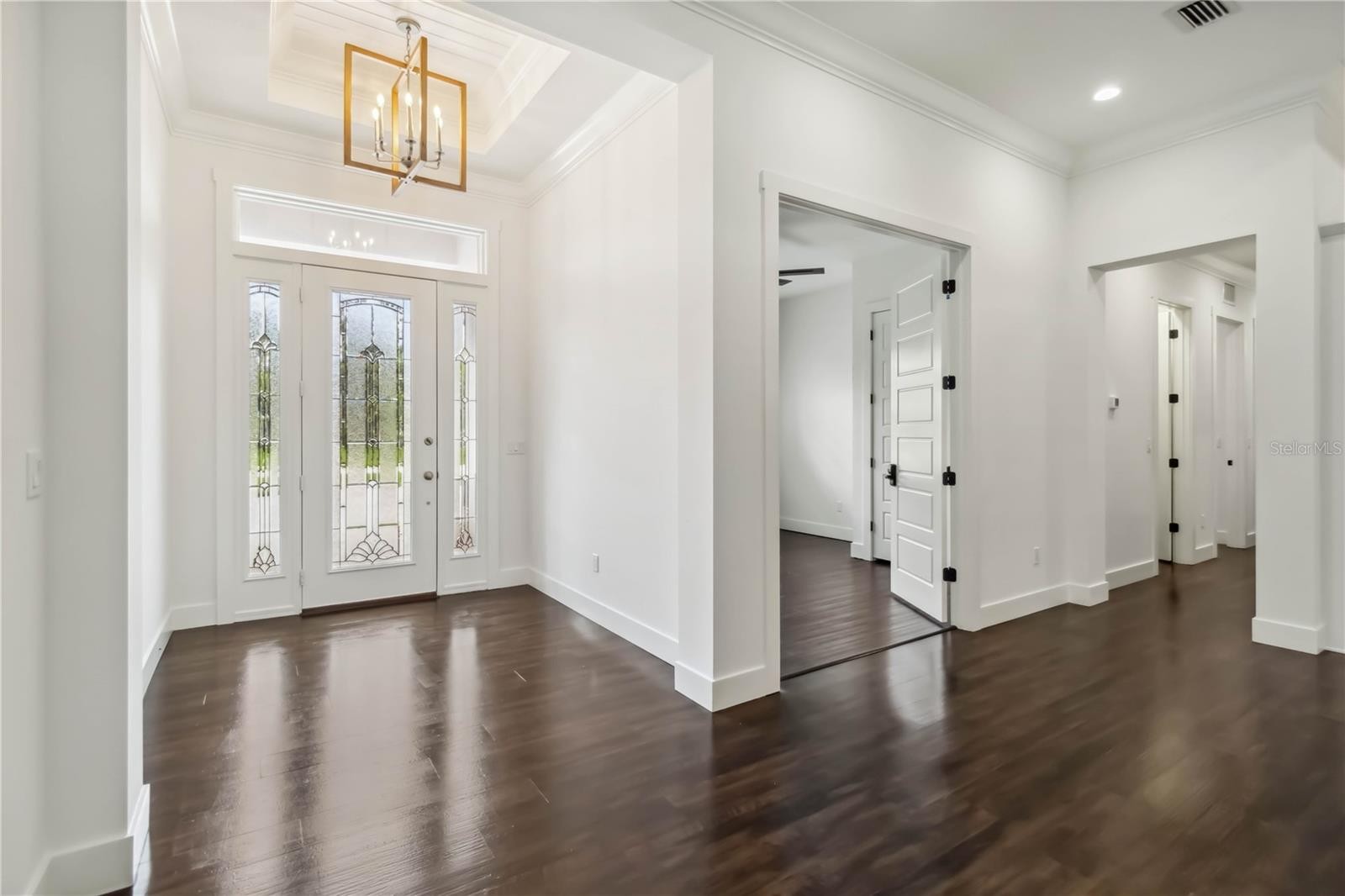 WATERFRONT LUXURY... more than just a home, 352 Chantilly Trail is an entertainer's dream offering unparalleled comfort and coastal style! Pristine Lake Views take center stage in this stunning Waterfront Residence nestled in the gated and vibrant community of Greyhawk Landing. There is so much to love about this impeccably maintained Sam Rodgers-designed home with its classic flair and light-filled living spaces. Boasting 14’ coffered ceilings and a wall of vanishing sliders, the living area flows seamlessly to the outdoor oasis blending true indoor-outdoor living. Bask in the sun or take a dip in your refreshing Pool as you relax and unwind on your well-appointed Covered Lanai. The new Outdoor Kitchen and Dining Veranda feature a granite-topped bar and Gas BBQ grill—creating an ideal spot for your alfresco gatherings. The inviting kitchen is a culinary haven integrating Quartz counters with modern light cabinetry, a stylish backsplash, under cabinet accent lighting, a generous island, natural gas range, stainless steel appliances and a walk-in pantry. This distinctive 3-bed/ 2.5 bath split-bedroom floorplan with an additional flex space, provides privacy and versatility for those working from home or entertaining guests. Take your pick of spots to enjoy your meals, from casual in the eat-in kitchen, festive in the formal dining room, or quick and cozy at the breakfast bar. Retire to your owner's suite complete with a luxuriously appointed ensuite bath featuring separate vanities with quartz counters, a frameless shower and a generous walk-in closet. Perfect for family or guests, there are two spacious bedrooms each in a separate wing of the home which share an adjacent bath. The additional flex space provides options for a den or home office, ensuring comfort for remote work or study. This special home showcases lovely details such as marble tile, designer lighting and intricate ceilings with architectural accents. The Seller has added over 30k in upgrades to this special home which include an outdoor kitchen, custom window treatments, designer lighting and fans, intricate ceiling and architectural moldings, grout sealer, rain gutters and an in-wall pest system. Come discover Greyhawk Landing a premier, gated community near Lakewood Ranch, unrivaled in scenic beauty and graced with a wealth of resort-style amenities. Highlights include two Community Centers featuring lagoon-style pools, spas, and a waterslide. A clubhouse with a state-of-the-art fitness center & sports courts. Playgrounds, sports fields and fishing lakes offer endless recreation, while one of the most cherished features of Greyhawk Landing is the expansive network of scenic trails for residents to immerse themselves in the community's breathtaking beauty. Just minutes from Lakewood Ranch’s top-rated schools, upscale dining, shopping, golf courses, and the pristine Gulf Coast beaches, this home embodies the essence of Florida’s coastal lifestyle. You'll appreciate the convenient access to Lakewood Ranch, I-75, local airports, and Sarasota's downtown arts and cultural districts. Additionally, your home is just minutes away from the powder-white sands and blue waters of our award-winning Gulf beaches. Are you ready to live in paradise? This pristine home could be yours today! Call us for your private showing.