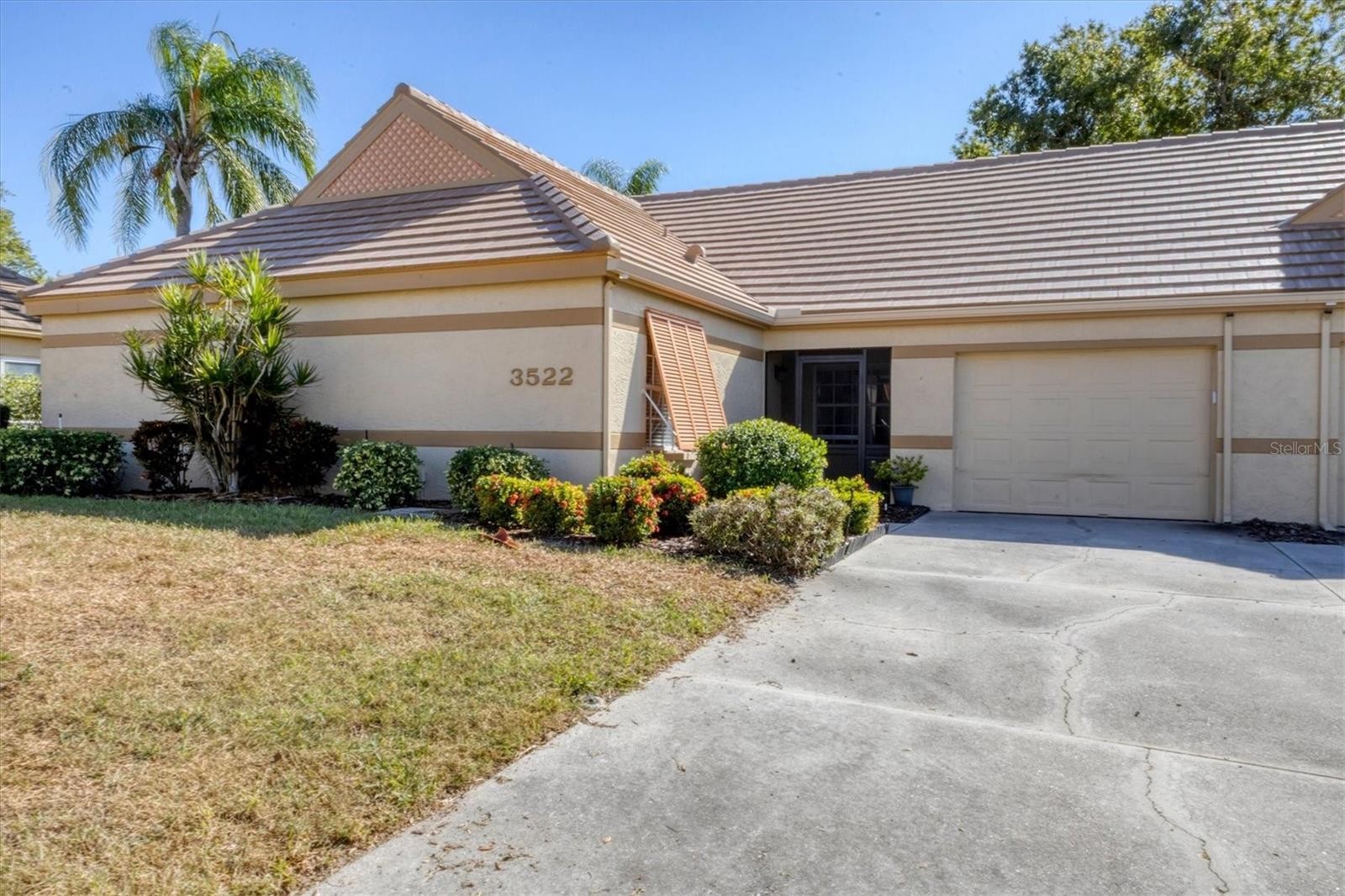 Welcome to this beautifully maintained 3-bedroom, 2-bathroom villa offering a serene and peaceful pond view and NEW ROOF IN NOV 2025. Perfectly designed for comfort, this home features a spacious layout with vaulted ceilings, creating a bright and open atmosphere throughout. The oversized 1-car garage provides plenty of storage, while the screened lanai with vinyl panels ensures year-round enjoyment, no matter the weather. Located in the popular Lakebridge community, a prime spot with easy access to plenty of shopping, dining, and entertainment options. This residence is also just a short drive from IMG Academy, making it an ideal choice for those seeking convenience and fun. Whether you're enjoying the peaceful pond view, partaking of a game of tennis or a swim in the community pool or exploring the nearby amenities, this villa offers the perfect balance of comfort and location. Don’t miss out on this fantastic opportunity to own a truly well-maintained home in an unbeatable location!