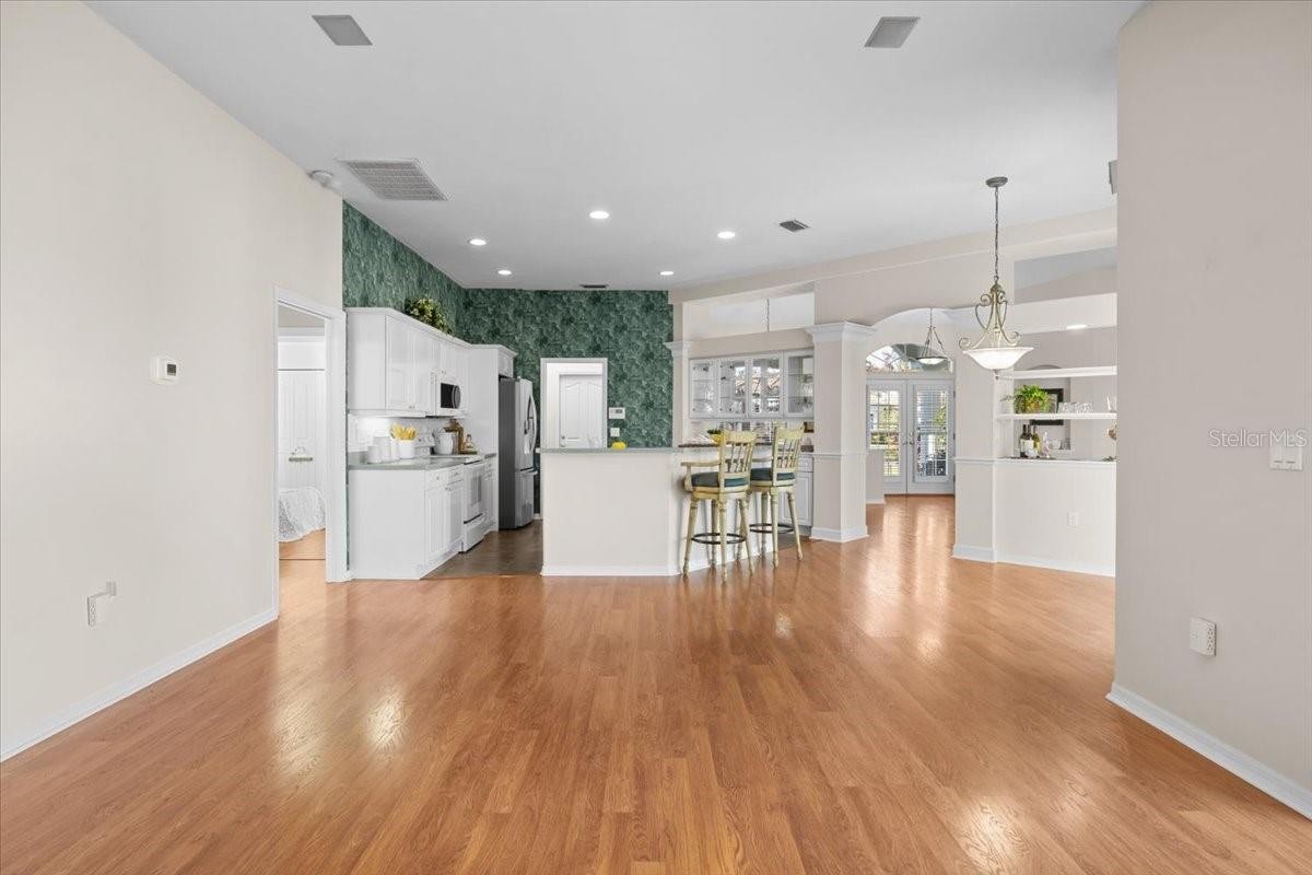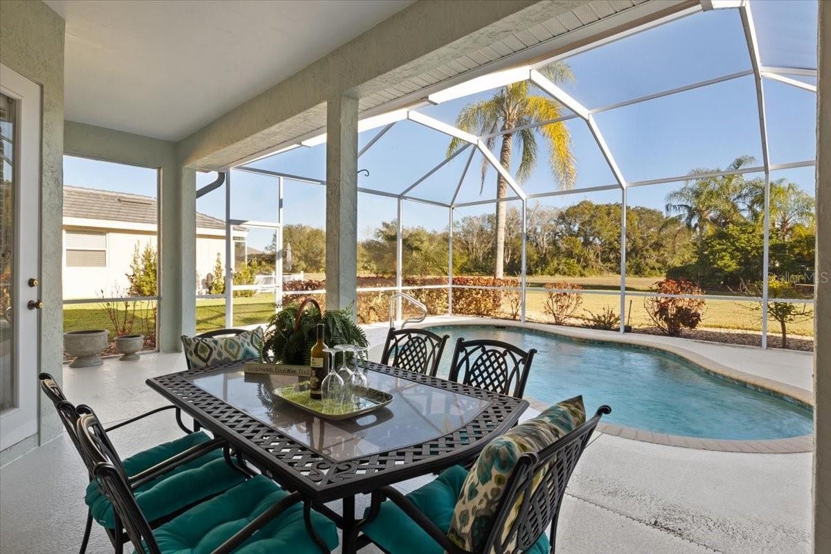 Tucked away among tree-lined streets and mature landscaping in Parrish’s premier golf community of River Wilderness and conveniently located on one of the most desirable streets in the neighborhood. The park-like setting to the back of this house offers a lovely preserve view just waiting to be fenced for pets or a growing family. The home sits on a LARGE (.51 ACRE) CORNER LOT. This home is so thoughtfully designed and comes with views that are both serene and private. As soon as you enter, you are struck by views of the sparkling saltwater pool. There are sliders in all of the main rooms surrounding the pool and pocket sliders in the family room. Almost 2,300 sqft of living space and dramaticly high ceilings embodies the perfect space for entertaining the whole family. Formal living and dining provides a receiving place for your guests away from the private family areas. The kitchen is open to the spacious family room that has sliders leading out to the pool and lanai. There is only one room with carpet in the house which makes for easy care and extra clean conditions. The spacious patio encompasses a gorgeous pool and covered deck area where you can sit and enjoy your private oasis. The split floor plan invokes a true master suite on the left side of the house with dual sinks, soaking tub, walk-in shower and a large primary walk-in closet. The right side of the house contains a wing with two bedrooms and a hall bath. There is a private suite to the back of the house with a 4th bedroom (office/den/gym/tv room) and a private bath with a private entrance that leads out to the lanai and pool. Relatively new appliances (refrigerator and microwave 2021) and the ac was replaced in 2020 and has recently been upgraded with blue light technology. This home has been impeccably maintained giving you the complete peace of mind to relax and enjoy the true Florida lifestyle. A 4-point inspection was completed two years ago and the roof was noted to have 14 years of remaining life. The golf course and country club have recently been purchased by The Walden Group and will be professionally managed by Pinnacle Golf Properties. It is expected that they will be making a significant investiment in the facilities making it the a premier destination! The Club offers pickle ball, pool, fitness center, tennis and many social activities. Boat and RV storage in community. For the nature lovers, there are hiking trails and abundant wildlife. There are two 24-hour manned gates. CLUB MEMBERSHIP IS OPTIONAL. There is a COMMUNITY BOAT RAMP that is open to the entire community and provides direct access to the Manatee River. River Wilderness is PERFECTLY LOCATED! Strategically positioned between St. Pete and Sarasota, access to 2 airports (45 min.) several hospitals is available to the north and south. The newly constructed Ft Hammer Park located on the beautiful Manatee River is just minutes south of the front gate and features a boat ramp, fishing pier plus picnic pavilion. The new Fort Hammer Bridge also provides a convenient back route into Lakewood Ranch and Sarasota where fine dining and shopping are within easy reach. Don’t wait to start living the good life. No pickup trucks in driveway overnight in RW.