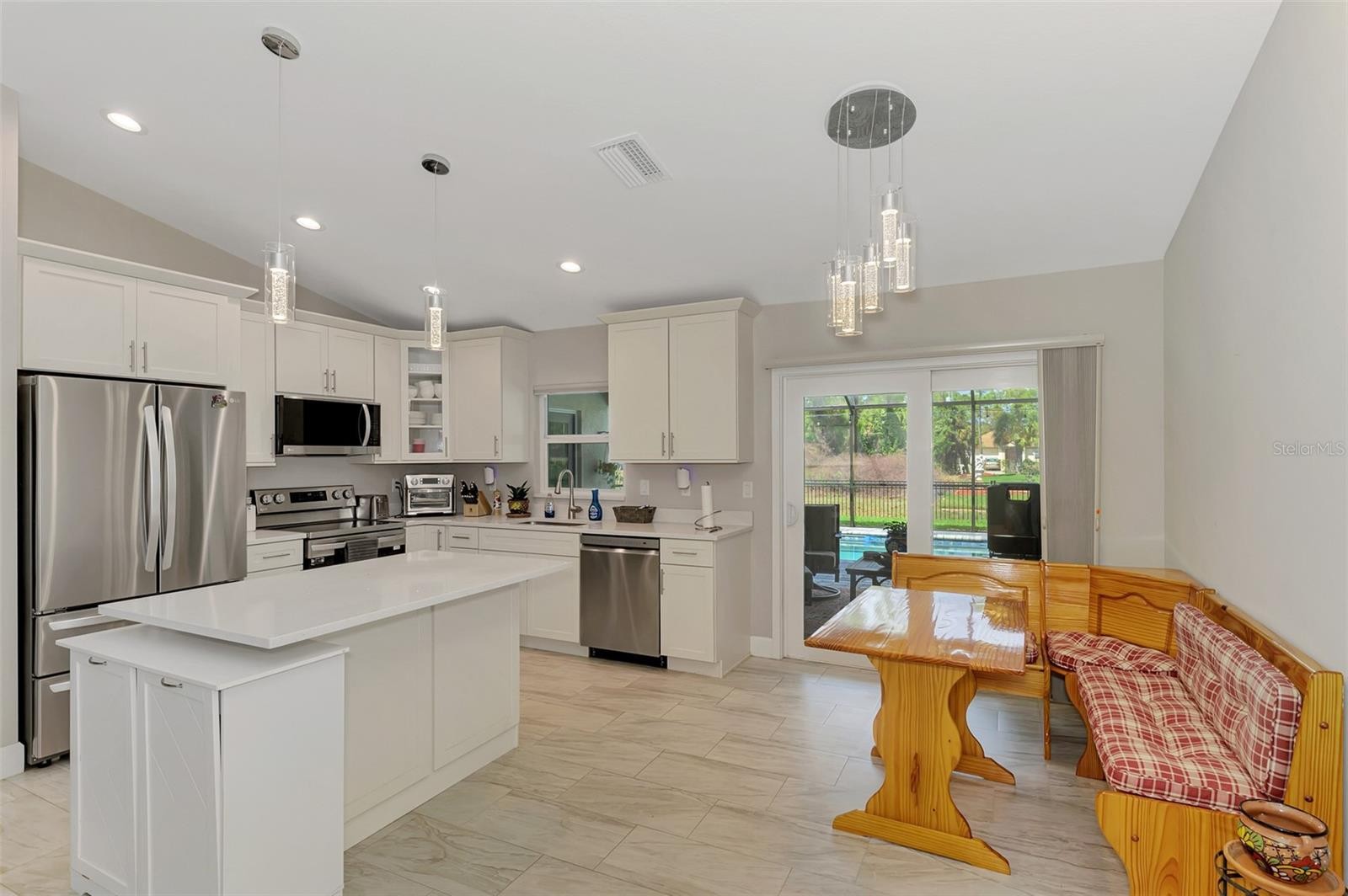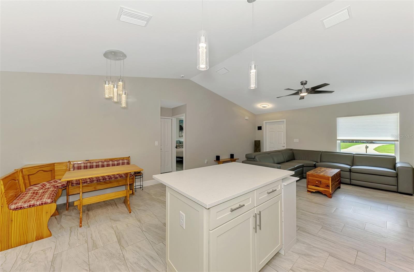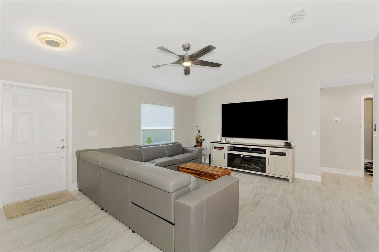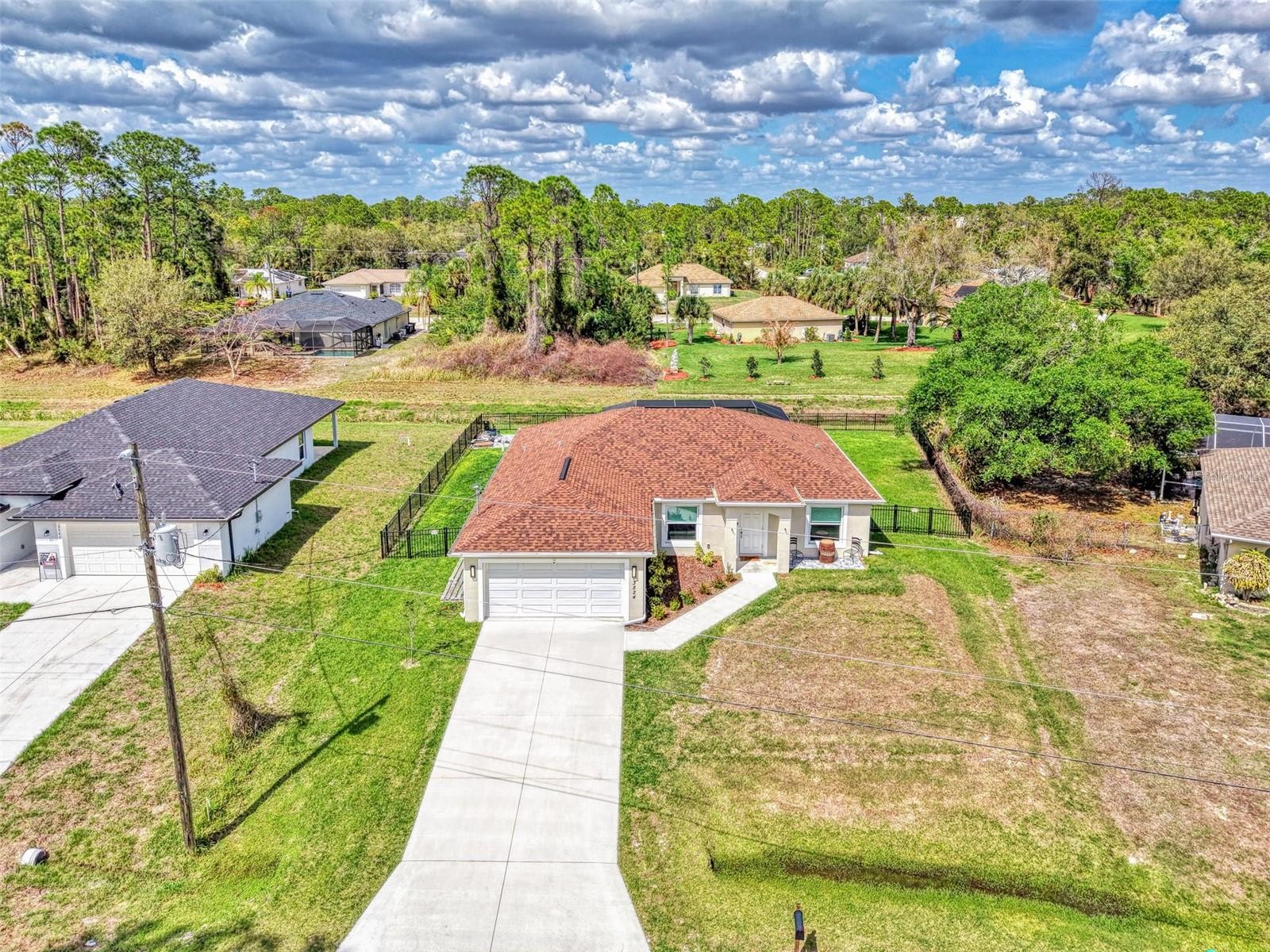 Why wait when you can enjoy a beautiful SALTWATER POOL HOME BUILT IN 2024? This impressive property offers 3 bedrooms, 2 baths, an LARGE OFFICE THAT CAN BE CONVERTED INTO A 4TH BEDROOM if needed, and a 2-car garage, all set with a PEACEFUL GREENBELT VIEW IN THE BACK. From the moment you arrive, the well-kept landscaping and modern design create great curb appeal. Inside, high ceilings and neutral décor set a bright and welcoming tone. Ceramic tile flooring runs throughout the home, adding both style and easy care. The main living area features a large impact sliding glass door that opens to a tiled lanai and pool deck with a sparkling blue STATE-OF-THE-ART in-ground heated & chilled pool with color light changer, seat with bubbler, spa jets and pool heater that also fills the pool! ($85,000 VALUE!) This design creates smooth indoor-outdoor living and makes the home feel open and airy. The CENTER ISLAND kitchen is built to impress. QUARTZ COUNTERTOPS provide both beauty and durability, while 39-inch soft-close cabinets offer generous storage space. Upgraded stainless steel appliances give the kitchen a sleek and modern look. A large center island adds even more storage and provides extra space for meal prep or casual dining. Just beyond the living area, the primary suite offers a peaceful place to relax. It includes direct access to the lanai, a spacious walk-in closet, and a private bath with a floor-to-ceiling tiled walk-in shower that brings a touch of luxury to everyday living. A smart split floor plan adds privacy and comfort throughout the home. Two generously sized guest bedrooms are located on the opposite side of the house along with a full bathroom. The separate office provides flexible space for remote work, hobbies, or a quiet reading room. The layout keeps the home functional while maintaining a comfortable flow from room to room. Outdoor living shines here. The covered lanai opens to a paver patio and a large fenced backyard, giving plenty of space for entertaining, relaxing, or letting furry friends roam freely. The private greenbelt view adds extra peace and a sense of space behind the property. IMPACT WINDOWS AND SLIDING DOORS provide added protection during stormy weather and help bring peace of mind year-round. Additional features include a 2-car garage, recessed lighting, and a laundry room with a sink. The landscaped exterior adds to the home’s beauty, while the spacious yard offers room for future outdoor projects. With easy access to I-75, this location makes it simple to reach restaurants, shopping, golf courses, and local parks. The beautiful beaches of Venice are also just a short drive away. Don’t miss the chance to own this exceptional Florida home. Schedule your private showing today!