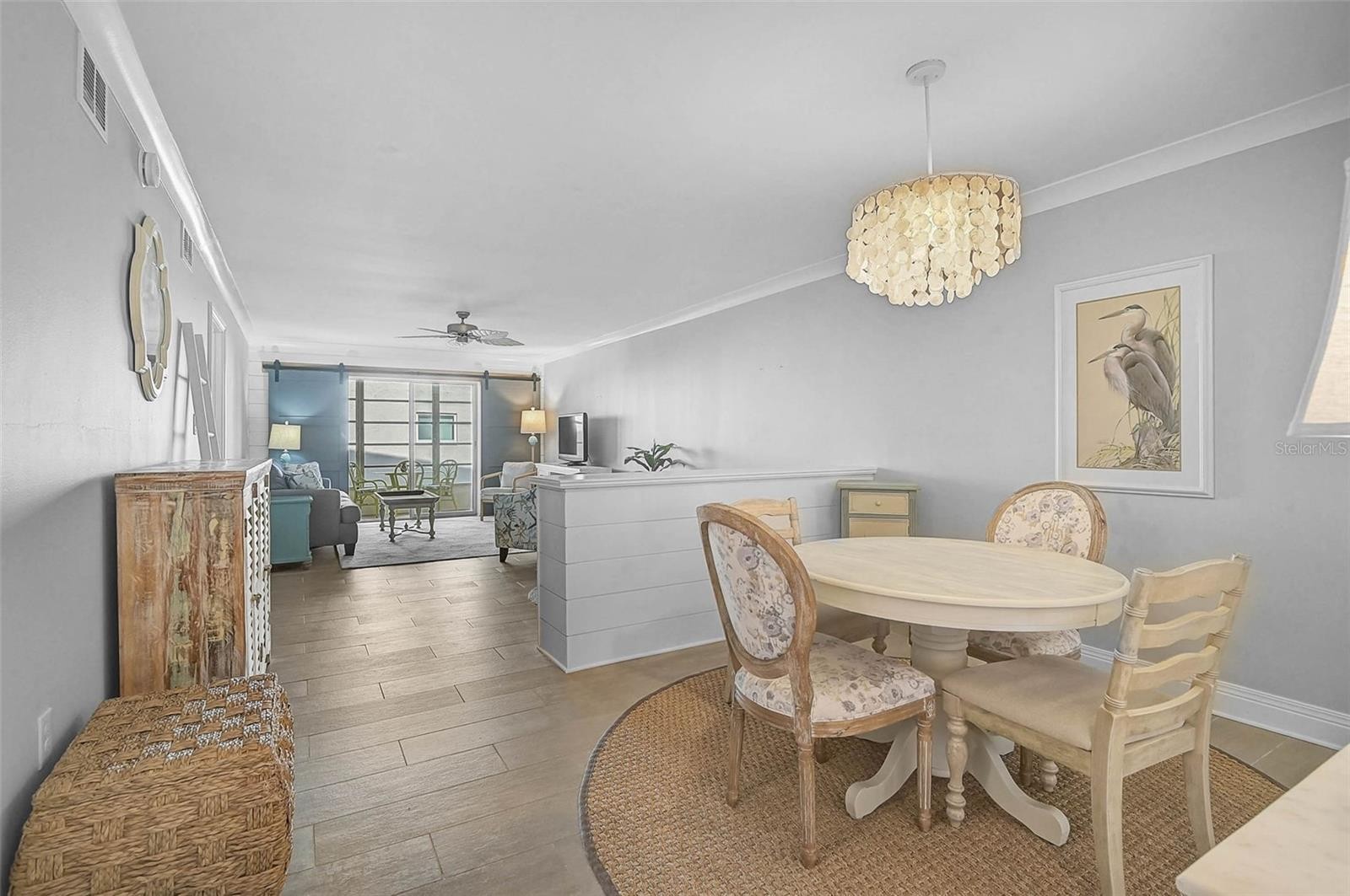 Experience comfortable living in this CHARMING 3rd-floor 2BR/2BA condo, perfectly situated in the 55+ community of Bayshore On The Lake! Step into this light and bright kitchen, featuring gleaming quartz countertops, stylish subway tile backsplash, and charming shiplap accents. Enjoy the convenience of a pull-out trash and recycling drawer, plus a brand-new refrigerator and microwave. A built-in room divider beautifully separates the dining and living areas, offering extra storage or display space for your favorite décor. The spacious primary suite features stylish barn doors, a separate vanity area, a large walk-in closet, and a luxurious step-in shower with stunning stone flooring—perfectly blending functionality and elegance. The lanai features a partial lake view and offers plenty of space for additional seating, making it ideal for entertaining or enjoying quiet moments. A washer and dryer (approximately 1 year old) are conveniently located in a closet on the lanai, keeping laundry out of sight while maintaining functionality. This versatile area is also a perfect spot to read, relax, or unwind. The home also includes crown molding throughout and hurricane-resistant windows for added peace of mind. Stay comfortable year-round with the AC installed in 2018. Community amenities include a heated swimming pool, clubhouse, and shuffleboard courts. Enjoy convenient access to shopping, dining, and local amenities, plus nearby beaches and cultural attractions. Monthly condo fees cover internet, basic cable, trash service, exterior and grounds maintenance, building insurance, and professional management—making this a low-maintenance lifestyle. Start the new year in your new condo!
