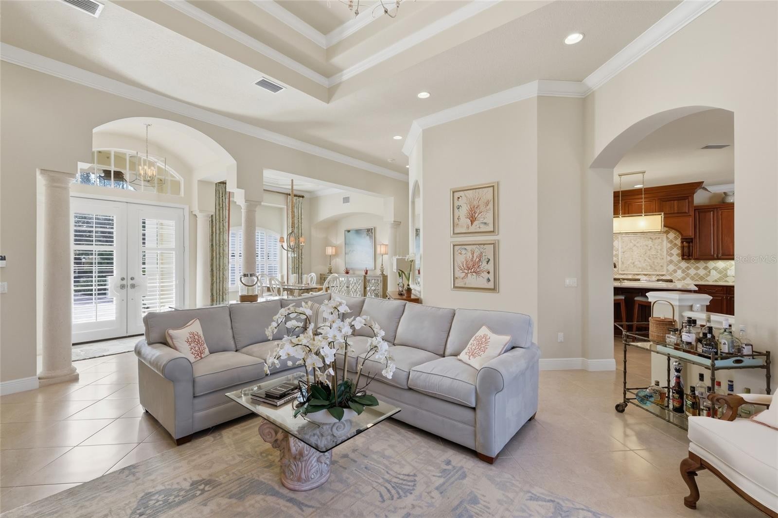 A True Gem in The Founders Club Elegance, Comfort, and An Outstanding Location Welcome to 3597 Founders Club Drive, an exquisite residence nestled within Sarasota’s premier gated golf community, The Founders Club. Built in 2006, this residence combines quality construction with modern amenities and is walking distance to the club house. The property sits on a 0.47 acre lot, offering both space and intimacy within a prestigious community known for its Robert Trent Jones jr. golf course, clubhouse, and social activities. Spanning 3,957 square feet of living space, this home features four spacious bedrooms, three full baths, and one half bath, thoughtfully designed with a split floor plan to maximize privacy and comfort. The grand foyer opens into formal living and dining areas, while the family room has pocket sliders which open onto the lanai. High ceilings, crown molding, and expansive windows create a light filled ambiance throughout the house. The gourmet kitchen is a chef’s delight, boasting a large center island, breakfast bar, walk in pantry, and custom cabinetry. Stainless steel appliances and ample counter space make entertaining effortless. Adjacent to the kitchen, the family room offers casual elegance with views of the pool and lanai. A separate breakfast nook provides the perfect spot for morning coffee in the sheltered lanai overlooking the 18th fairway. The primary suite is a private retreat, complete with dual vanities, a walk in shower and separate tub. Generous his and her closet space and direct access to the lanai enhance the sense of luxury. Additional bedrooms are well appointed, ideal for family or guests, while a bonus room and dedicated office/den provide flexibility for work or leisure. Outdoor living is at the heart of this home. The expansive screened lanai showcases a sparkling pool and spa, surrounded by ample deck space for lounging or dining al fresco. Mature landscaping ensures privacy, while the backdrop of The Founders Club’s natural beauty creates a tranquil oasis. With his and her two car garages, there is abundant space for vehicles, golf carts, and storage. Living at The Founders Club means enjoying an exclusive lifestyle. Residents benefit from a limited membership golf club, (for which a membership is available for transfer), little traffic, and a vibrant social calendar. Located east of I 75, the community provides convenient access to downtown Sarasota, world class beaches, cultural venues, and fine dining. This home is more than a residence—it is a statement of elegance and comfort. Whether hosting gatherings, enjoying quiet evenings by the pool, or taking advantage of the community’s amenities, 3597 Founders Club Drive offers the perfect blend of sophistication and Florida living. Don’t miss the opportunity to make this exceptional property your own. Schedule a private tour today and experience the unmatched charm of The Founders Club.