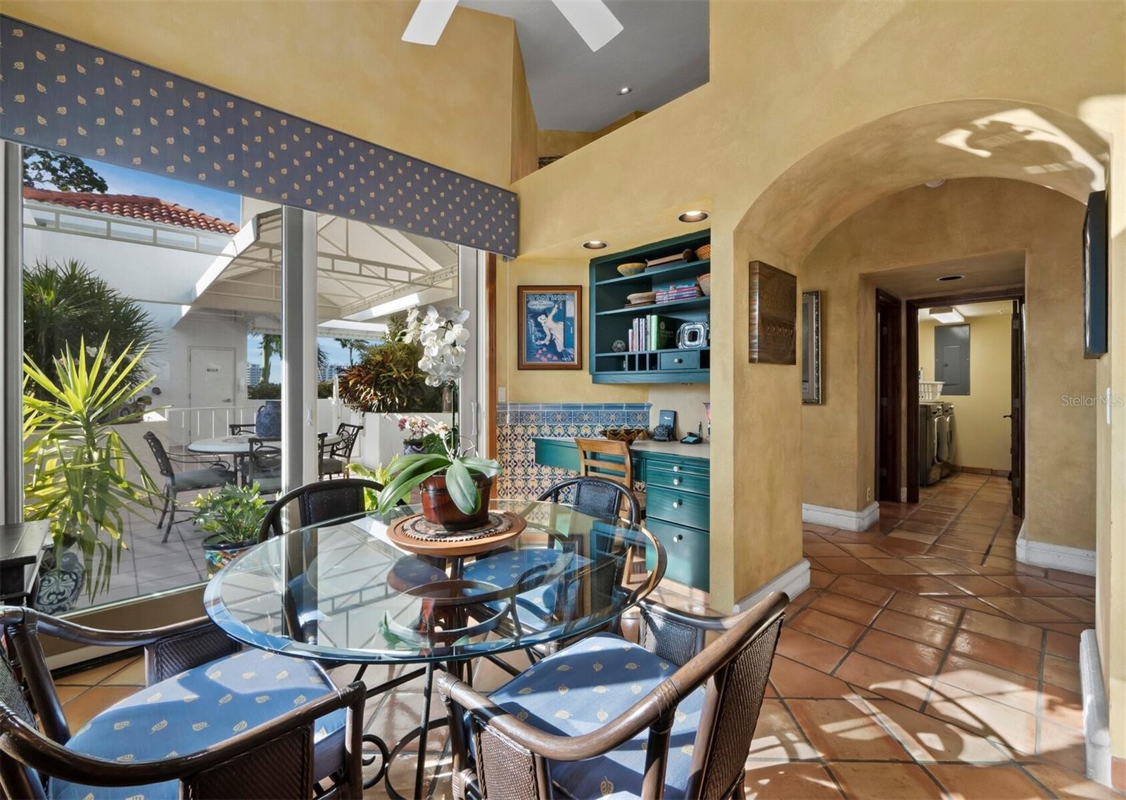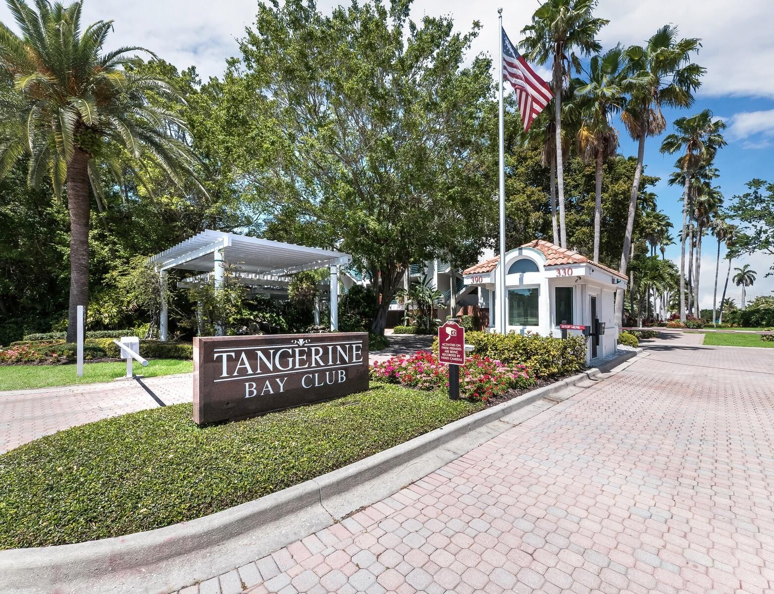 Welcome to this rarely available corner penthouse with its stunning bayfront views artfully framed by the freshly landscaped tropical oasis surrounding the resort-style pool. Boasting nearly 2600 square feet of interior space on two levels, this serene sanctuary offers three terraces plus 3 bedrooms and 3.5 baths (3045 square feet in total). A private courtyard sets the stage for a gracious residence with a warm European feel that lives like a single family home. Relaxed open spaces beckon with soaring ceilings, extra windows in the kitchen and great room (available only in end units), and a gas fireplace. The kitchen features a morning room with built-in desk and an aquarium window over the sink. Sliding glass doors seamlessly connect indoor and outdoor spaces. Mahogany double doors open into the primary suite with its patio access overlooking the bay and lush landscaping, volume ceilings, acacia wood flooring, walk-in and built-in closets and recently renovated luxurious bath. An additional guest bedroom (currently used as a den) with ensuite bath, laundry room and powder room complete the first level. On the second level a spacious third bedroom, office with built-in desk, shelving and storage, and full bath provide additional accommodations for family and friends. The home offers impact windows, plus storm shutters on larger windows for added protection. Enjoy the resort style amenities of Tangerine Bay Club, including a lagoon pool with waterfalls, lap lane and spa, day dock, fishing, kayak launch, tennis and pickleball courts, fitness center, clubhouse, walking paths and tropical landscaping. An oversized garage provides ample space for sports equipment and storage. Owners may join the newly remodeled Bay Isles Beach Club providing access to the Gulf of Mexico for a modest annual fee. Located on Longboat's south end, this gated community is just minutes from the new St. Regis resort and St. Armand's Circle with its shops and fine dining. A short drive over the Ringling Bridge brings the vibrant culture and renowned arts of downtown Sarasota. Optional membership in the Longboat Key Club across the street from TBC offers 45 holes of award winning golf, fine dining and a marina. Come see why Tangerine Bay Club is one of Longboat's most sought after communities and why Forbes named Longboat Key one of the top 25 destinations in 2025.