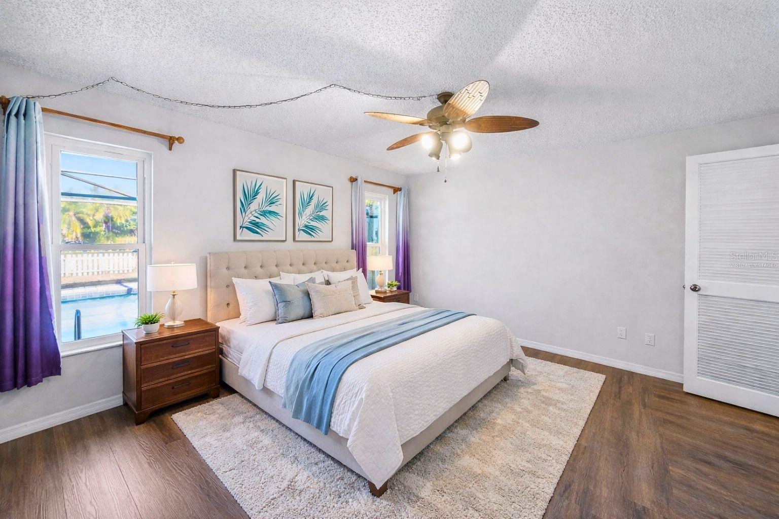 One or more photo(s) has been virtually staged. Welcome to a rare Sarasota retreat tucked away in a quiet cul-de-sac with no HOA, no deed restrictions, and no CDD. This versatile home offers five bedrooms, with one easily functioning as a private office or den, creating the perfect 4-bedroom + office layout for those working from home, needing a flex space, or hosting guests. With the freedom to store your boat, RV, or camper — supported by the dedicated shell parking area already in place — this property offers privacy, space, and endless possibilities for families, entertainers, and outdoor enthusiasts alike. Situated on an oversized lakefront lot, this home delivers the kind of features that are increasingly hard to find — a large, deep swimming pool, tranquil water views, a cozy fireplace, and ample room for future expansion. The backyard is truly a standout. Whether you're hosting gatherings, enjoying the Florida sunshine by the resort-style pool, or relaxing in the screened lanai, the outdoor space is designed for both recreation and tranquility. Inside, the home offers generously sized bedrooms and flexible living spaces, making it ideal for large families, multi-generational living, or those needing home offices, guest rooms, or hobby spaces. The living areas are warm and inviting, anchored by a fireplace that adds charm and comfort year-round. Durable LVP flooring installed in 2021, fresh interior and exterior paint completed in 2025, and abundant natural light create a bright, move-in-ready feel. Energy efficiency and storm protection set this home apart. Hurricane-impact windows and front door, Kevlar hurricane panels for the lanai rated up to 190 MPH, and a solar panel system installed in 2023 help keep utility costs exceptionally low — averaging around $30–$50 month, even during the summer. Additional upgrades include a roof (2014), AC system (2017) with regular maintenance, a whole-home water purification system, and a long warranty on the replacement ceiling fans throughout. The property also features two storage sheds, a converted garage, an 8x25 workshop/storage area, and extensive outdoor space with room to expand, customize, or add future enhancements. Located just minutes from Red Bug Slough Preserve, shopping, dining, and Siesta Key’s world-famous beaches, this property blends privacy, freedom, and the best of Florida lifestyle living in one exceptional package. Homes with this combination of space, land, pool, privacy, and no restrictions are truly rare — schedule your private showing today.