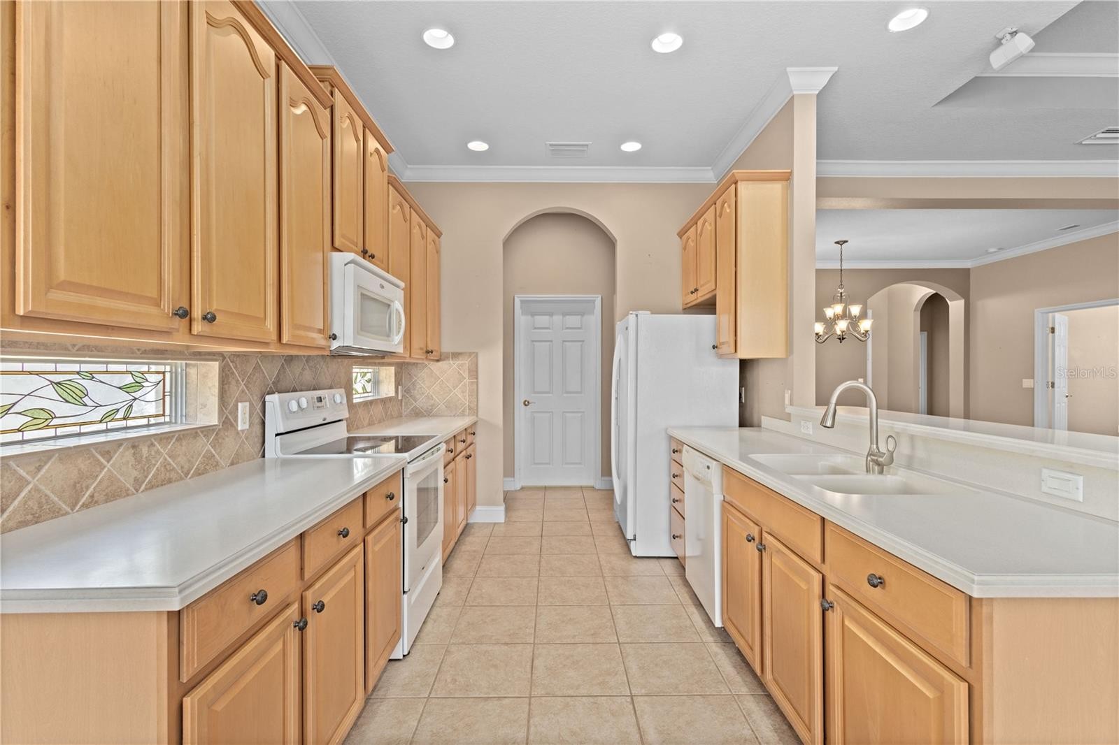 Move-in ready 2-bedroom plus den/study, which can serve as a third bedroom, located in the meticulously maintained Palma Sola Trace community. This home features an open floor plan ideal for entertaining, beginning with a welcoming foyer accented by arched doorways that lead into the spacious great room. The kitchen offers a separate breakfast area, breakfast bar, custom 42-inch maple cabinetry and fixed stained-glass windows above the counters. A butler’s pantry adjacent to the kitchen provides the perfect space for a coffee or wine bar with convenient access to the laundry room and garage. Interior upgrades include newer luxury vinyl plank flooring, crown molding, 6-inch baseboards, tray ceilings in the living room and primary bedroom, plantation shutters, arched doorways, a Ring doorbell and a complete security system with window, door and motion sensors. Bathrooms and kitchen areas feature neutral tile throughout. The screened lanai overlooks tropical landscaping and a creek. You will most certainly enjoy the western sunsets. Palma Sola Trace provides residents with lawn care, an active clubhouse with kitchen, a state-of-the-art fitness center and a playground, and HOA fees include cable and internet. Ideally located just three miles from the beautiful west coast beaches and close to grocery stores, restaurants, medical facilities and Sarasota Airport, this home offers both comfort and convenience.