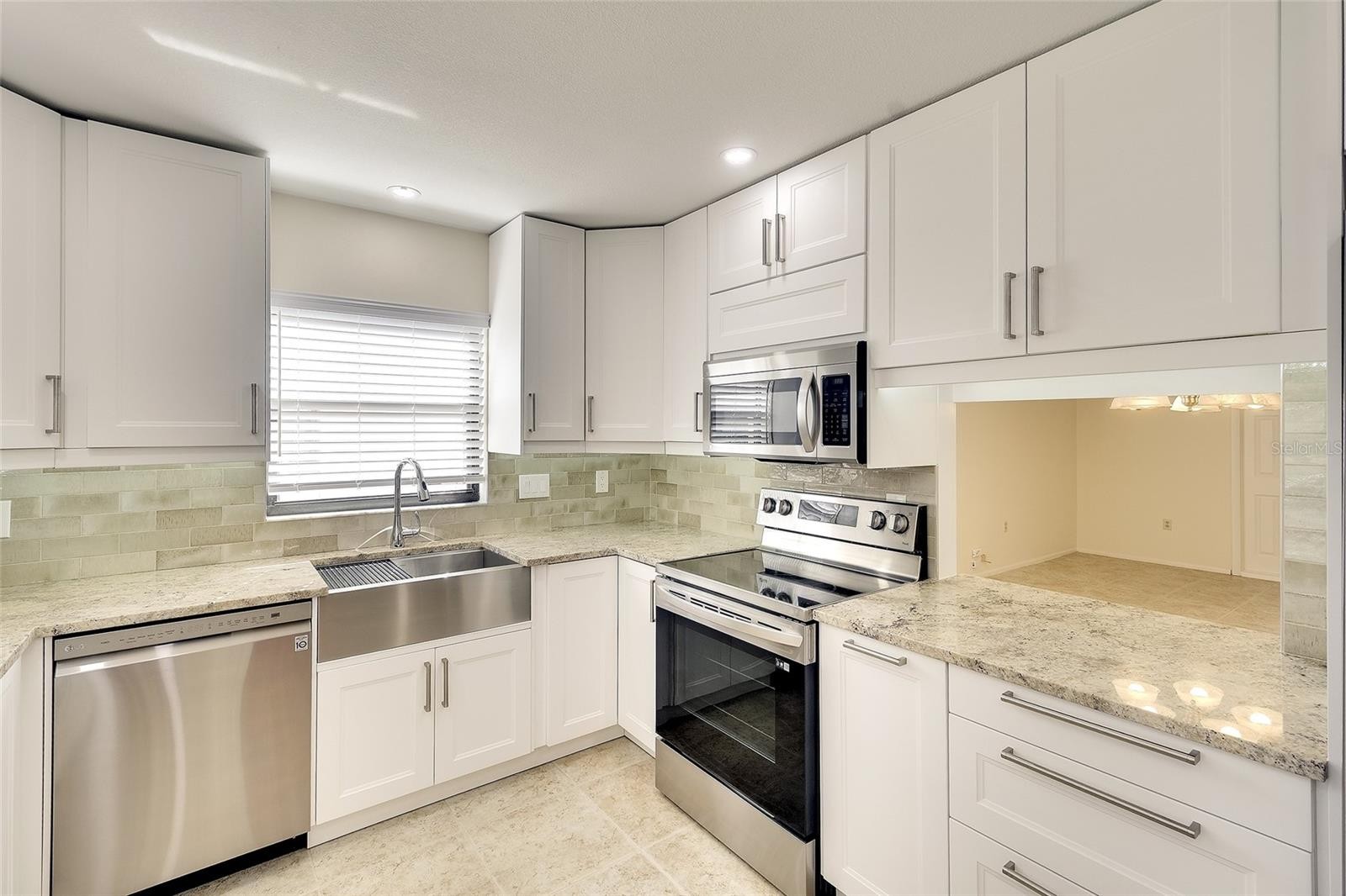 Welcome to Village Oaks—this villa is a show-stopper you have to see to believe. From the moment you step inside, the upgrades and care are unmistakable. The fully remodeled kitchen is a standout, featuring soft-close IKEA cabinetry, drawers, and pantry with under-cabinet lighting, sleek LG stainless steel appliances, an oversized stainless sink with disposal, and granite countertops with a neutral backsplash—a spacious, functional design made for anyone who loves to cook and entertain. Throughout the villa, 2-inch wooden blinds dress every window, and the entire home is tiled, professionally cleaned, sealed, and ready for worry-free living. The front guest bedroom offers a walk-in closet, while the remodel guest bath includes an easy-access step-in shower. A full-size Samsung front-load washer and dryer are neatly tucked into the laundry closet for convenience. At the rear of the home, the primary suite impresses with a generous walk-in closet and a spa-like bath featuring a large shower, double sinks, granite countertops, decorative lighting, and a built-in medicine cabinet. The bonus sunroom is a true flex space—perfect for a home office, hobby room, or even an extra bedroom (just add an armoire). Flooded with natural light, it’s finished with double French doors and a private exit for your favorite pet. Recent updates add peace of mind: Garage floor pressure washed and walls freshly painted (Jan 2026) Front screened porch pressure washed with new carpet (Jan 2026) Hot water heater replaced Sept 2019, and the lifestyle? Unbeatable. Enjoy the heated community pool, active social events, and an exceptional location—about two miles to I-75 and just 7.5 miles to Lido Key. Shopping, dining, and Sarasota’s vibrant arts scene are all minutes away. This is the kind of villa that doesn’t stay on the market—schedule your showing before someone else claims it.