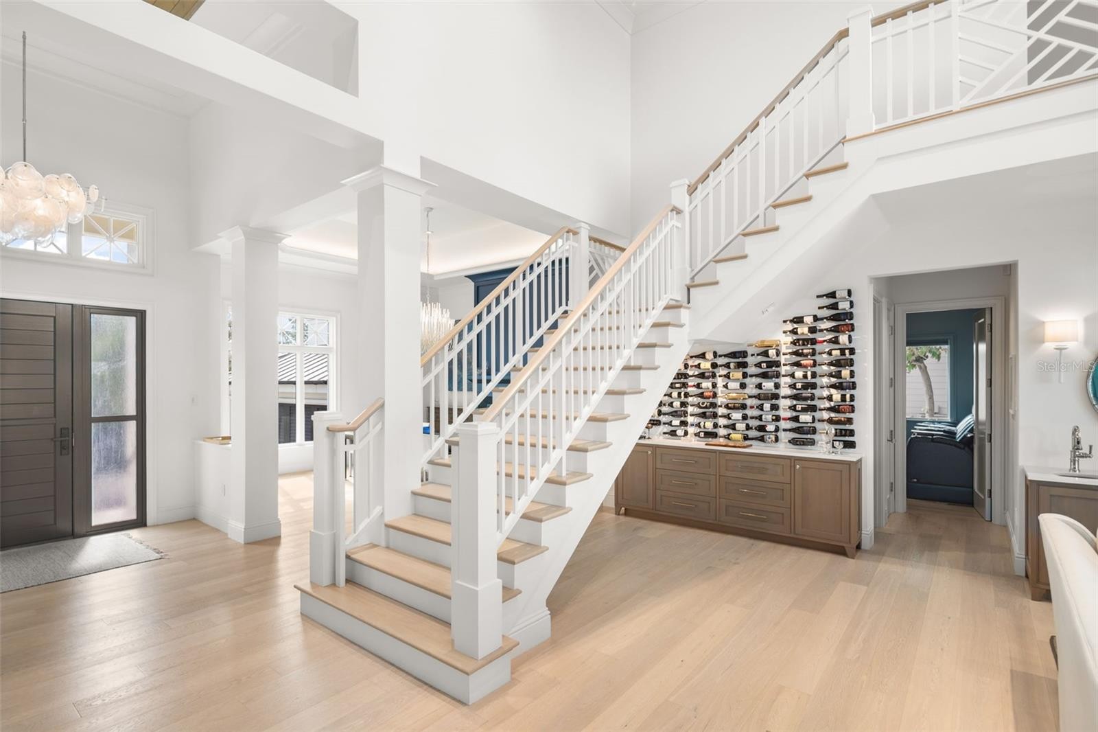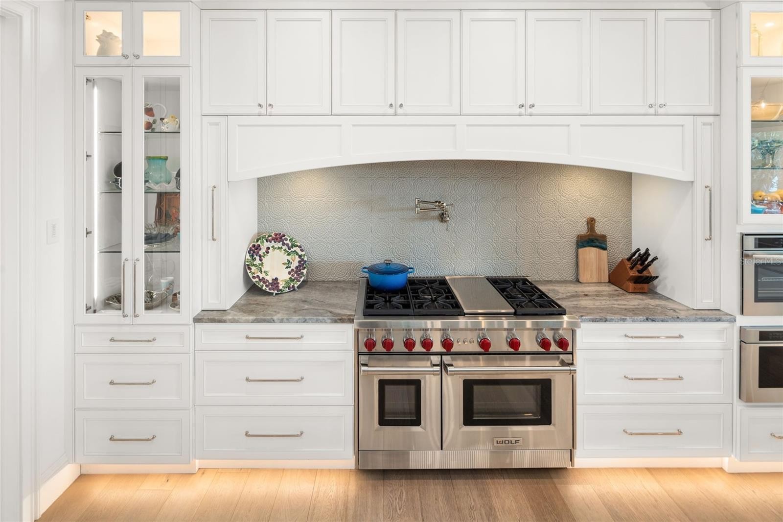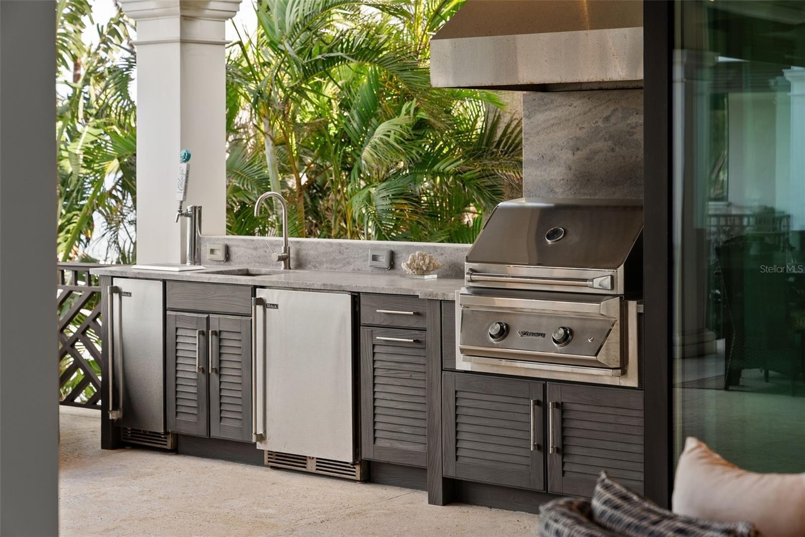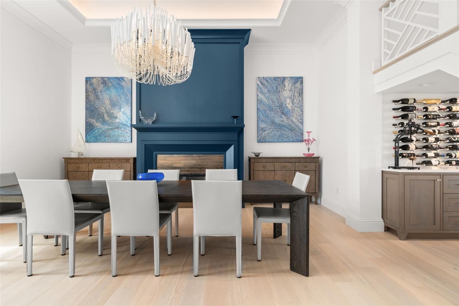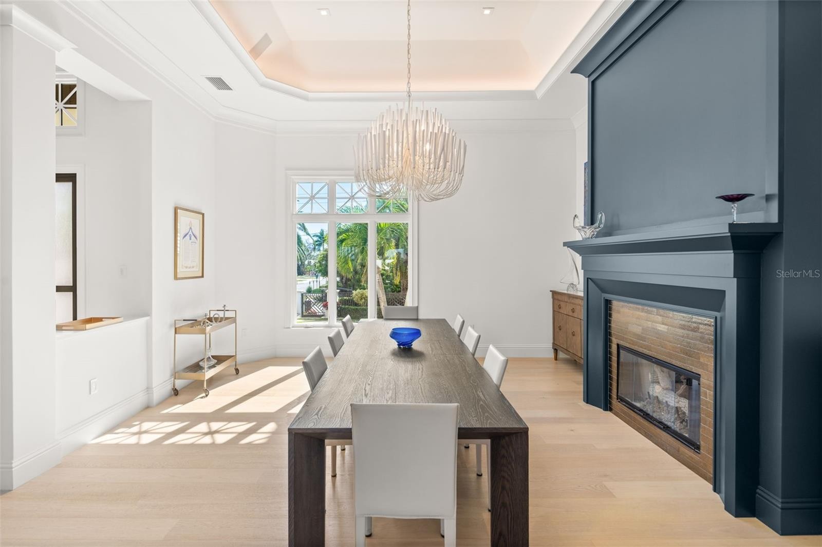 A stunning, fully reimagined coastal residence where elevated design meets modern functionality. Rebuilt to the studs and thoughtfully curated throughout, this expansive home showcases exceptional craftsmanship, custom finishes, and seamless indoor-outdoor living—all in a premier location just moments from the pristine Gulf beaches and the world-class shopping and dining of St. Armands Circle. Inside, light-filled interiors feature level 5 smooth walls, engineered hardwood floors, custom coffered ceilings, and extensive crown molding. The main living areas are anchored by two striking gas fireplaces with imported designer tile, while bifold and accordion glass doors open to expansive terraces, creating effortless flow for entertaining. The chef’s kitchen is a true showpiece with leathered granite countertops, a large island with bar seating, and top-tier appliances including a Wolf 6-burner gas range, Sub-Zero refrigerator, Miele built-in coffee system, dual dishwashers, and JennAir convection/steam oven. Custom cabinetry and a walk-in pantry complete the space. Designed for both relaxation and entertaining, the home features a private movie theater with Sony projection, B&W surround sound, and Octane seating, along with a game room, multiple office spaces, wet bar, and a 72-bottle wine display. The primary suite offers a private retreat with terrace access, tray ceiling, and a spa-like bath with marble floors, soaking tub, dual vanities, and a walk-in shower. Upstairs bedrooms feature ensuite or Jack-and-Jill baths. Smart features include electric shades, Sonos audio & Lutron Homeworks, central vacuum, and elevator access. Outdoor living shines with a resort-style saltwater pool and spa, waterfall, sun shelf, and integrated audio. The main terrace includes a gas grill, beverage fridge, beer tap, and firepit, with additional upper-level terraces & spectacular water views from every level. Boaters will appreciate the private dock with a 10,000 lb lift, dual jet ski lifts, and the rare ability to accommodate a 64-foot yacht. Additional highlights include impact windows and doors, Tesla charger, epoxy garage floors, and tankless water heaters. This exceptional property blends luxury, technology, and coastal living just moments from the best of Sarasota.