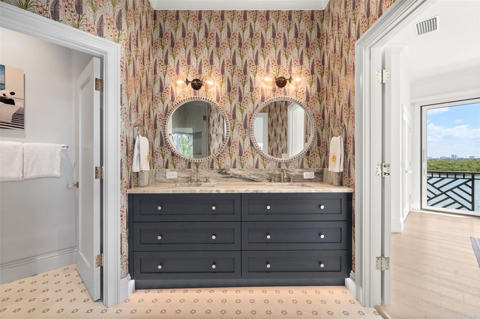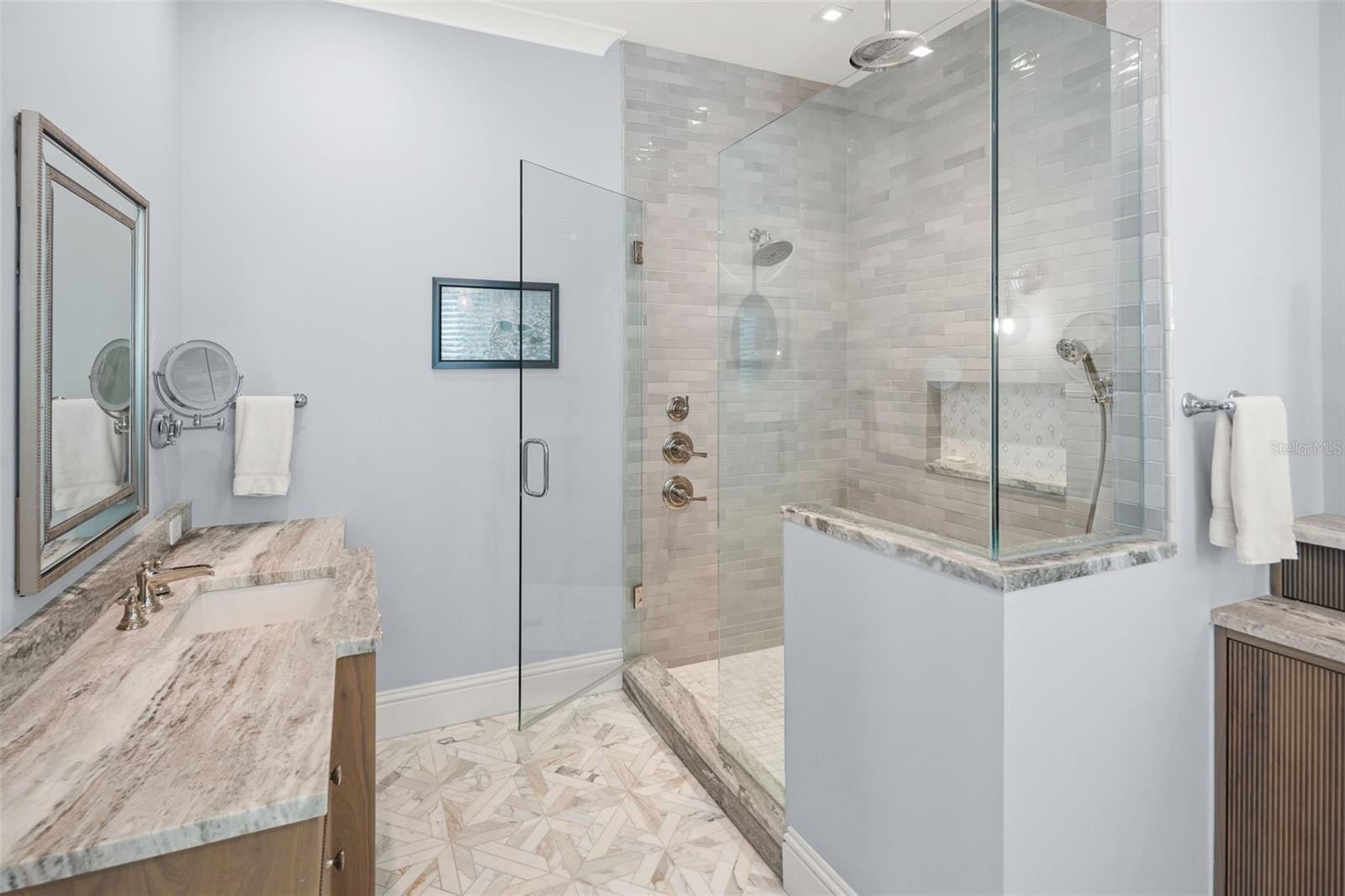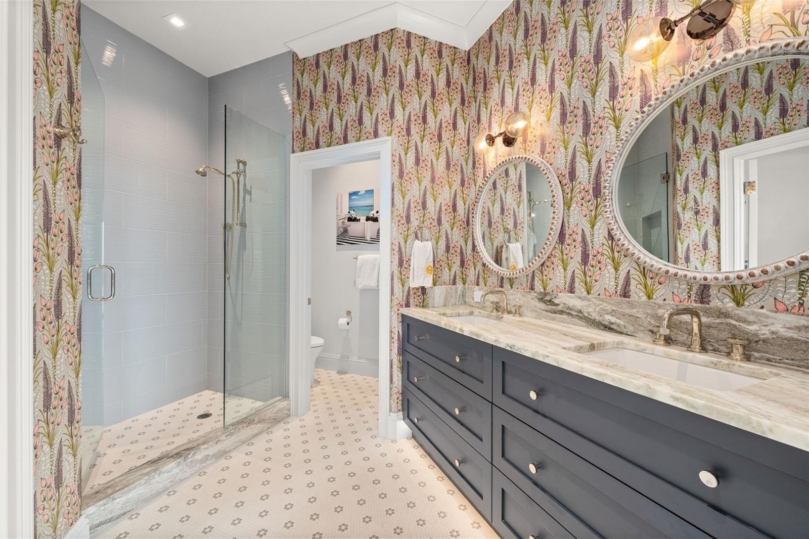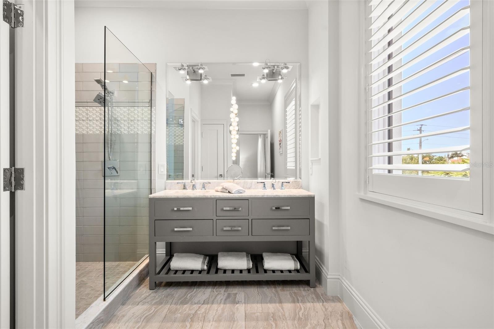 A stunning, fully reimagined coastal residence where elevated design meets modern functionality. Rebuilt to the studs and thoughtfully curated throughout, this expansive home showcases exceptional craftsmanship, custom finishes, and seamless indoor-outdoor living—all in a premier location just moments from the pristine Gulf beaches and the world-class shopping and dining of St. Armands Circle. Inside, light-filled interiors feature level 5 smooth walls, engineered hardwood floors, custom coffered ceilings, and extensive crown molding. The main living areas are anchored by two striking gas fireplaces with imported designer tile, while bifold and accordion glass doors open to expansive terraces, creating effortless flow for entertaining. The chef’s kitchen is a true showpiece with leathered granite countertops, a large island with bar seating, and top-tier appliances including a Wolf 6-burner gas range, Sub-Zero refrigerator, Miele built-in coffee system, dual dishwashers, and JennAir convection/steam oven. Custom cabinetry and a walk-in pantry complete the space. Designed for both relaxation and entertaining, the home features a private movie theater with Sony projection, B&W surround sound, and Octane seating, along with a game room, multiple office spaces, wet bar, and a 72-bottle wine display. The primary suite offers a private retreat with terrace access, tray ceiling, and a spa-like bath with marble floors, soaking tub, dual vanities, and a walk-in shower. Upstairs bedrooms feature ensuite or Jack-and-Jill baths. Smart features include electric shades, Sonos audio & Lutron Homeworks, central vacuum, and elevator access. Outdoor living shines with a resort-style saltwater pool and spa, waterfall, sun shelf, and integrated audio. The main terrace includes a gas grill, beverage fridge, beer tap, and firepit, with additional upper-level terraces & spectacular water views from every level. Boaters will appreciate the private dock with a 10,000 lb lift, dual jet ski lifts, and the rare ability to accommodate a 64-foot yacht. Additional highlights include impact windows and doors, Tesla charger, epoxy garage floors, and tankless water heaters. This exceptional property blends luxury, technology, and coastal living just moments from the best of Sarasota.