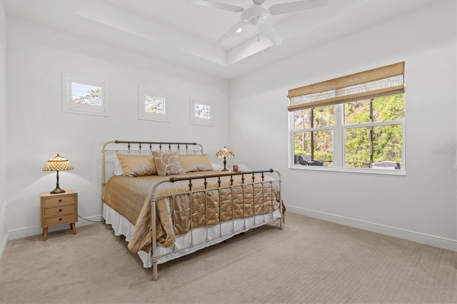 Experience a rare sense of privacy surrounded by tranquil nature as you unwind in your resort-style pool and spa on an expansive lanai designed for elevated outdoor living. This is your opportunity to live on the highly sought-after Ocean Blue Cove within Indigo. Nestled on an oversized cul-de-sac lot, this nearly new home offers modern Florida living in a serene setting. Built just three years ago, the open-concept design features a spacious great room with coffered ceilings, tile flooring throughout the main areas, and a seamless flow into a gourmet kitchen complete with a gas range, stacked microwave/oven, custom backsplash, quartz countertops, and upgraded finishes. The primary suite is a true retreat, showcasing coffered ceilings, an oversized bedroom, and a spa-inspired bath with dual sinks, a floor-to-ceiling tiled walk-in shower, and private water closet. Two additional bedrooms, a beautifully appointed guest bath, and a versatile den/office provide flexible living options. Additional highlights include hurricane impact windows, an extended epoxy-coated garage with built-in storage, and meticulously maintained upgrades throughout. Don’t miss your opportunity to own this exceptional property in one of the area’s most desirable communities.