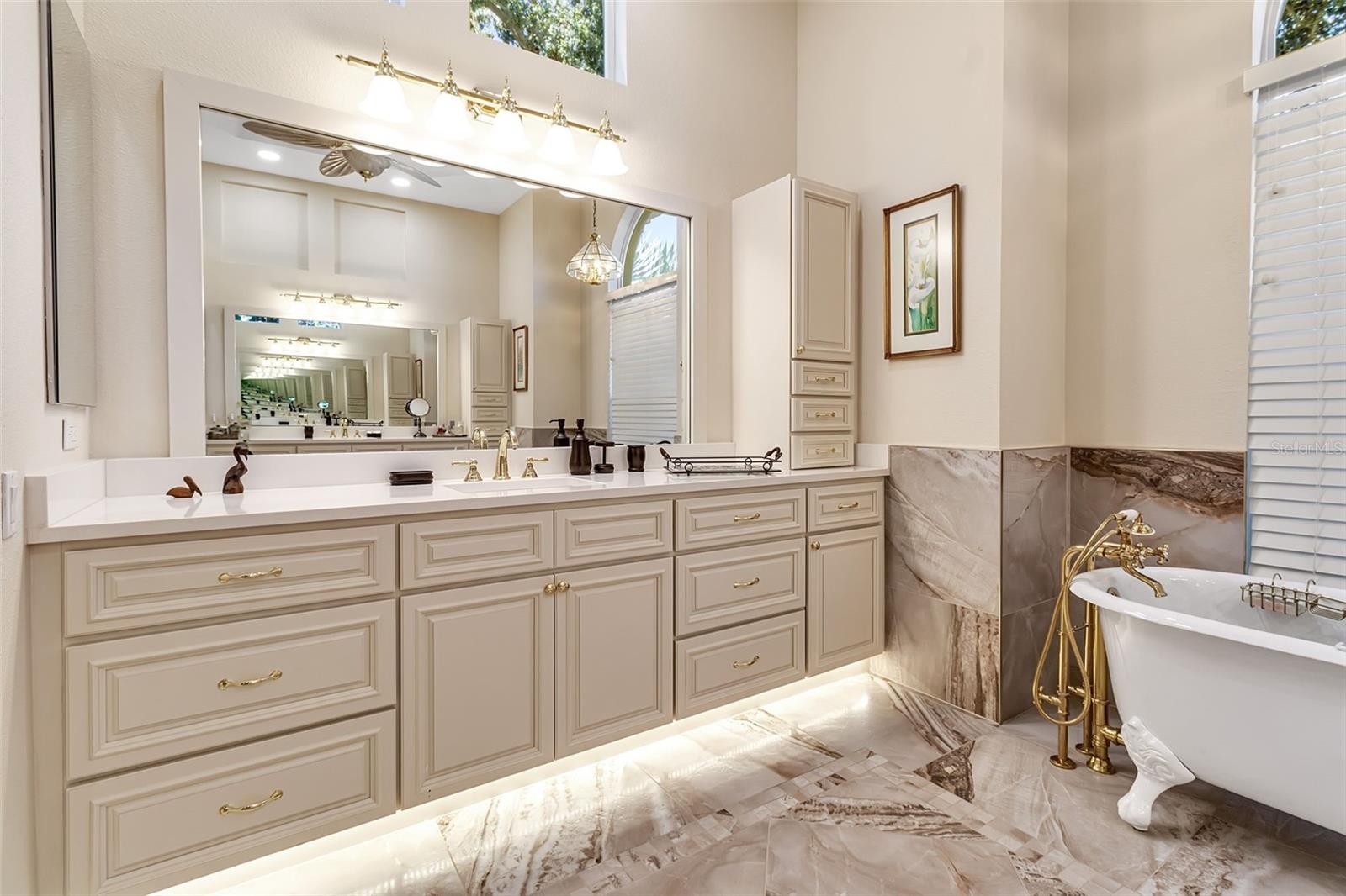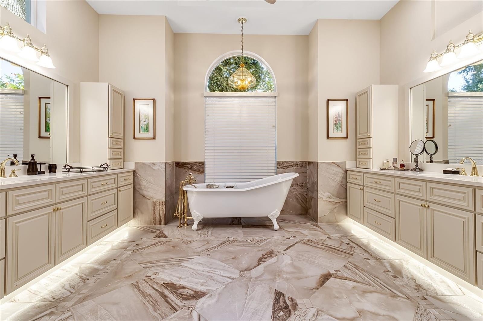 Experience luxury living in this beautifully appointed traditional home featuring 4 bedrooms, 3.5 bathrooms, and a dedicated office. The formal living room offers a fireplace and French doors, allowing separation from the kitchen and family room for more intimate gatherings. The spacious master suite includes two walk-in closets with custom built-ins, a sitting area, and a spa-inspired bath with dual vanities, soaking tub, and separate shower. Guests enjoy privacy in an en suite bedroom with direct pool access, while two additional bedrooms share a conveniently located third bath. A three-car garage provides ample space for vehicles and hobbies, complete with a workspace, overhead storage, and cabinets. Ideally positioned as the closest residence to the clubhouse on MacEwen, the home overlooks the 2nd and 3rd holes of the Eagle Course. Manicured landscaping offers complete privacy. Beyond are breathtaking golf course and lake views. Outdoor living features an expansive pool deck, screened lanai, fully updated outdoor kitchen, and a charming open-air patio. The renovated kitchen opens to the family room and includes a breakfast nook with aquarium window offering pool views, plus a formal dining room and breakfast bar for flexible entertaining. This exceptional home combines privacy, comfort, and a prime location for the ultimate country club lifestyle. Membership in The Oaks Club is required. The Oaks Club, Sarasota’s premiere golf and country club, has two champion 18-hole golf courses, twelve HAR-TRU tennis courts (4 lighted), four pickleball courts, an over 7,500 square foot state-of-the-art WellFit Center, an award-winning culinary team, and robust activities and social calendars. Club membership is required with homeownership.