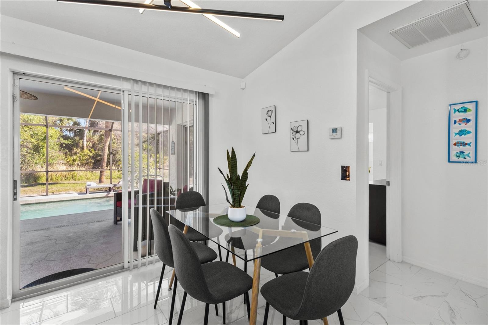 Available 4/3/2026. Beautifully furnished 2–3 bedroom, 2-bath pool home located in a quiet and walkable North Port neighborhood off N. Salford Blvd, convenient to nearby shopping along Price Blvd and US-41, I-75, and Gulf beaches. Designed for comfortable Florida living, this inviting home features polished white marble-look tile flooring throughout and a bright, open layout. Sliding doors open to a screened lanai and solar-heated pool overlooking a private backyard with natural landscaping and no rear neighbors. The flexible third bedroom with closet and barn doors works well as a guest bedroom or home office. Additional features include a two-car garage, full-size washer and dryer, alarm system, high-speed internet, and generator for backup power. Lawn and pool service are included and tenant pays electric. Available monthly or longer term. Seasonal rates are $5,500 per month December through April with a three-month minimum and $3,200 per month May through November; off season price is for 1 month, with rates negotiable for longer stays. A 13% tax applies to leases under six months, with no tax on longer leases. Non-smoking property. Pets considered with approval; fees or deposits may apply.