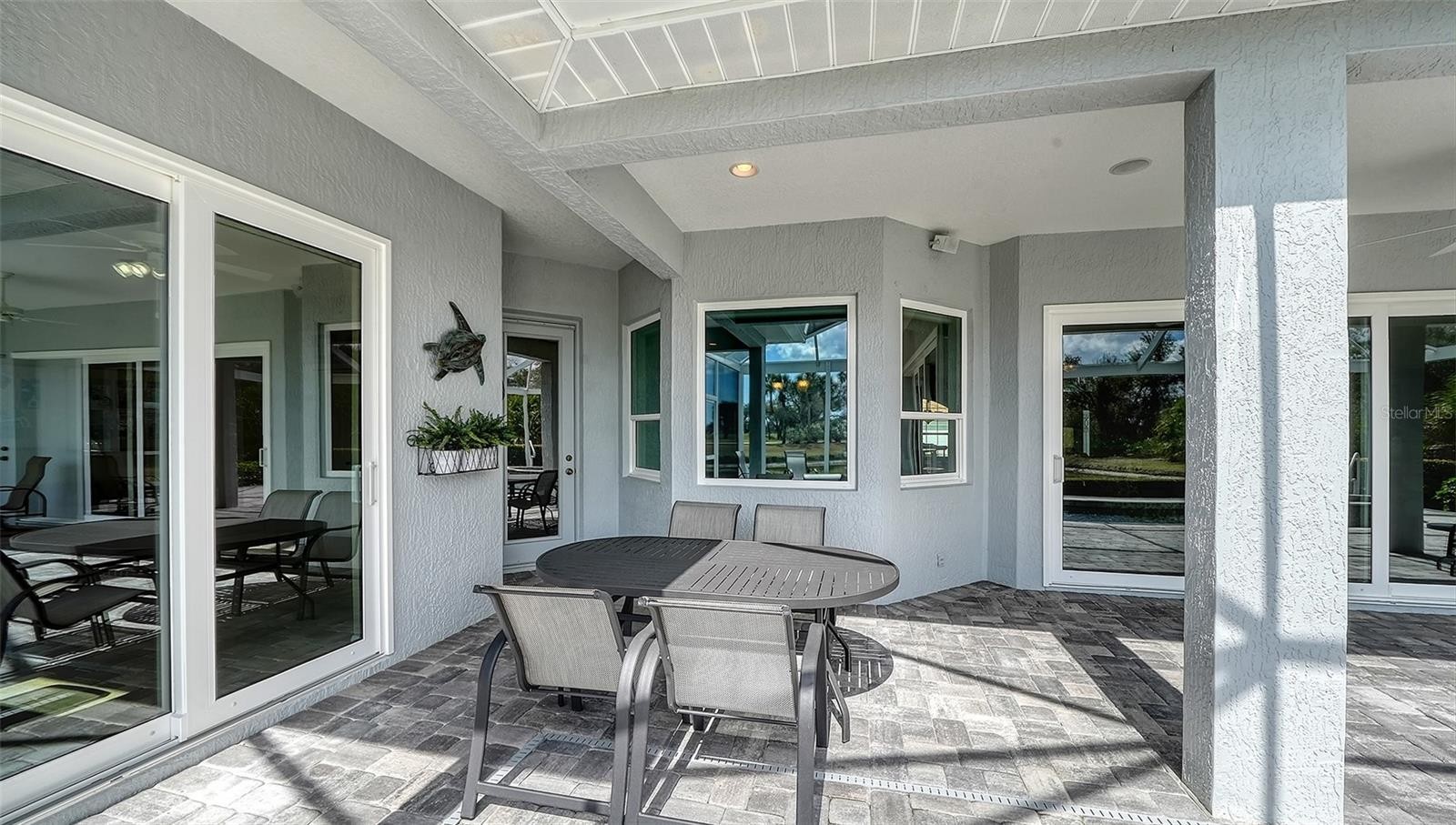 Welcome to this beautiful Siesta home with lake views, where comfort, efficiency, and classic Florida outdoor living come together. Thoughtfully upgraded throughout, the residence is as practical as it is inviting. Impact-resistant windows and sliding glass doors provide added protection and peace of mind, while a Tesla Powerwall solar energy system with storage batteries offers impressive energy savings and reliable backup power. Recent improvements include a 2020 roof replacement, a newly pavered driveway and walkway with step-free access to the front door, a whole-house water softener system, and a reverse osmosis system in the kitchen. Inside, the open floor plan creates a welcoming flow between the spacious living and dining areas. You will find beautifully updated kitchen and bathrooms, porcelain tile flooring, and high ceilings with crown molding. The kitchen features custom cabinetry with spice racks, pull-out shelves and pantry storage, along with granite countertops and a charming dinette by the windows, perfect for enjoying the peaceful lake view. The generously sized primary suite offers a private retreat with tastefully updated bathroom finishes and ample closet space. The two-bedroom guest suite provides comfort and flexibility, with sliding glass doors in the rear bedroom opening directly to the lanai. An additional hallway door allows convenient access to the bathroom and kitchen from the pool area. Designed for year-round enjoyment, the outdoor living space is truly exceptional. The pavered lanai is fitted with heavy-duty scenic view screens that provide comfort and privacy while preserving the beautiful view. Enjoy a refreshing swim in the heated pool, relax in the spa, or entertain effortlessly with the outdoor grill kitchen. Car enthusiasts and hobbyists will appreciate the spacious two-car plus golf cart garage, finished with a durable urethane coating for long-lasting performance and easy maintenance. With premium features, extensive upgrades, and a desirable cul-de-sac location, this exceptional Siesta home offers the very best of Florida living. Pelican Pointe is an award-winning gated community with a reasonable HOA fee that includes maintenance-free lawn care and irrigation, cable TV and internet package, and a social membership to enjoy the full-service clubhouse with restaurant and bar, heated lap pool, tennis and pickleball courts, fitness room, events and activities. A 27-hole championship golf course meanders through scenic preserves and lakes. Golf memberships are available but not required. Don't miss out on this wonderful home!