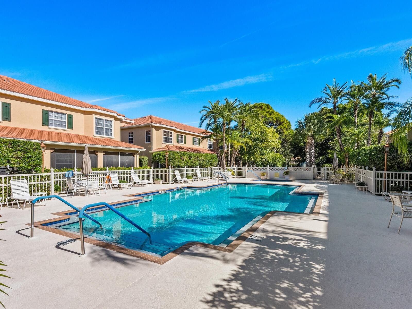 Well-maintained and beautifully designed, this spacious 3-bedroom elevated condo lives like a single-family home, featuring high ceilings and an open, airy floor plan throughout. The living & dining areas flow seamlessly into the family room and breakfast area, all centered around an open kitchen that is easily accessible. The generous sized primary suite offers tray ceilings and a large sitting area with serene park-like views. Oversized, multiply closets provide no less than 11 feet of double-hanging space, multiple shelving levels, and a separate shoe closet. The sun-filled primary bath includes a water closet, step-in tub, separate shower, dual sinks, plus private utility closet. The spacious guest suite features its own private bath & closet, offering comfort and privacy for visitors. The third bedroom is currently used as a home office, providing flexible living space to suit a variety of needs. The ground level features an oversized garage with 11’ of linear storage, separate workroom with workbench, refrigerator, additional storage area, and direct elevator access. The garage is also equipped with 220V service for electric vehicle charging. Enjoy true indoor-outdoor living on the 19’ screened lanai, accessible from the primary suite, guest suite, & family room. Relax on the porch swing while overlooking the tranquil pond with fountain and lush landscaping. The Square West community amenities include a pavilion for social gatherings, pool & spa, making this well-maintained neighborhood a peaceful and enjoyable place to call home.