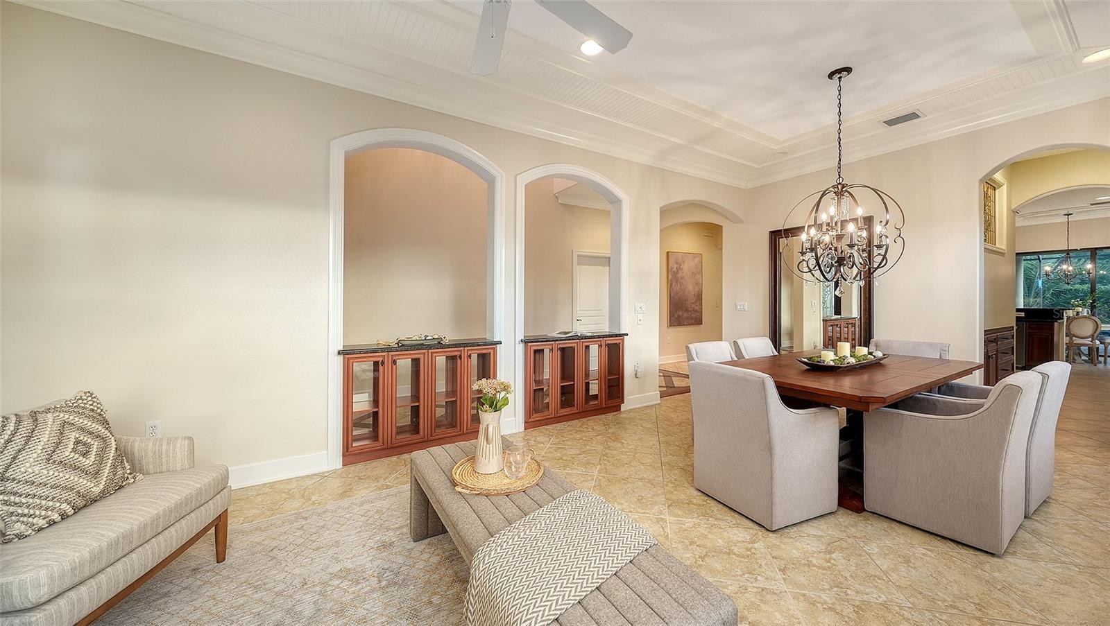 Welcome to one of the most distinctive homes in The Residences at University Groves — a builder’s model home thoughtfully designed with upgraded finishes and architectural details rarely found in comparable homes. Offering nearly 3,000 square feet of living space, this residence is among the larger homes in the community and showcases the enhanced craftsmanship and design features typically reserved for showcase model properties. Recently freshly painted and meticulously maintained, the home is bright, current, and completely move-in ready.From the moment you enter, the home reveals the design touches that set a model residence apart: soaring ceilings, generous living spaces, and elegant architectural details that create a sense of openness and sophistication. The floor plan flows seamlessly between the main living areas, making the home ideal for both everyday living and entertaining. The kitchen serves as the heart of the home, with abundant cabinetry, generous workspace, and easy connection to the surrounding living and gathering areas. Whether hosting guests or enjoying quiet evenings at home, the layout supports a comfortable Florida lifestyle. The primary suite provides a spacious private retreat, while the additional bedrooms offer flexibility for guests, home offices, or extended family. Each room benefits from the thoughtful design and upgrades typically included in a builder’s model home. Situated on a generous .27-acre homesite, the property offers both space and privacy within a peaceful residential setting. Mature landscaping enhances the outdoor environment, creating an inviting backdrop for enjoying Sarasota’s year-round sunshine. The location offers exceptional convenience, placing residents just minutes from: University Town Center (UTC) shopping and dining, Sarasota-Bradenton International Airport (SRQ), Downtown Sarasota’s cultural district, Lakewood Ranch, World-renowned Gulf Coast beaches. Homes with this level of space, upgraded design, and location in the University corridor are increasingly difficult to find. For buyers seeking a move-in-ready Sarasota home with model-home upgrades and exceptional square footage, this property represents a compelling opportunity