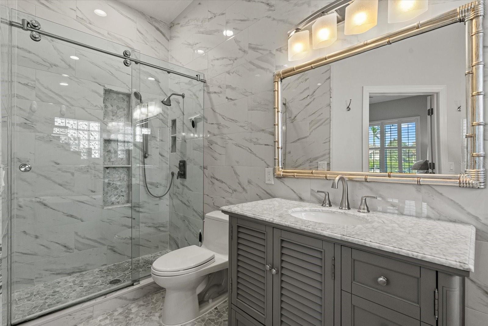 Experience the true Florida lifestyle in this luxurious, completely renovated waterfront home on a saltwater canal in the exclusive River Point community- a premier boating neighborhood offering direct Gulf access, no fixed bridges, and no restrictions. Nestled on a private, dead-end street at a high elevation, this property provides both tranquility and peace of mind, complete with a private saltwater dock and lift- perfect for boating, fishing, paddle-boarding, and endless waterfront adventures. Completely renovated in 2021, this home exudes sophistication and craftsmanship at every turn. The gourmet chef’s kitchen is a showpiece, featuring custom cabinetry, quartzite stone countertops, an oversized Sub-Zero refrigerator, a 36-inch Wolf gas stove, and an expansive island perfect for gathering and entertaining. The laundry room offers floor-to-ceiling custom cabinetry, adding both elegance and functionality. The primary suite provides a serene escape with direct lanai access, a spa-inspired ensuite adorned with marble finishes and high-end fixtures, and ample closet space. Throughout the home, impact-rated windows and sliding glass doors invite natural light and stunning views while ensuring security and energy efficiency. Step outside to a tropical oasis designed for relaxation and entertaining. The spacious lanai features a refinished spool (2022), an outdoor kitchen with a built-in gas grill and separate side burner (2022), and plenty of room to lounge or dine outdoors. The epoxy-coated garage floors add a polished touch, while the whole-house Generac generator (2021)-powered by gas, ensures uninterrupted comfort even during storms. A brand-new roof (Spring 2024) and new furnace (2021) offer additional peace of mind. Ideally located just minutes from I-75, this home provides quick access to Sarasota, St. Petersburg, and Tampa. You’re also a short drive from award-winning Gulf Coast beaches, historic Downtown Bradenton, fine dining, shopping, and top-rated schools. This is more than a home- it’s a lifestyle of luxury, comfort, and coastal elegance. Whether you’re unwinding in your spool, entertaining under the lanai, or setting out for a day on the water, this boater’s paradise captures the essence of Florida living at its finest.