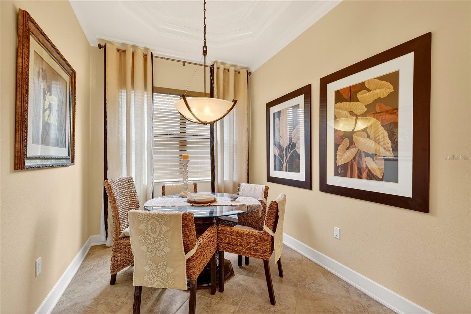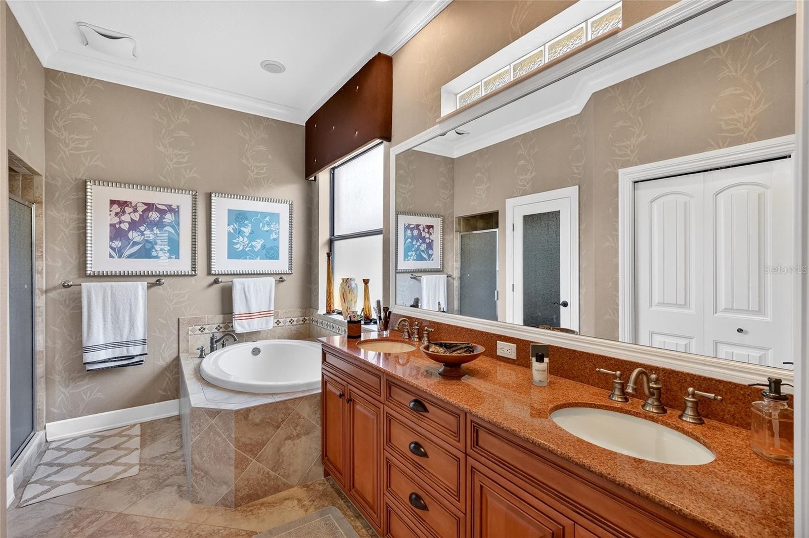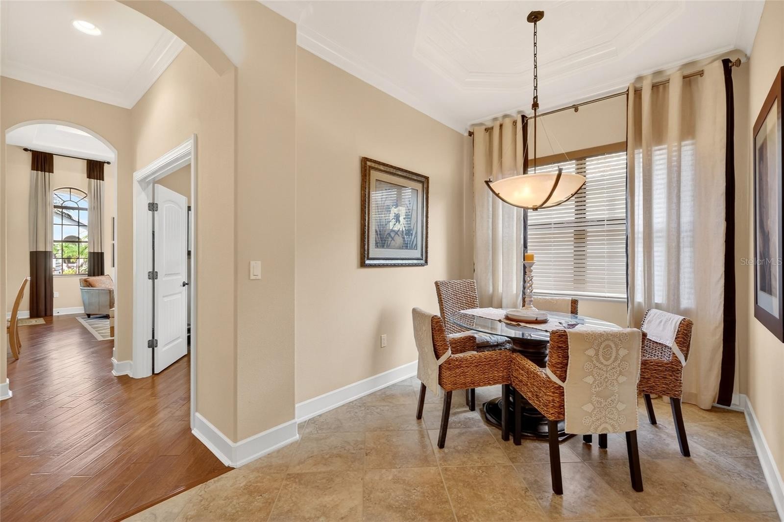 This elegant Mediterranean style former model home will captivate you from the moment you arrive! Meticulously maintained and freshly updated with a newly repainted exterior, this 3-bedroom, 2-bath pool home is situated on a stunning landscaped lot with a private, expansive backyard, perfectly designed to embrace the best of Florida outdoor living while offering refined style and comfort throughout. The curb appeal is striking with its Italian-inspired elevation, ceramic barrel tile roof, pavered driveway, & inviting front porch that sets the stage for the elegance inside. Step through the entryway into the formal living and dining room, highlighted by soaring tray ceilings with a decorative inset pattern, accent walls framed by beautiful columns, & stunning Brazilian hardwood floors that nicely warm up this space. Just beyond, a versatile den with impressive double-door entry functions well as a home office and features a beautiful built-in wall unit flanked by beautiful bookcases and drawers. Nearby is the breakfast nook, which effortlessly accommodates both everyday dining and upscale gatherings with its beautiful tray ceiling. Overlooking the Great Room is the kitchen, featuring beautiful staggered cabinets accented with decorative crown molding, granite countertops with convenient center prep island, stainless appliances including natural gas range, dedicated pantry, and elevated breakfast bar to provide additional seating. A triple slider off the great room leads you to the crown jewel of the home...the magnificent, screened-in lanai and saltwater pool with BRAND NEW (2025) pool pump & filter, highlighted by a cascading waterfall bubbler. Southern-facing views, privacy hedging, and a generous backyard beyond the pool come together to create an outdoor setting that feels both private and expansive. In-ceiling speakers throughout the home, including the lanai, provide flexible, independent control for an immersive audio experience both indoors and out. Back inside, the Primary Retreat makes a lasting impression with its soaring ceiling and full-lite glass door opening directly to the lanai, creating a seamless connection to the outdoors. Your Primary Bath includes extended vanity with double sinks, walk-in shower, soaking garden tub, & generously sized walk-in closet. Two additional bedrooms are thoughtfully positioned down a hallway off the Great Room with a shared hall bath, and one of the bedrooms even offers its own full-lite door to the lanai for added flexibility. A spacious utility room across from the flex room includes washer, gas dryer, upper & lower cabinets, and convenient utility sink. Other notable features include: BRAND NEW Roof (2025); BRAND NEW Carrier A/C w UV filtration (2025); BRAND NEW Smart My-Q Garage Door Opener & Garage Door Springs; Impact windows throughout; Custom window treatments; Pull-down stairs to attic; Landscaping lighting; Tankless gas water heater; Irrigation system; Rain gutters & more! Residents of the maintenance-free The Residences at University Groves community are primely situated in Sarasota, just a short drive to shopping, dining, & entertainment including UTC Mall & SRQ International Airport; 20 minutes to St. Armand's Circle; 30 minutes to award-winning Siesta Key Beach; and quick & easy access to I-75.