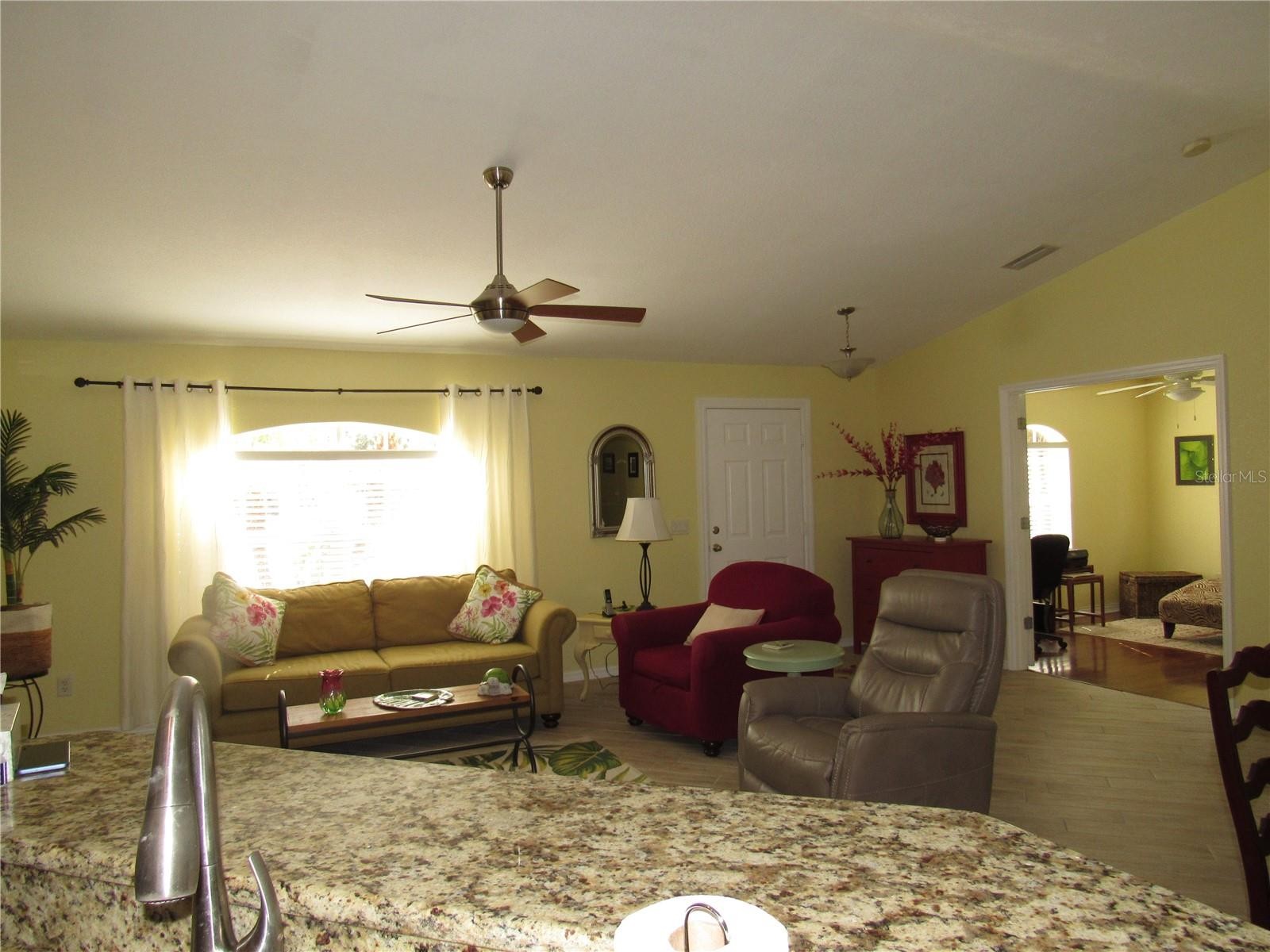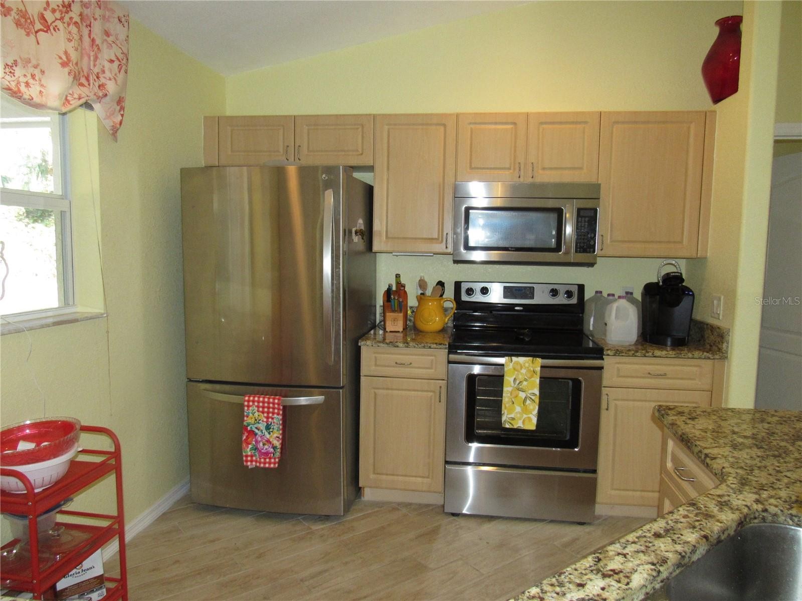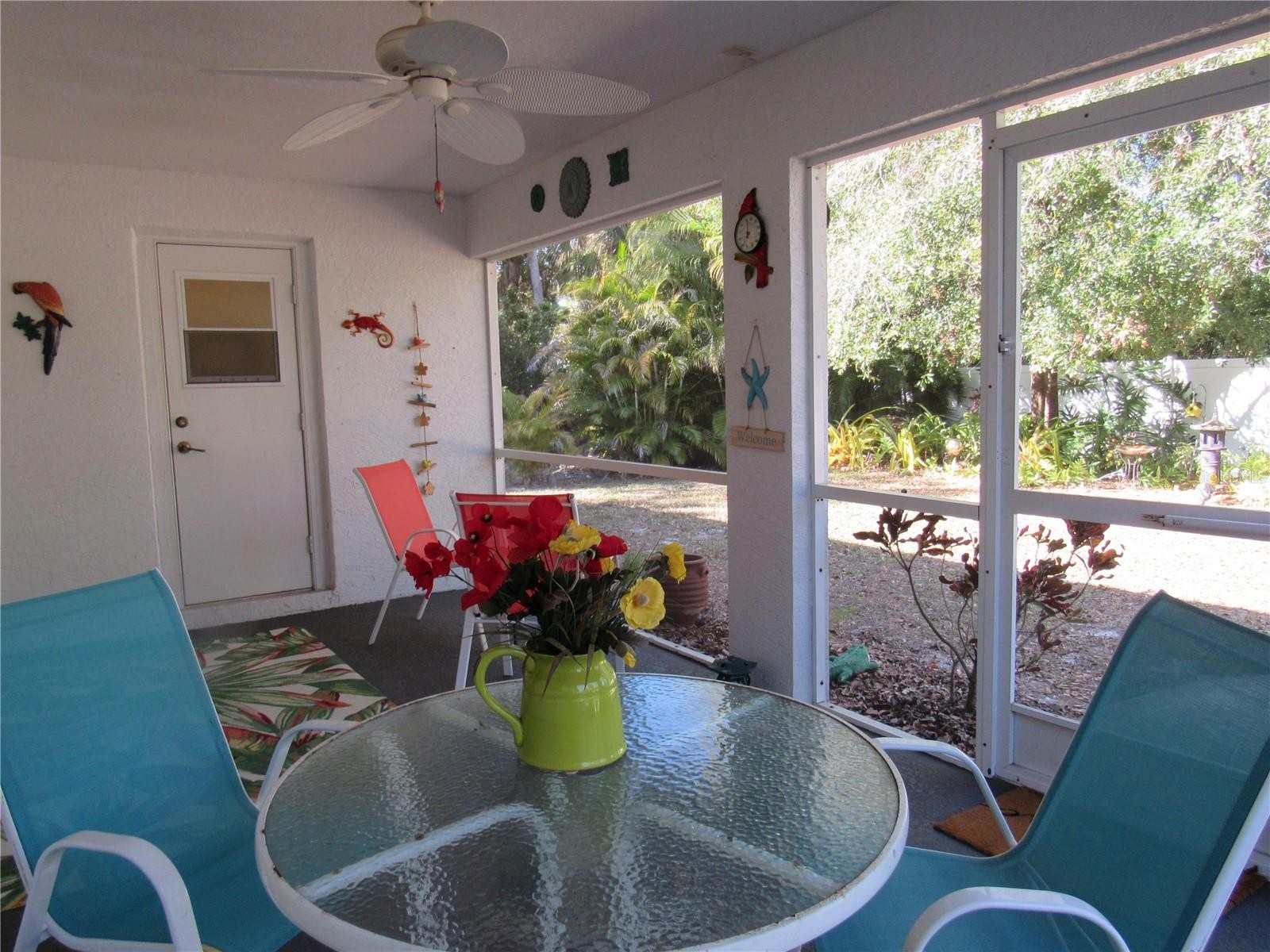 Discover this meticulously maintained 3-bedroom, 2-bath home with a den/office, offering exceptional space and comfort. Situated on nearly half an acre with the adjacent lot included, this property provides added privacy and room to grow. The beautifully decorated interior features vaulted ceilings and an open, split floorplan that lives larger than its 1,562 sq ft. Porcelain wood-look tile flows through the main living areas, kitchen, baths, and primary bedroom, while the versatile bonus room—complete with French doors—offers newer laminate flooring. Perfect for entertaining, the home includes French doors from the dining area to the 19×10 lanai, plus a convenient pool bath access door from the guest bathroom. The partially fenced backyard offers ample space for a future pool. The kitchen is well-appointed with stainless steel appliances, granite countertops, a breakfast bar, and pantry. The primary ensuite bedroom features a generous walk-in closet and a tiled step-in shower with glass doors. Major updates include a new roof in 2023 and HVAC system in 2018. Located in Flood Zone X (no required flood insurance) and with no HOA fees, this home offers peace of mind and flexibility. All of this is set in North Port, one of the fastest-growing cities in the nation. Schedule your private showing today.