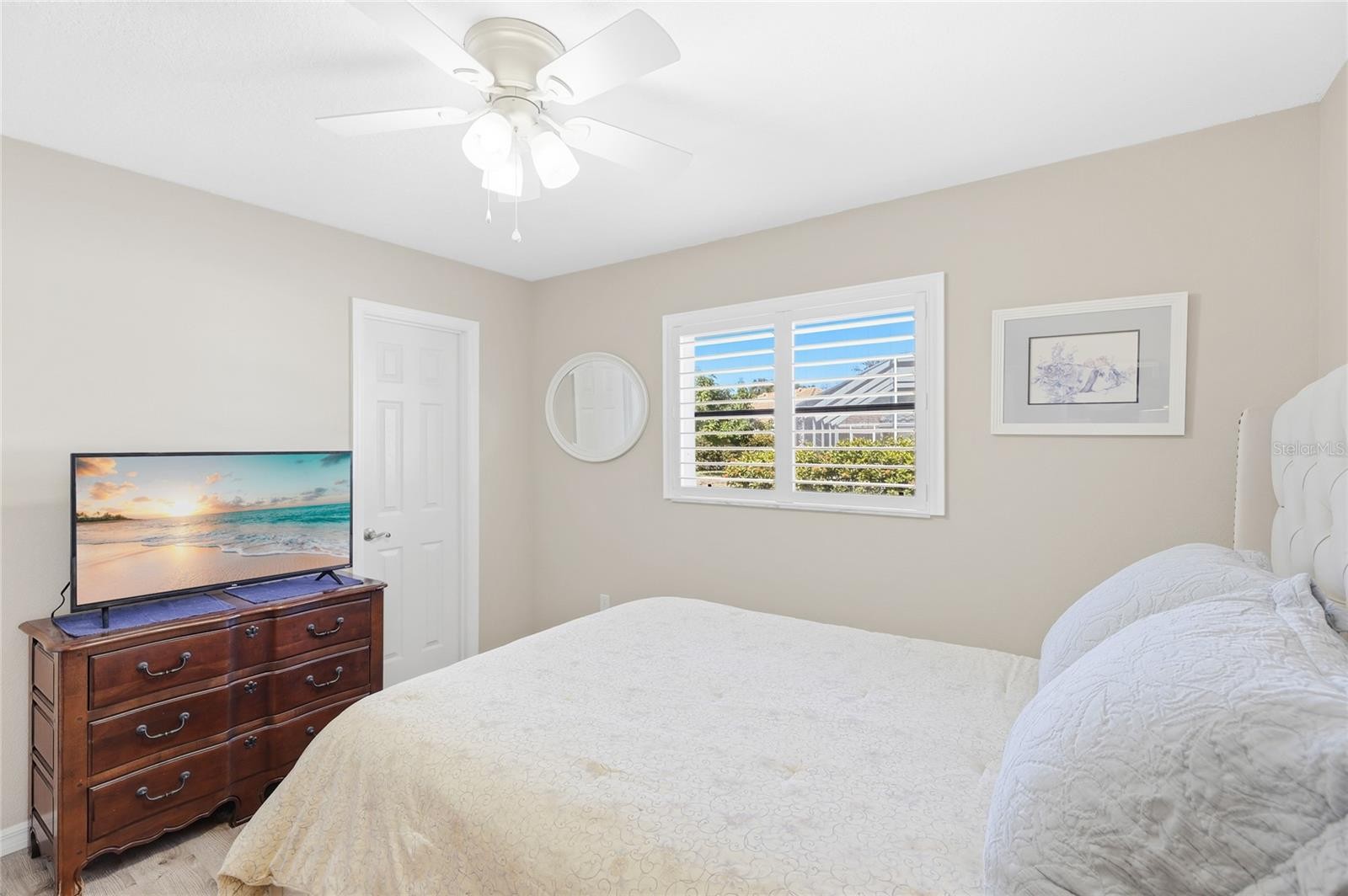 This meticulously maintained 3-bedroom, 2-bath pool home is located in the highly sought-after Lakes of Jacaranda community, conveniently situated off Center Road in Venice—just minutes from downtown, beaches, shopping, and dining. Upon entering through the double front doors, you’re welcomed by abundant natural light that highlights the sleek wood-look luxury vinyl flooring throughout the main living areas and bedrooms. The open layout offers direct access to the expansive covered and screened lanai and heated pool from the living room, kitchen, and owner’s suite—perfect for seamless indoor-outdoor living. The bright, spacious kitchen features ample counter space, a center island, an eat-in dining area, and plenty of room for meal preparation and entertaining. The private owner’s suite is thoughtfully positioned on the opposite side of the home from the guest bedrooms, creating a relaxing retreat with space for a sitting area and two walk-in closets. The en-suite bathroom includes a walk-in shower, separate garden tub, and dual sinks. Step outside and enjoy Florida living at its best with a 19’ x 10’ covered lanai, a 35’ x 23’ screened lanai, and a 28’ x 12’ heated pool and outdoor shower head and is ideal for entertaining or unwinding year-round. Peace of mind comes with major updates already completed, including a 2026 A/C system, 2022 tile roof, 2022 electrical panel, 2026 pool pump and a 2022 electric hurricane shutter on the lanai. The home has also been recently painted inside and out. Additional highlights include an oversized garage with a 6-foot extension (26 feet wide) with a utility sink and an oversized driveway, providing excellent storage and parking. Low HOA fees and no CDD fees. With a welcoming community atmosphere and close proximity to eclectic downtown Venice, this home offers the perfect blend of comfort, convenience, and lifestyle.