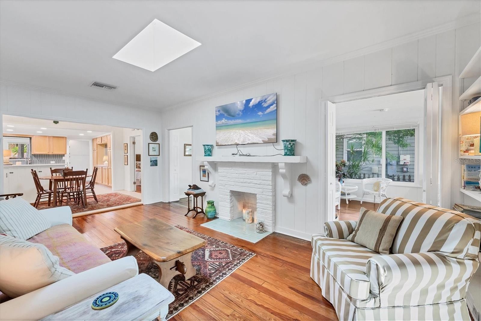 Welcome to this truly spectacular 1929 bungalow in the desirable Indian Beach neighborhood—where timeless character meets thoughtful modern updates. From the moment you step inside, you’ll be captivated by the abundant natural light streaming through large windows, highlighting the home’s warm and inviting atmosphere. Gleaming original wood floors run throughout, adding richness, history, and undeniable charm. The spacious open floor plan is anchored by a beautiful fireplace, creating an ideal setting for both everyday living and entertaining. This home offers THREE COMFORTABLE BEDROOMS AND TWO WELL-APPOINTED BATHROOMS.There is even space for the home office! The beautifully updated kitchen looks out over the living area of this “open plan” and features stainless steel appliances and plenty of workspace, along with the added convenience of an interior utility room complete with washer and dryer. Additional upgrades and improvements include IMPACT RESISTANT WINDOWS (Including the skylight!) installed in 2025, a NEWER ROOF (2021) and a central AC system installed in 2023. Set beneath a canopy of mature trees, this home is located in one of Sarasota’s most established and culturally rich neighborhoods. Enjoy close proximity to downtown Sarasota and renowned institutions such as the Ringling Museum of Art, Ringling College of Art and Design, the historic Asolo Theater and the Sarasota Ballet. Just two miles north of downtown, you’re just a short drive over the Ringling Causeway to the pristine beaches of Lido and Longboat Key. University Parkway, the Sarasota Bradenton International Airport and the UTC shopping and dining district are also nearby, offering endless convenience and lifestyle amenities. This is a rare opportunity to own a bright, beautiful, character-filled home in one of Sarasota’s most sought-after locations.