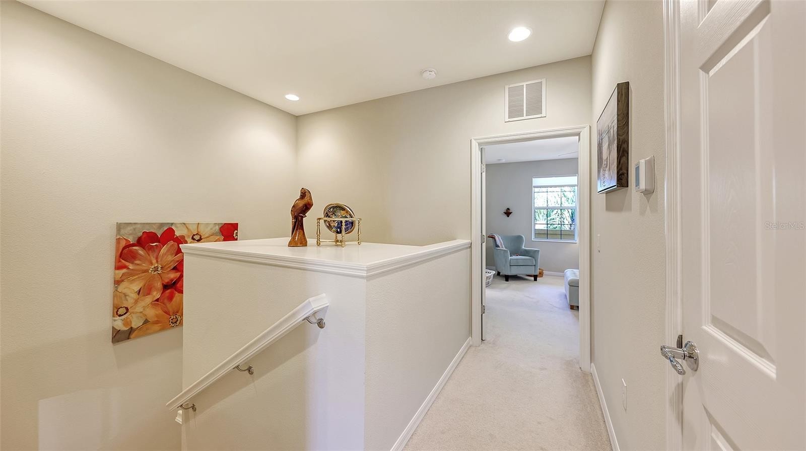 Move-in ready, this 3-bedroom, 2½-bath townhome in San Michele was built in 2010 and offers a two-story floor plan with a one-car attached garage, and room for two additional cars. Ideally situated with a peaceful water view across the street, the home feels open, airy, and filled with natural light. This home has been lightly lived in and meticulously maintained by the original owner. The main level features an open-concept living and dining area, plus a large walk-in storage closet/pantry on the main level—ideal for extra storage. The main-level laundry room includes added built-in cabinets, a thoughtful upgrade not found in most units. A convenient half bath completes the first floor. Upstairs, the spacious primary suite includes a private bathroom and generous walk-in closet space. The second bedroom also offers a large walk-in closet, providing exceptional storage. Low HOA fees! Solid concrete block construction and a well-designed layout make this residence ideal for full-time living or seasonal enjoyment. San Michele is a maintenance-free community offering a heated resort-style pool, tennis and pickleball courts, walking paths, grilling area, and gazebo. Conveniently located near UTC shopping and dining, downtown Sarasota, SRQ Airport, and the Gulf beaches. An excellent opportunity in a centrally located Sarasota community.