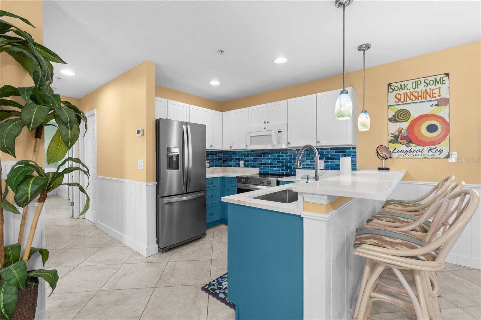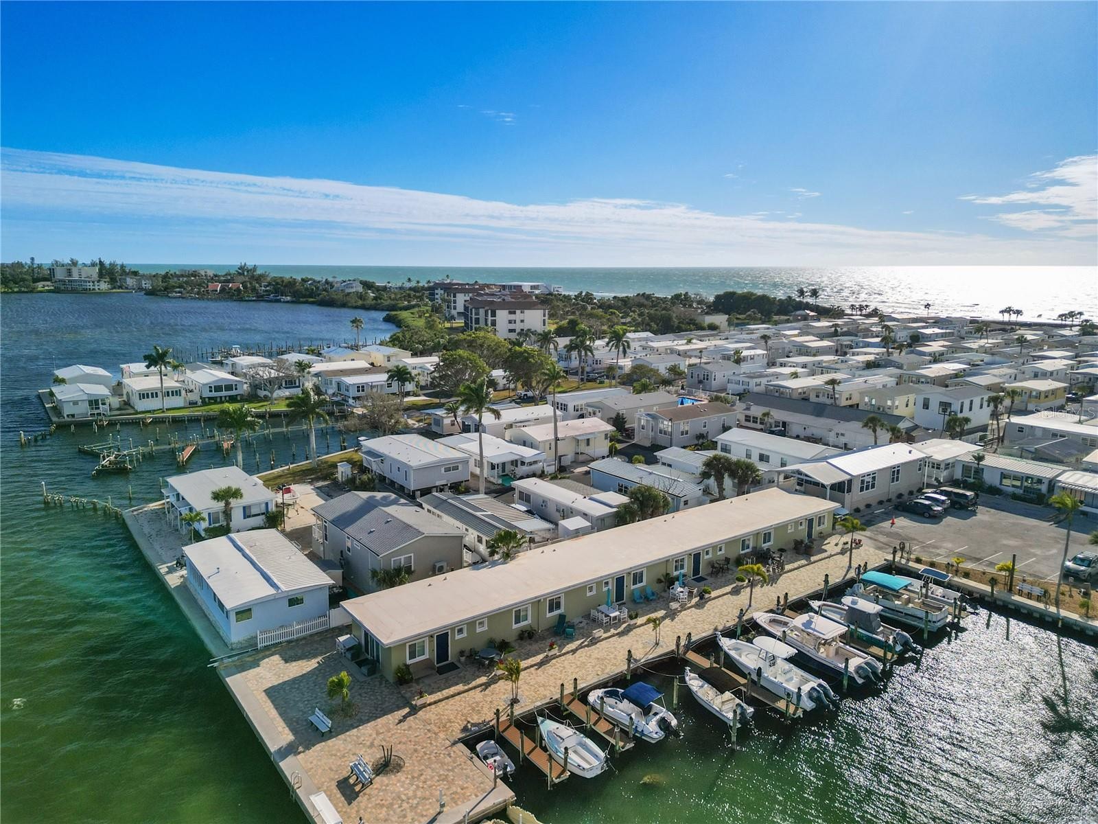 Stunning Bayfront and Marina views, this is a rare opportunity for a 1 bedroom, 1 bath, FURNISHED in a 55 + community on Longboat key . This is a beautifully designed and outfitted villa in the community of Twin Shores-located Mid Key(Close to both St. Armand's Circle and Anna Maria Island). Not only are you Sitting within Steps to Panoramic Views of the Bay, you have private DEEDED beach access just a few minutes walk from your front door. Start your mornings right on the water to start your day and end it on the beach without having to get in your car. Pool access gives you everything you need on the Key. The interior has been completely renovated with modern touches, beachy feel and plenty of natural light. The great room plan welcomes an abundance of sunlight throughout the open and airy space that combines the kitchen, eat-in dining, and family room. Large bedroom with walk in closet. This is a maintenance free opportunity which takes care of the grounds, pool maintenance, water/trash. The listing price is for an annual rental. Short term options available at 4200 per month.