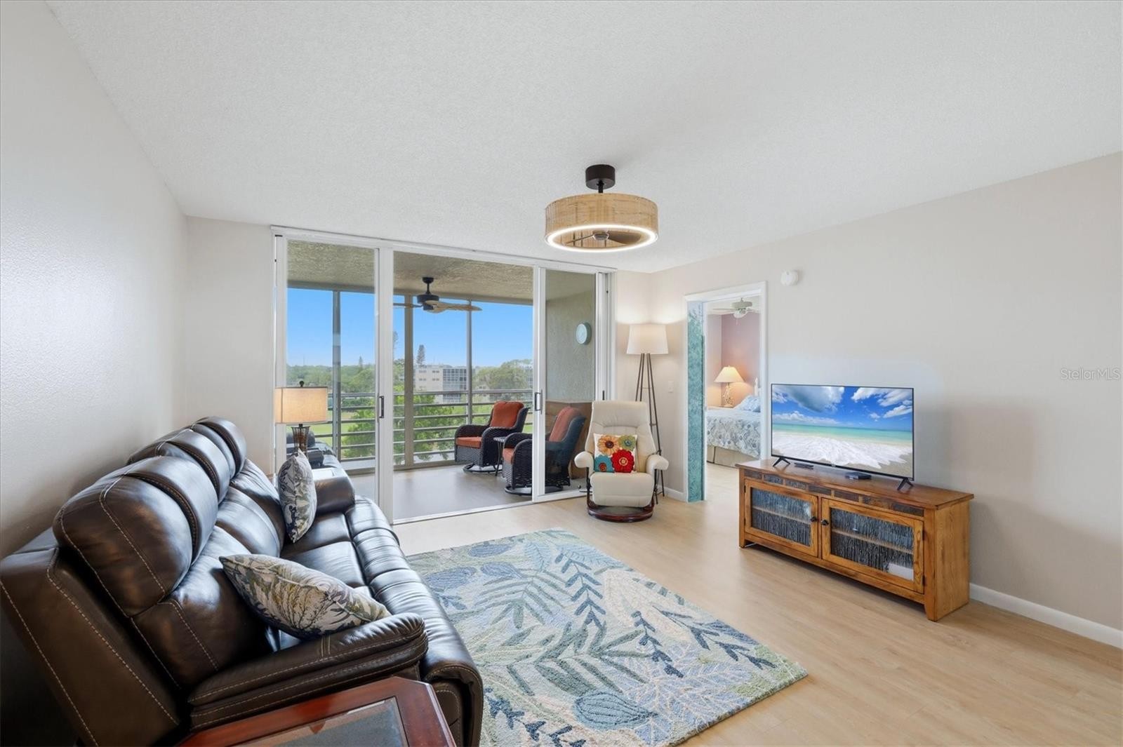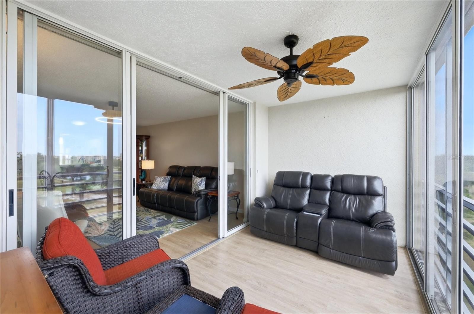 Come enjoy the Sweeping birds eye views of the Pinebrook Ironwood golf course and five water features from this 6th top floor condo in the Woods at Pinebrook. The Woods at Pinebrook is the newest association on the golf course, is efficiently managed, and there are currently no plans for special assessments. The location is excellent and there are no extra fees for living on the golf course. This unit sits directly across from the clubhouse pool. Amenities include access to a heated pool, exercise room, billiards, shuffleboard and additional facilities. This Bayhill floor plan features 2 bedrooms, 2 bathrooms, an eat-in kitchen with plenty of cabinets and a servers pass-through to the dining area. The kitchen appliances are in great shape and have been replaced as necessary. Ceramic tile appears in the foyer, kitchen, both bathrooms, and the laundry room. Vinyl plank flooring has been installed throughout the living and dining areas, as well as both bedrooms, complemented by 4-inch baseboards. The king size primary bedroom suite has a large 7x8 walk-in closet and it's bath a large walk-in shower. The guest bedroom has its own bath with a combination tub shower. The 8x14 glass enclosed lanai offers the greatest golf course views overlooking the 15th fairway. The sliders recently enhanced with new wheels and locking mechanisms. The elevators have been replaced, and the stack pipe project has just been completed. You get one assigned covered carport #48 and a storage locker by the elevator. The A/C is replaced in 2024, a tankless instant hot water system new in 2022, plus the 7x7 indoor laundry room has a new washer as of 3/2026 and dryer new in 2017. Fresh paint, ceiling fans, lights and most fixtures all recently replaced. This location is highly convenient to shopping centers, medical services, Gt Bray Park, Robinsons Preserve, the SRQ airport and the stunning Gulf Coast beaches of renowned Anna Maria Island. Golf memberships are available or pay as you play.