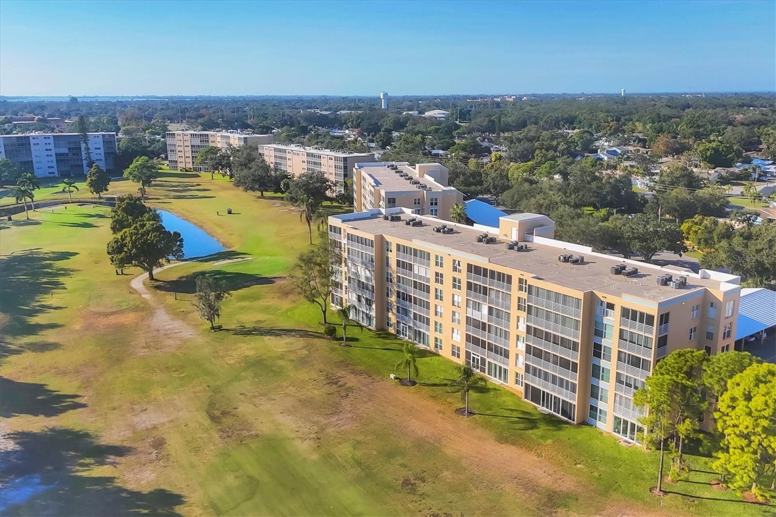 One or more photo(s) has been virtually staged. Come enjoy the Sweeping birds eye views of the Pinebrook Ironwood golf course and five water features from this 6th top floor condo in the Woods at Pinebrook. The Woods at Pinebrook is an outstanding fantastically run condo association with "no special assessments" and "none being discussed". The location is excellent! Plus, there are no extra fees for living on the golf course. This well-maintained Bayhill floor plan features two bedrooms and two bathrooms and is situated on the 15th fairway plus located directly across from the clubhouse and pool. Amenities include access to a heated pool, exercise room, billiards, shuffleboard challenges and additional facilities. As for the unit, ceramic tile is featured at the foyer, the kitchen, both bathrooms and the 7x7 laundry room. The laundry room is equipped with additional storage cabinets and a full-size washer and dryer. Vinyl plank flooring has been installed throughout the living and dining areas, as well as both bedrooms, complemented by 4-inch baseboards. The unit features an 8x14 glass-enclosed lanai that can be opened for use as a screened area. The sliding glass doors have been enhanced with new wheels and locking mechanisms. However, the assigned #48 covered carport and storage room locker are not included in the heated square footage. The A/C is replaced in 2024, a tankless instant hot water system new in 2022, plus the washer and dryer new in 2017. Fresh paint, ceiling fans, lights and most fixtures all recently replaced. The dishwasher and microwave were updated in the past. This location is highly convenient to shopping centers, medical services, Gt Bray Park, Robinsons Preserve and the stunning Gulf Coast beaches of renowned Anna Maria Island. Golf memberships are available or pay as you play.