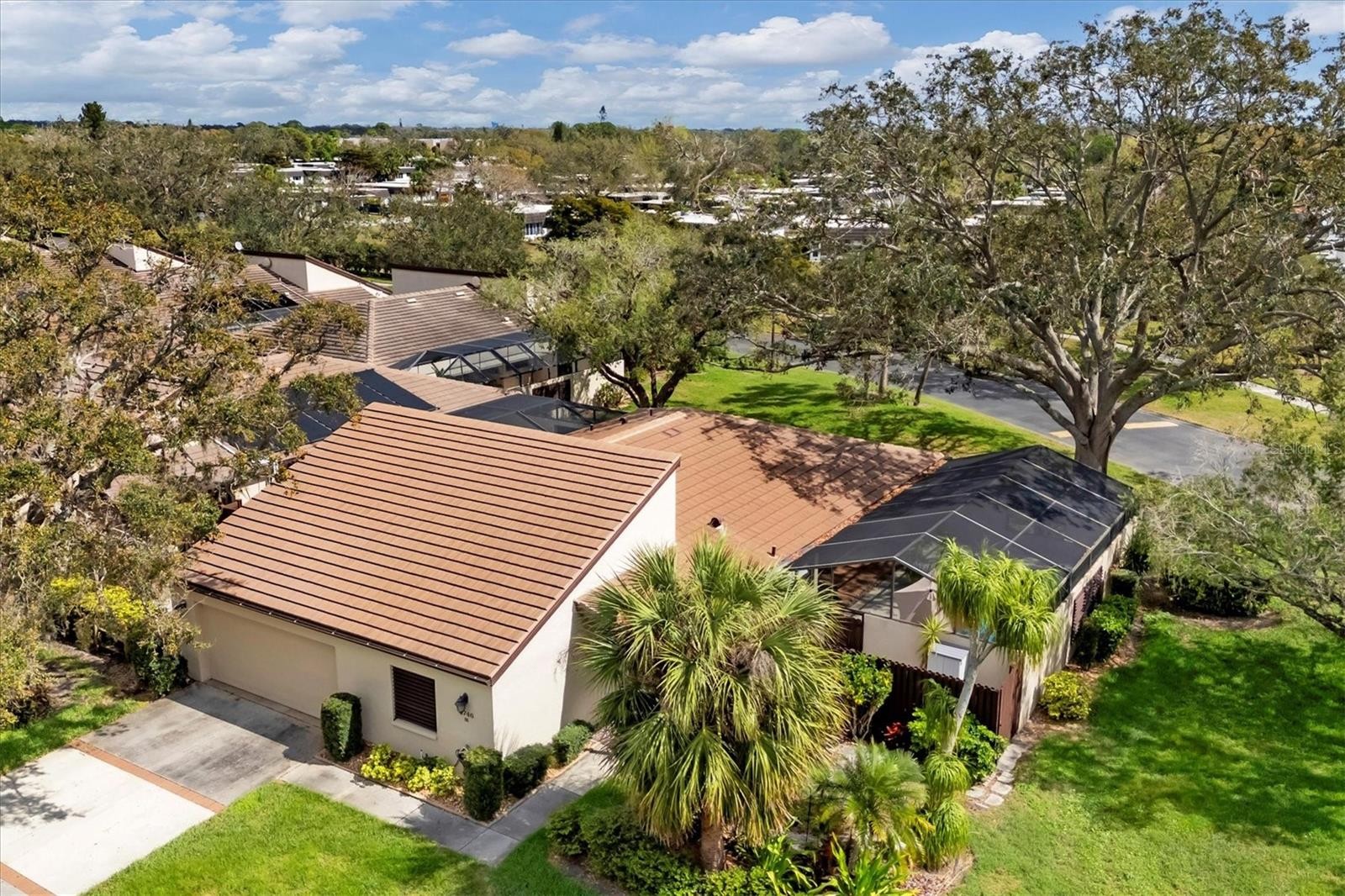 Welcome to your dream home in the highly sought-after Glen Oaks Manor! This stunning end unit villa boasts over 1,650 square feet of beautifully renovated living space, featuring two spacious bedrooms and two tastefully designed bathrooms. The property is ideally situated with a private heated saltwater pool, perfect for relaxation and entertaining. Step inside to discover a light and airy interior adorned with diagonal tile flooring and a neutral soft color palette throughout. The kitchen has been thoughtfully updated in 2021, showcasing beautiful solid wood white cabinets, granite countertops, and stainless-steel appliances, complete with a custom spice rack built into the pantry. Enjoy cooking in a space filled with recessed lighting and feel the breeze from the ceiling fans in every room for added comfort. The villa’s outdoor oasis features a screened lanai and stunning nighttime pool lighting that creates a serene ambiance. The pool has been resurfaced in 2020, with a new pool pump installed in May 2024 and a heater that is approximately 8 years old. The tile roof was replaced in 2021, ensuring peace of mind for years to come. The primary bedroom offers an office space/flex area with tranquil views of the pool, while custom closet shelving provides ample storage. There is an atrium in the center of the home allowing for natural light and an inviting central space. It creates a harmonious indoor-outdoor feel, enhancing the overall aesthetic and ambiance of the home. This serene space can be used for relaxation, gardening, or as a unique focal point that brings nature inside, promoting a refreshing and airy atmosphere. The large laundry room is equipped with a utility sink, extra storage cabinets, and a storage closet, maximizing functionality. Both bathrooms have been beautifully renovated with granite counters, a vessel sink in primary, and soothing spa colors, featuring a walk-in shower and custom framed mirrors that elevate the space. Additional highlights include low association dues, a two-car garage, custom window blinds and treatments, and a pet-friendly community. Residents can enjoy access to a community park and lake, perfect for leisurely strolls and outdoor activities. Centrally located near downtown Sarasota, this villa offers convenient access to shopping, restaurants, and beautiful beaches. Furniture is optional (with a few exceptions), allowing you to conveniently move right into this amazing home.