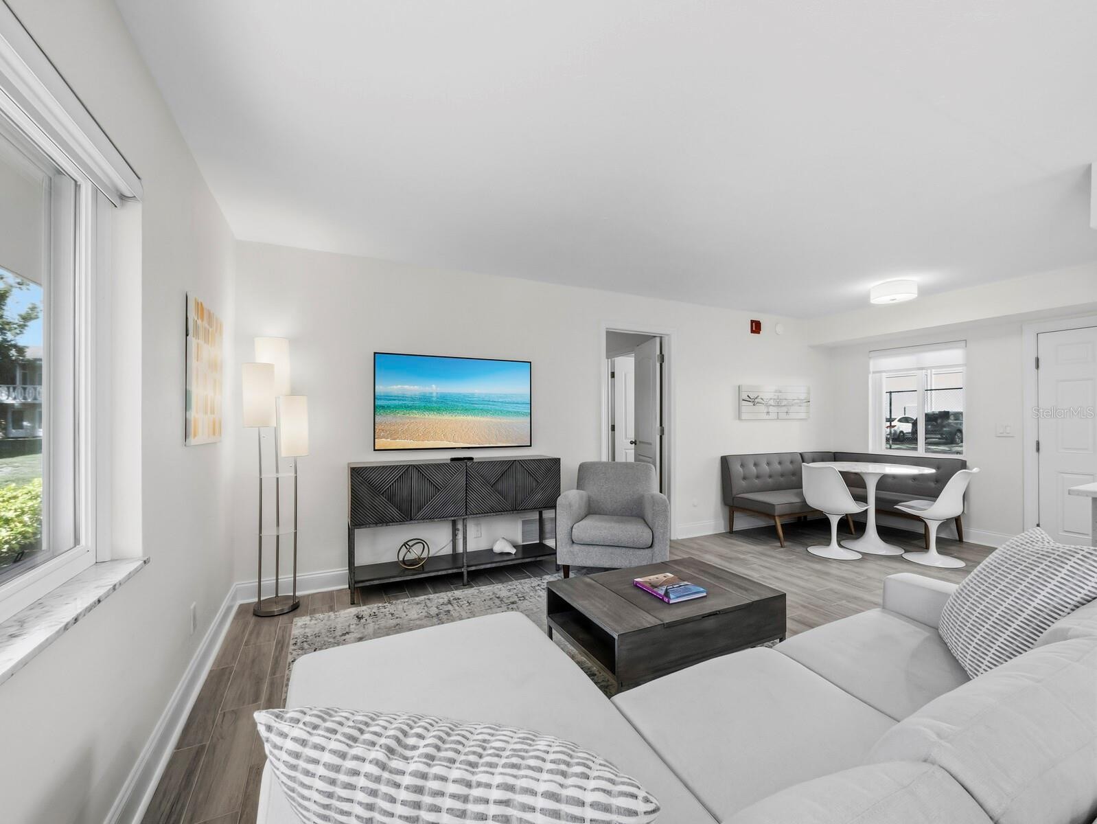 Stunning and move-in ready, this beautifully renovated and fully furnished 2-bedroom, 2-bath condo offers effortless living in an exceptionally convenient central Sarasota location. Perfectly positioned in the heart of the city, you are just minutes from Downtown Sarasota, Sarasota Memorial Hospital, and a straight drive to Siesta Key’s world-famous beaches. Enjoy the rare combination of accessibility and everyday walkability, with popular dining, cafés, and entertainment only a short stroll away. Inside, the condo has been updated to the nines, showcasing a bright, naturally light interior and a complete 2023 renovation including a modern kitchen with quartz countertops and breakfast bar, fully renovated bathrooms, updated flooring throughout, impact (hurricane-rated) windows, and custom window treatments. Offered fully furnished and move-in ready, this residence is ideal for seasonal living, downsizing, or anyone seeking a low-maintenance Sarasota retreat. Ground-floor convenience, a quiet private setting, parking directly outside the unit, and the added benefit of not being located in a flood zone further enhance the appeal. The community pool and laundry facilities are just steps away, adding to the ease of everyday living. Located within a desirable 55+ community, this condo delivers comfort, simplicity, and exceptional lifestyle appeal. Spend your time enjoying Sarasota’s favorite attractions while living in the heart of the city — mornings on Siesta Key’s world-renowned beaches, afternoons exploring local markets and boutiques, and evenings spent dining at the area’s exceptional restaurants.