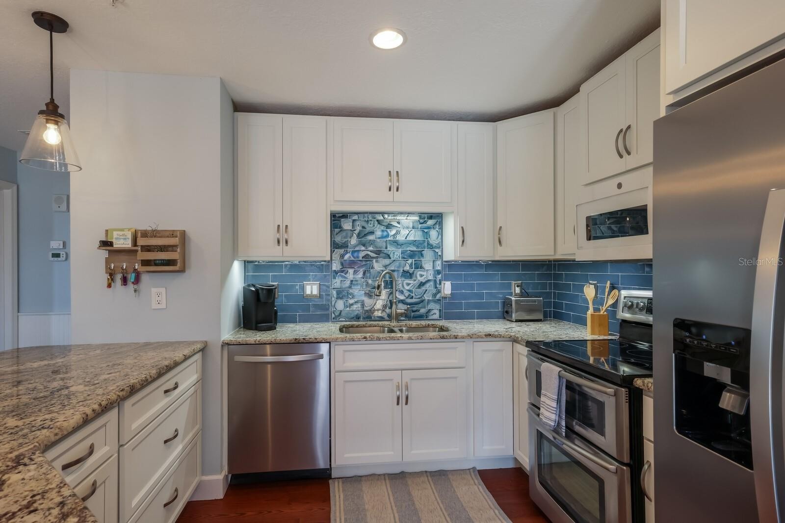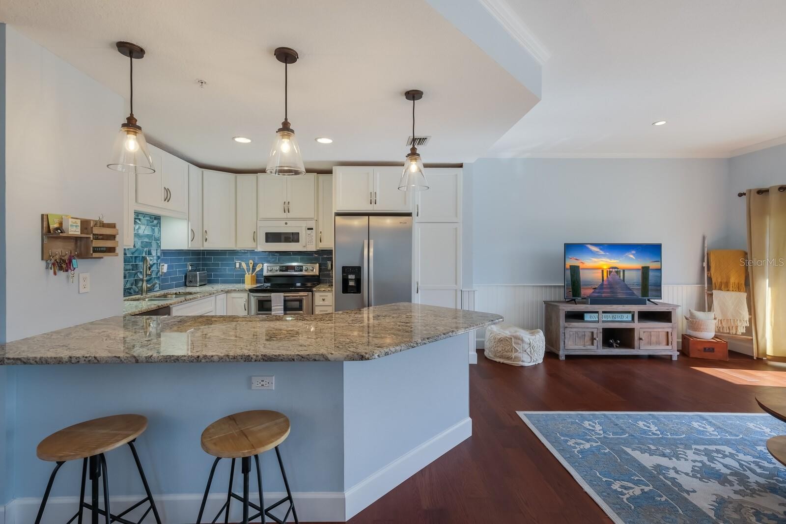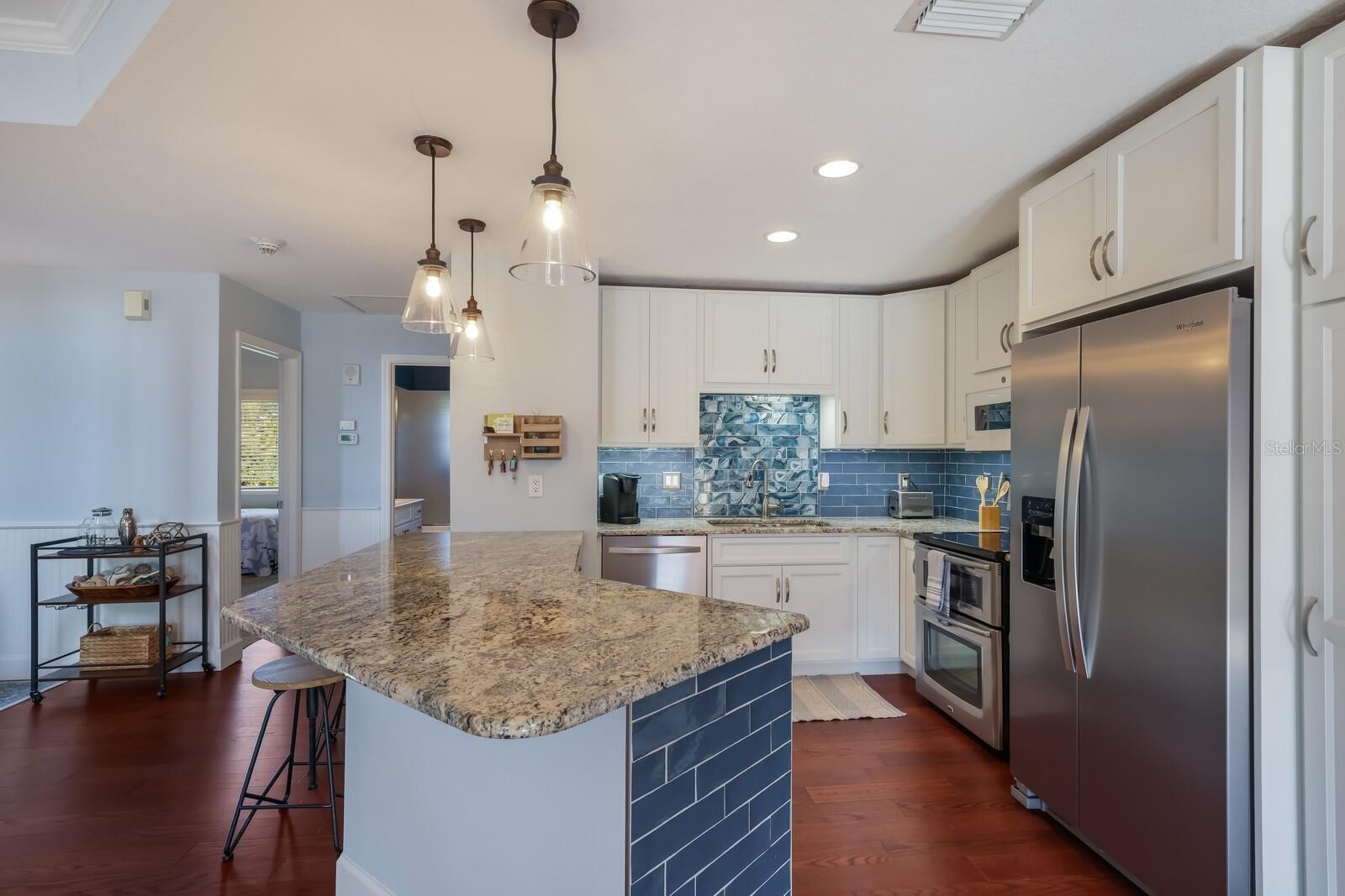 Don't miss this opportunity to own your own slice of paradise on Anna Maria Island in the highly sought after subdivision of Villages of Holmes Beach. This stunning home is just a short walk to the beach access point as well as Bradenton Public Beach which immediately will capture your heart with unparalleled sunsets, powder sand, and turquoise blue waters. With several preserves, biking trails, and marinas within close proximity, you'll capture Florida living at it's finest. This end unit, corner homesite home has been well-maintained by the owners and recently updated. Boasting 3 bedrooms, 2 bathrooms PLUS an additional space on the first level perfect for an office or second living room, this townhome, with all its furnishings included is just waiting for you to call it home! With over 1,700sqft, a 2 car tandem under-building garage, dual balconies and lush tropical landscaping, this home has everything you need! As you enter the foyer, your eyes will immediately be drawn to the wall of French doors leading you out to your very own private screened-in lanai with gorgeous views of a lushly landscaped park on 2 sides and newly installed outdoor shower. As you go up the first flight of stairs, you’re greeted by warm hardwood floors throughout the main living space, wonderfully complimenting the white solid wood shaker cabinets and custom glass tile backsplash. The large, eat-in kitchen has an abundance of counter space, closet pantry, stainless steel Kenmore and GE appliances, newly installed microwave, brand new whirlpool refrigerator and under cabinet lighting. The kitchen flows right to the expansive family room that comes complete with picturesque French doors leading you out to the first of two balconies, making this the ultimate open-concept space. The large owner’s suite bedroom and en suite is the epitome of privacy and serenity as it is located on its own floor and adorned with ample natural light and French Doors to a private balcony. The owner’s en suite bathroom has been recently updated with dual sinks, large shower, walk-in closet, fresh paint and you can even catch a glimpse of the Gulf from the window in the expansive shower! The living room, dining room, owner's suite bedroom, and en suite bathroom have all been recently painted with the crown, baseboards, and wainscotting all recently painted as well. Brand new neutral carpeting installed in the owner's suite and stairs! In the evenings, enjoy watching the vibrant colors of the sunset mirror off the Gulf of Mexico just steps away. This premium location is also within walking distance to Publix, CVS, the trolley stop, and other amenities. WELCOME HOME! HOA FEES INCLUDE: Community Pool, Escrow Reserves Fund, Fidelity Bond, Insurance, FLOOD INSURANCE, Maintenance Exterior, Maintenance Grounds, Maintenance Repairs, Manager, Pest Control, Pool Maintenance, Trash, Water.
