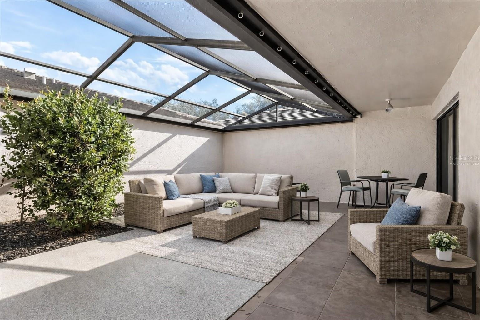 One or more photo(s) has been virtually staged. Welcome to this well-maintained 2-bedroom, 2-bathroom home located in the desirable Glen Oaks Manor community of Sarasota. This move-in ready home offers a functional open layout with tile flooring and fresh neutral finishes throughout. The kitchen includes ample cabinet storage and generous counter space which flows into the living and dining areas for easy, everyday living. Both bedrooms are comfortably sized, with the primary bedroom offering a renovated en-suite bathroom. Sliding glass doors lead to a private screened courtyard, perfect for relaxing or entertaining with minimal maintenance. Additional features include a two-car garage, neat landscaping, and a quiet neighborhood perfect for year-round living or seasonal residence. Conveniently located, it is just a 4-mile drive to downtown Sarasota and a 5-mile drive to University Town Center, St. Armands, and Lido Key Beach. Priced to sell, this home is ready for its next owner to enjoy in a well-located Sarasota neighborhood.